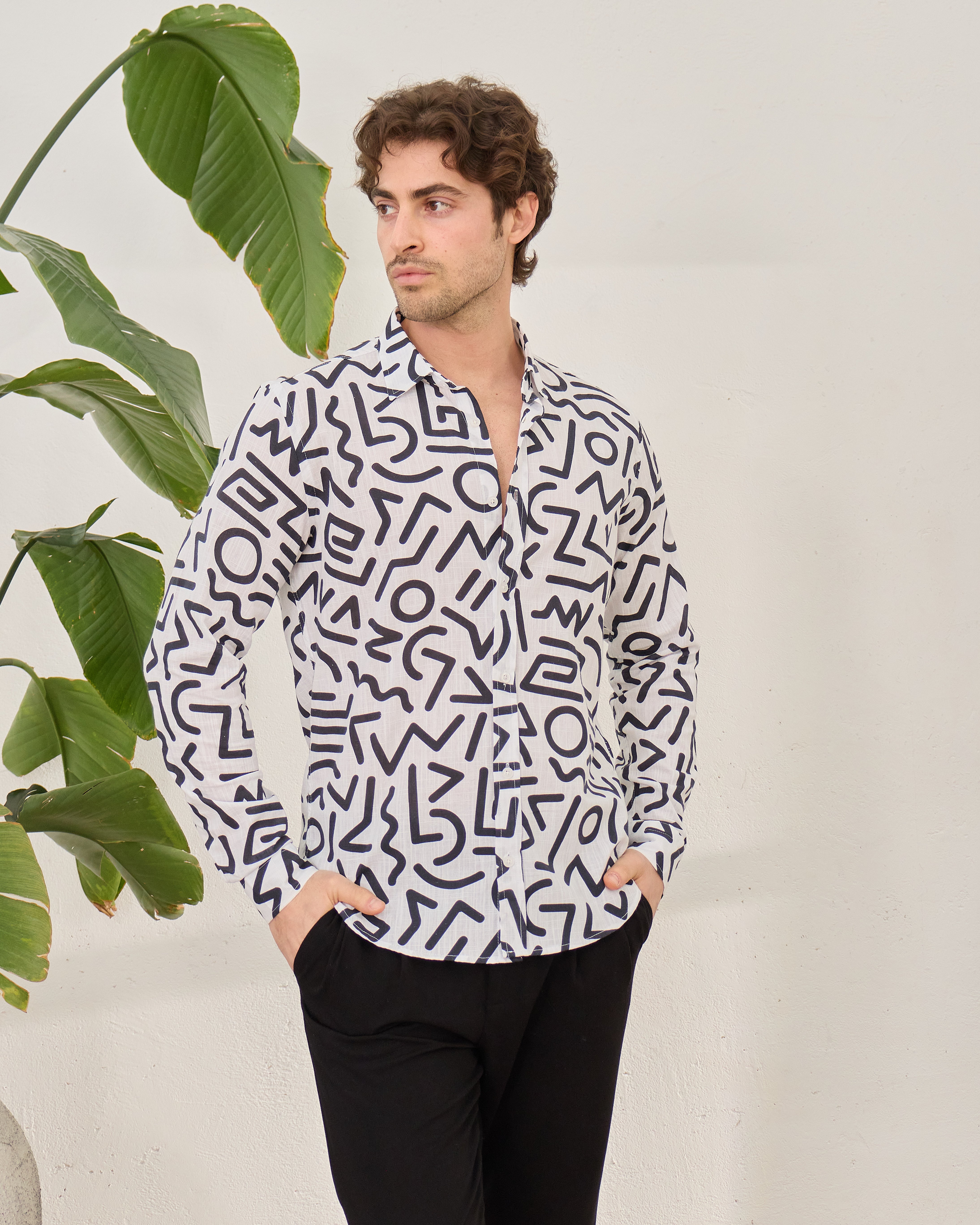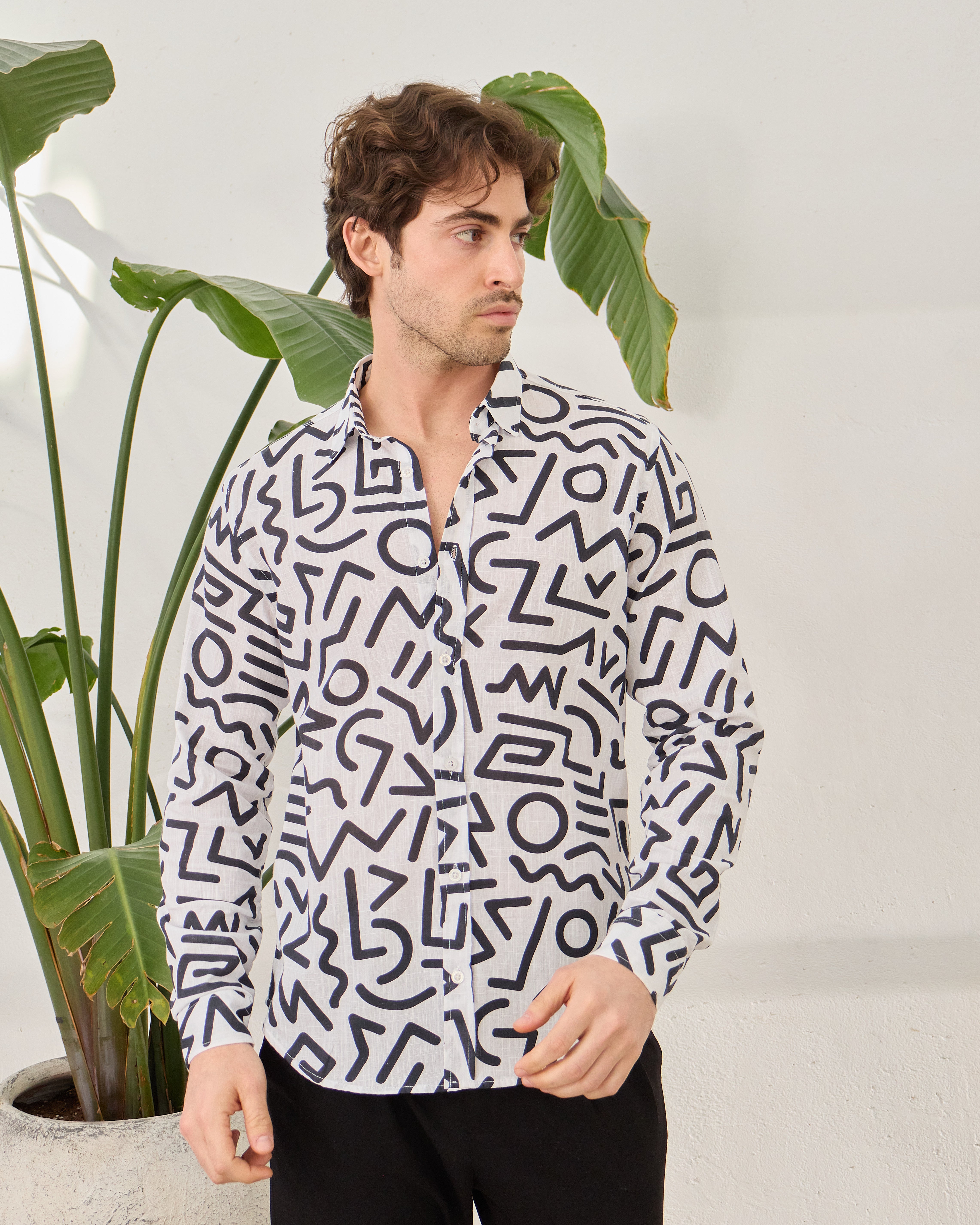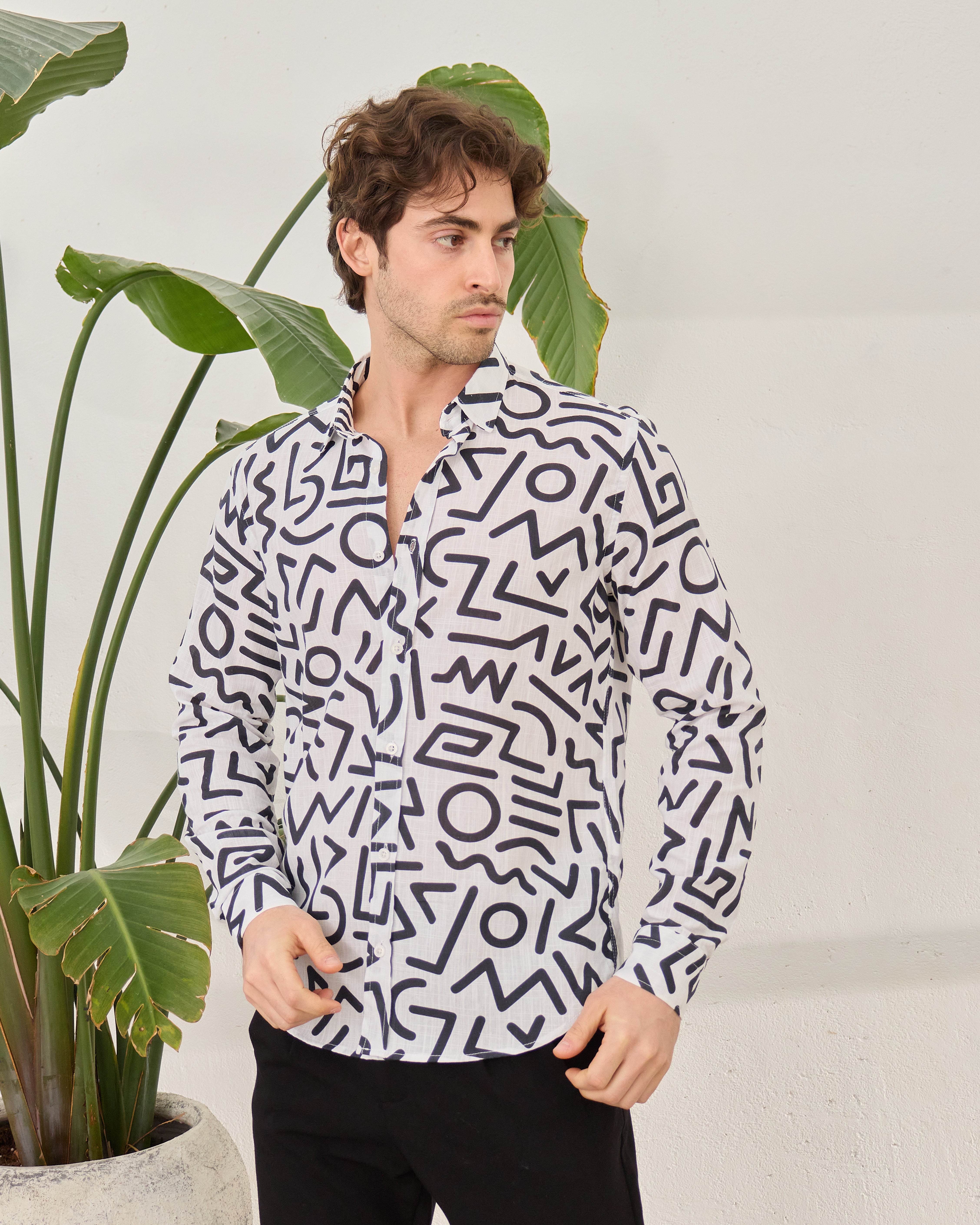 Cămașă Everhold, Albă cu Modele Negre