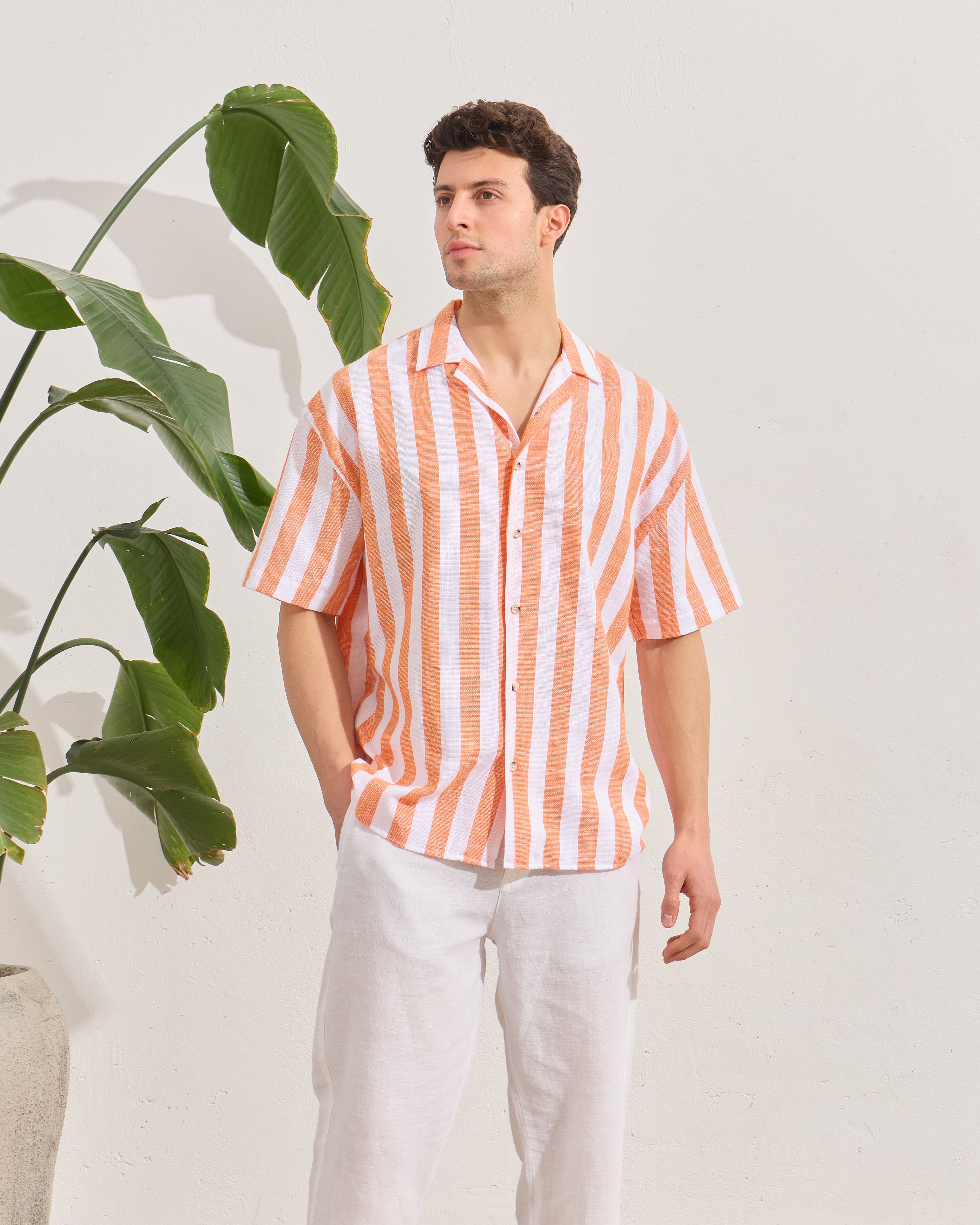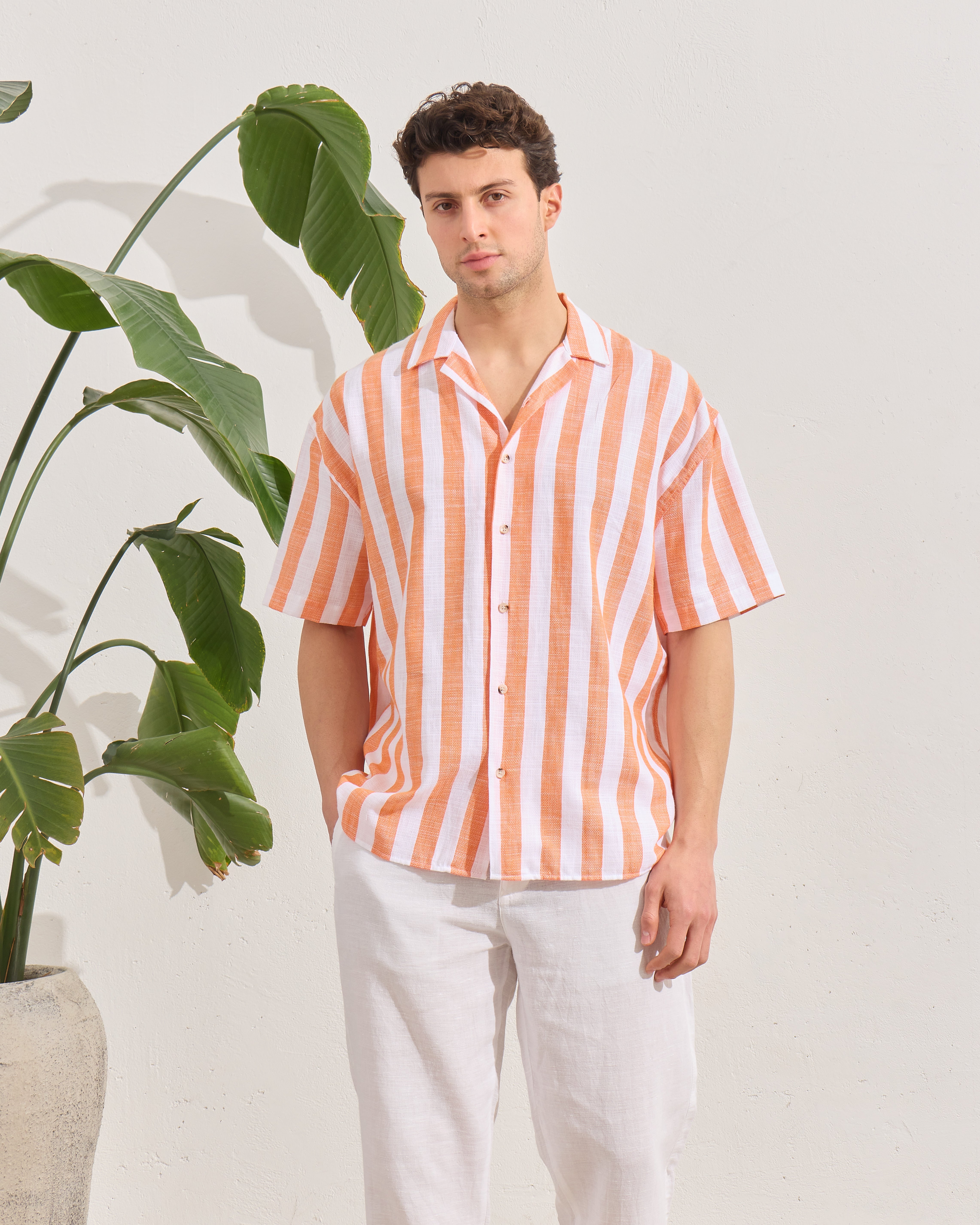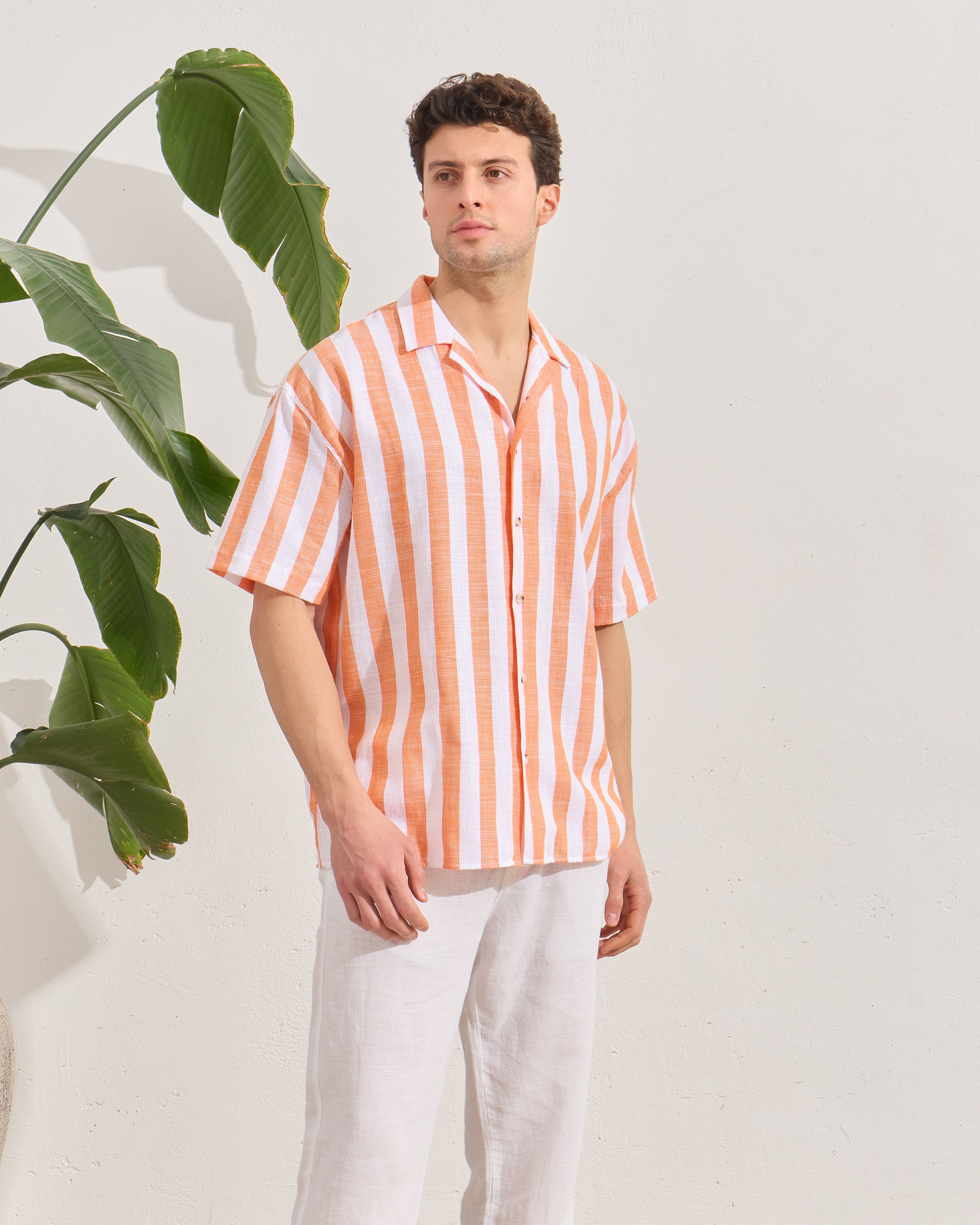 Cămașă Everhold, Cu Dungi Albe și Portocalii