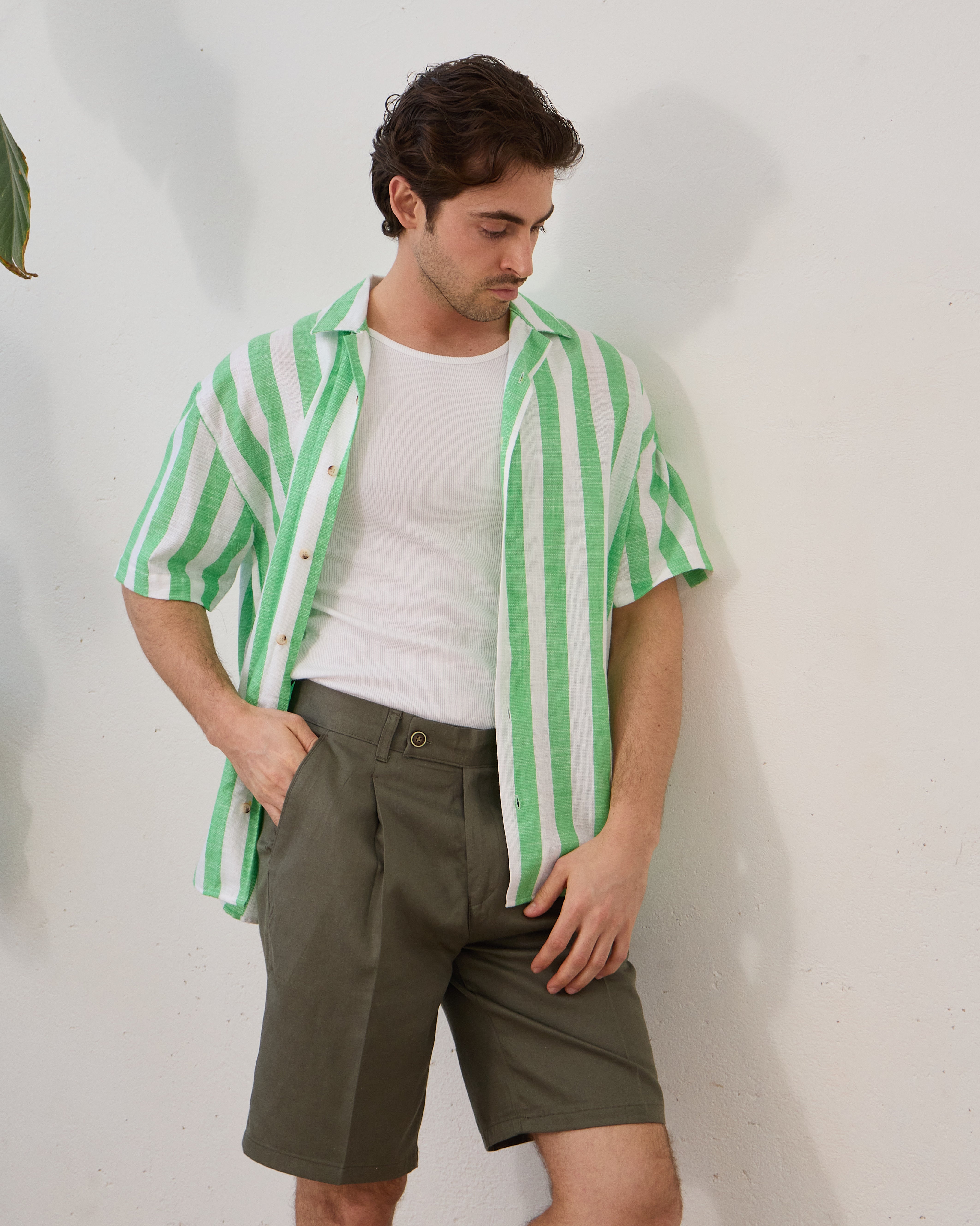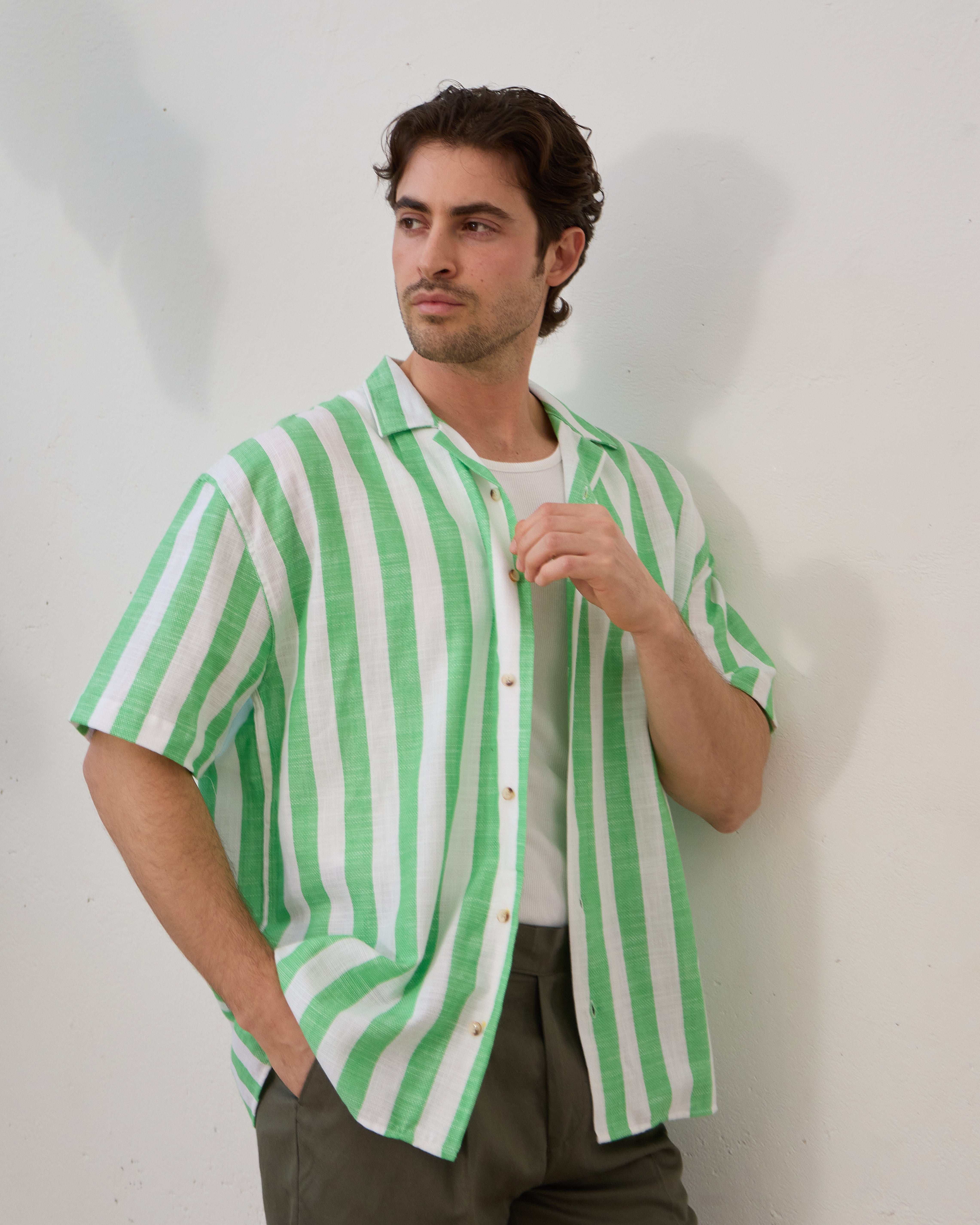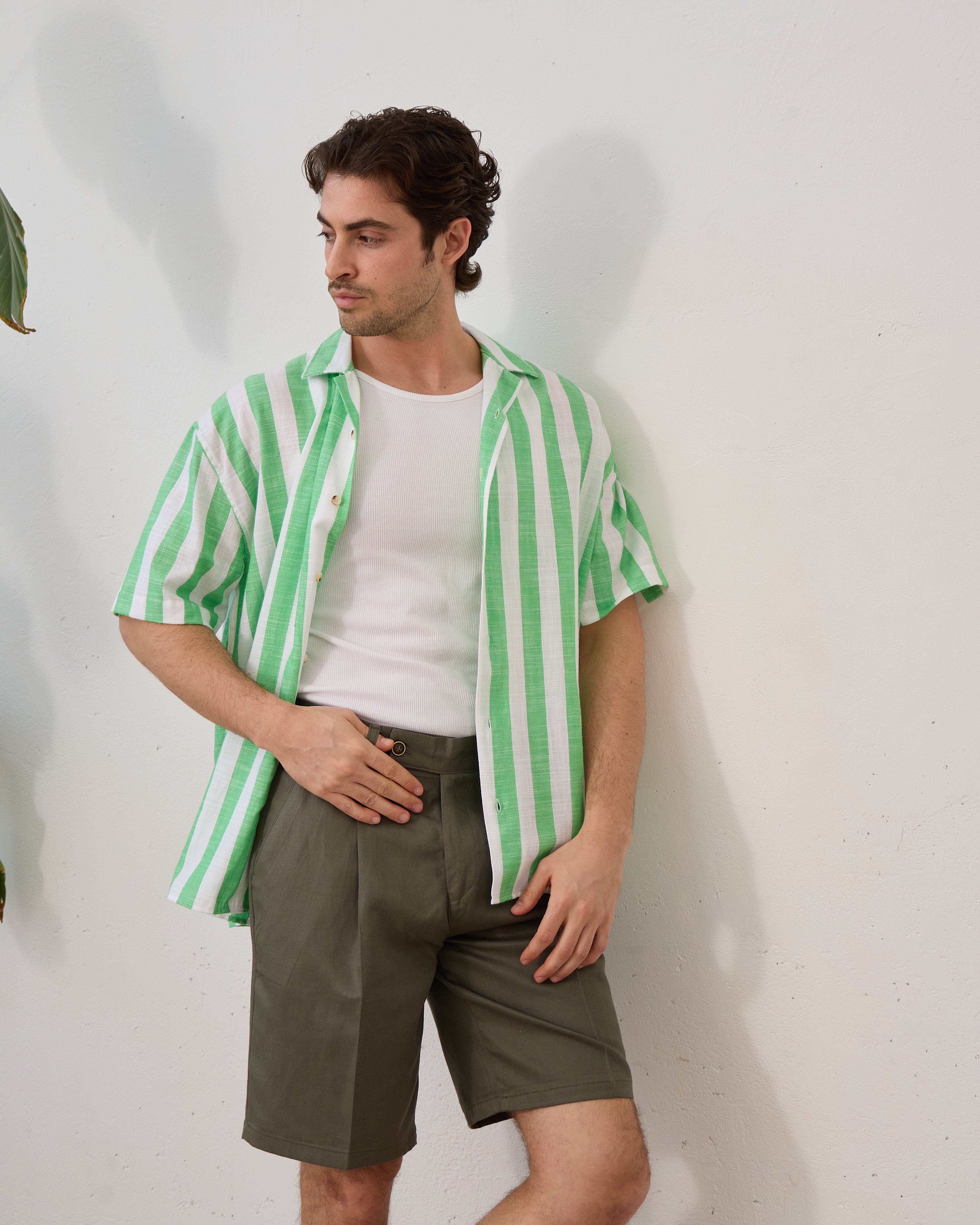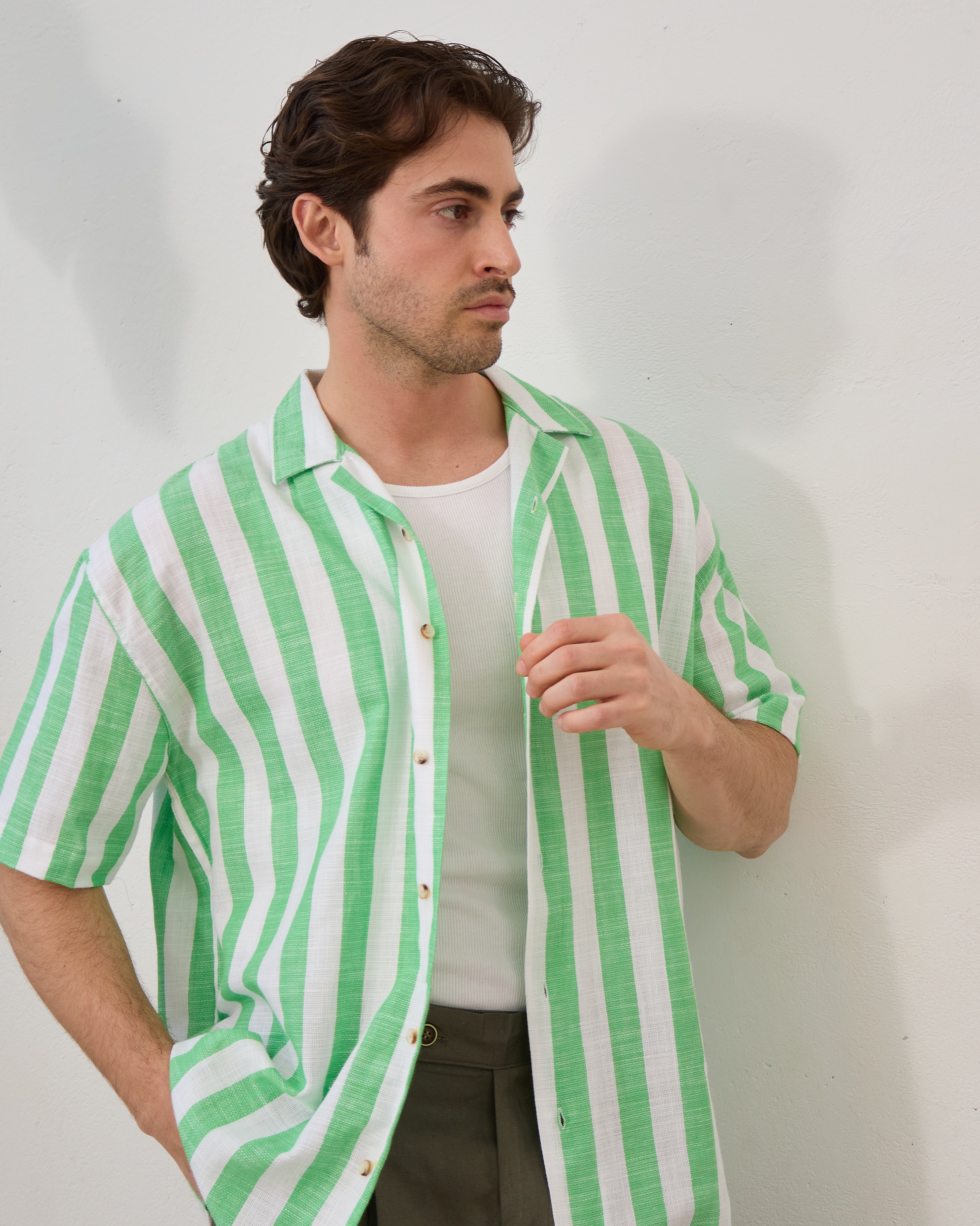 Cămașă Everhold, Cu Dungi Albe și Verzi