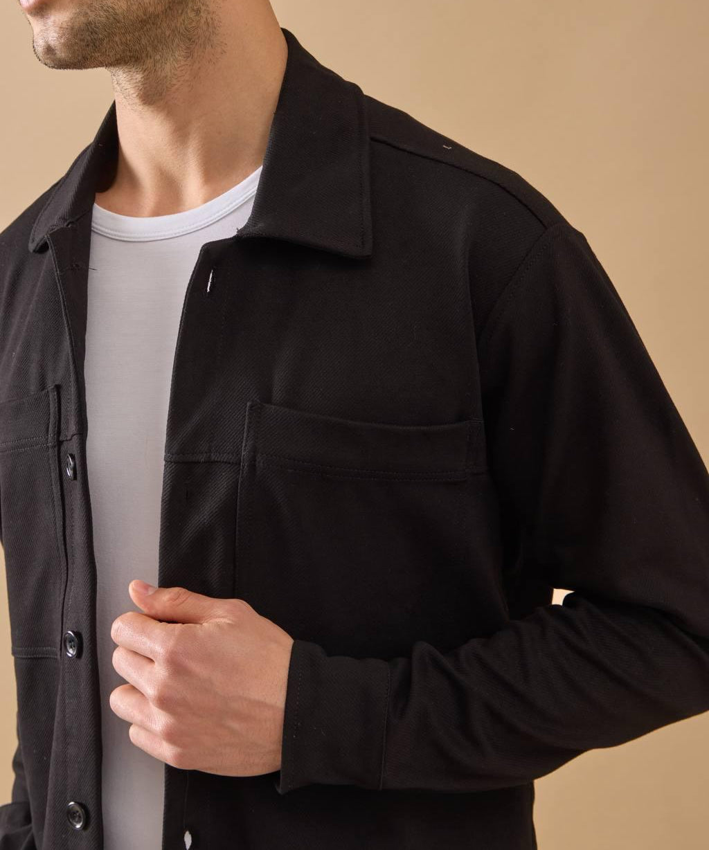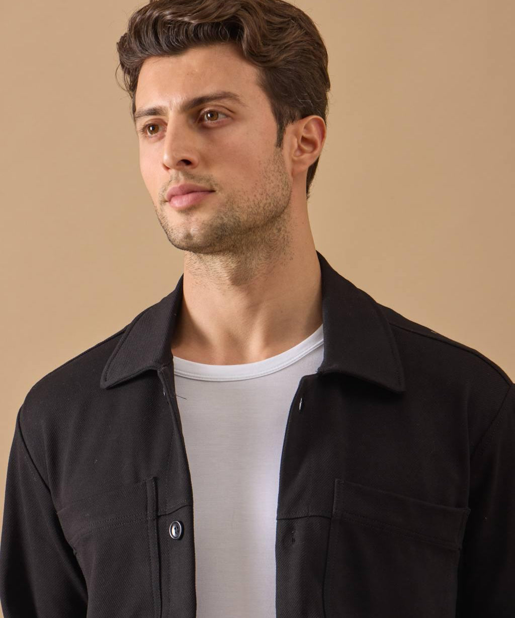 Overshirt Everhold, Bumbac, Negru