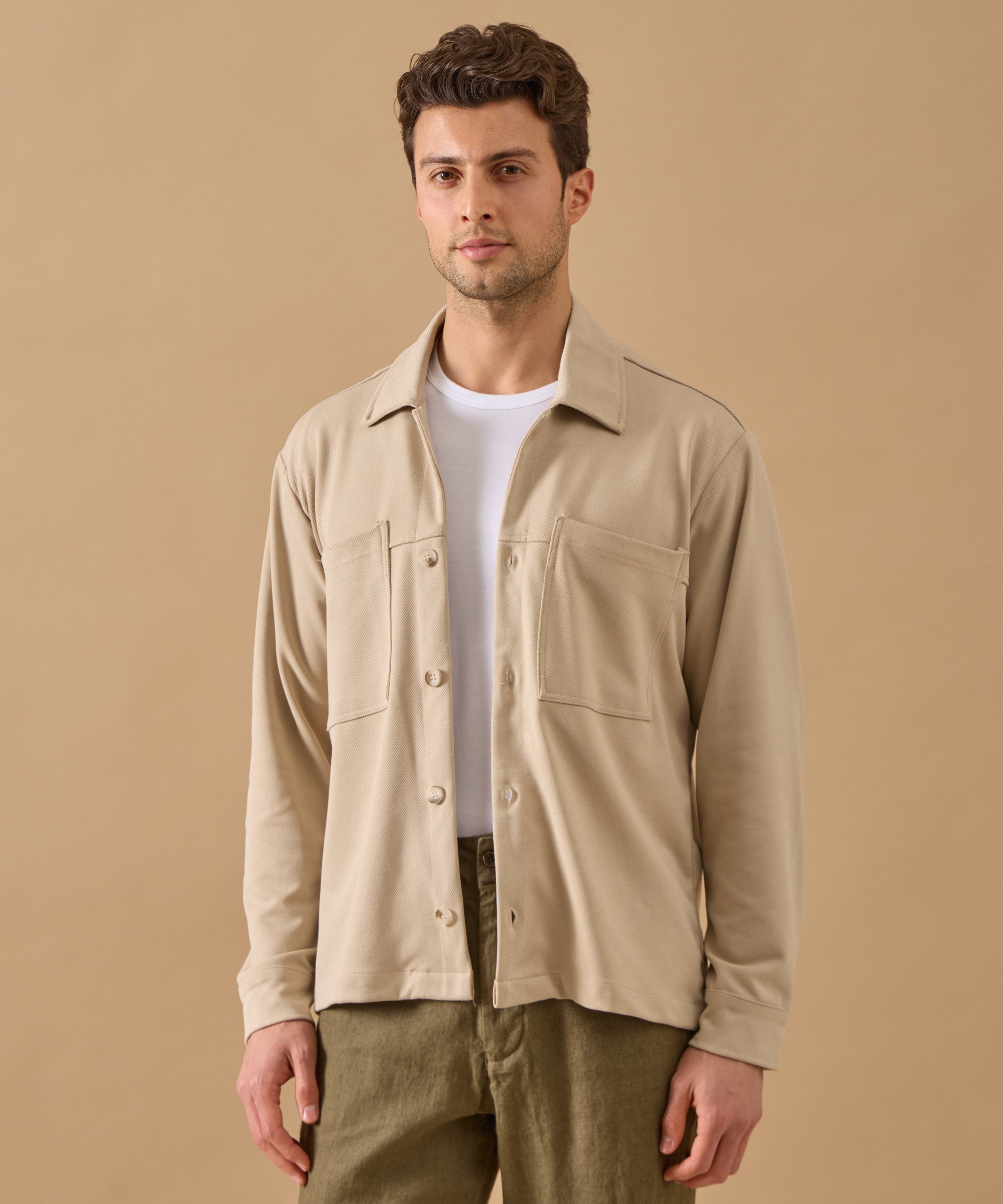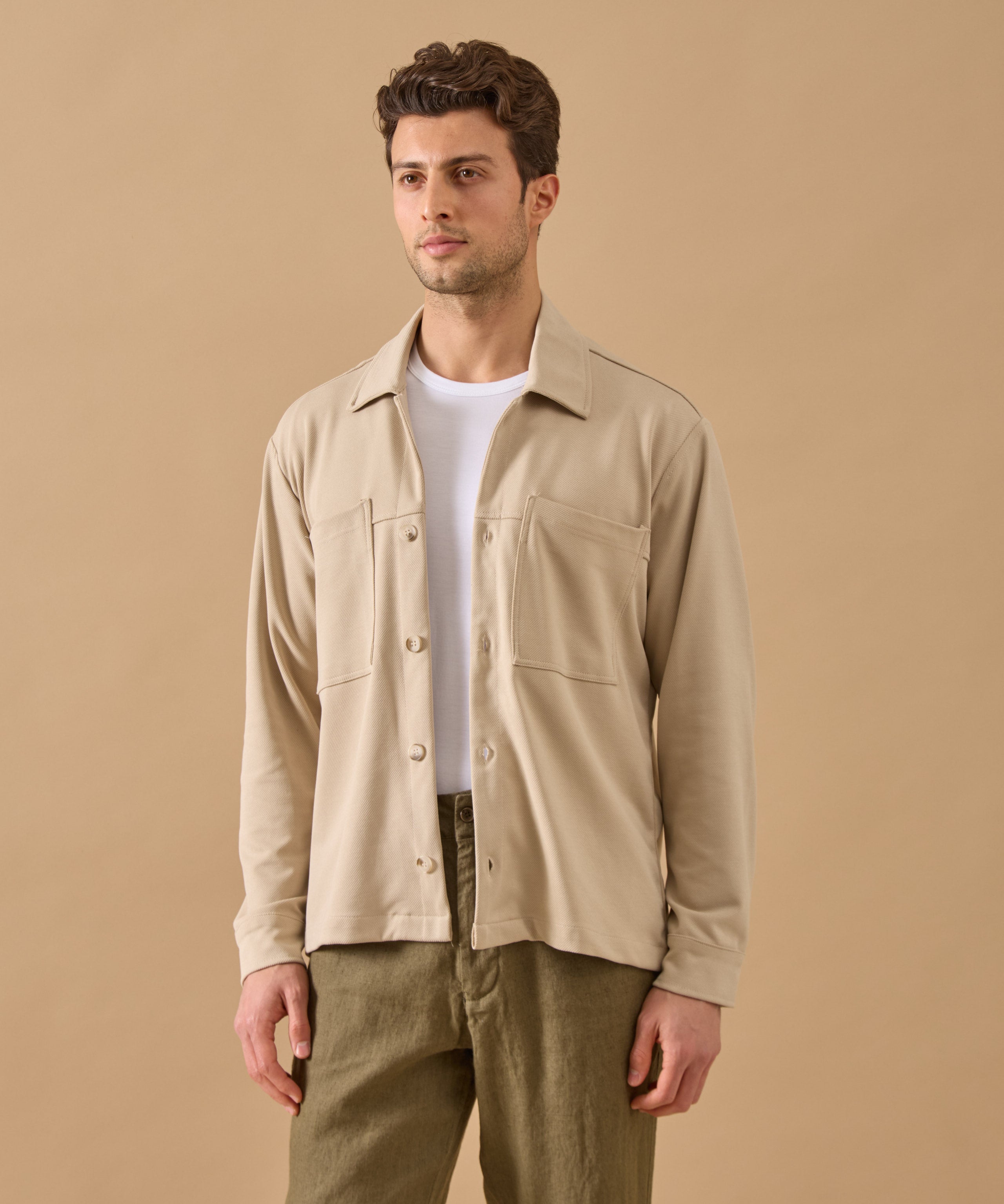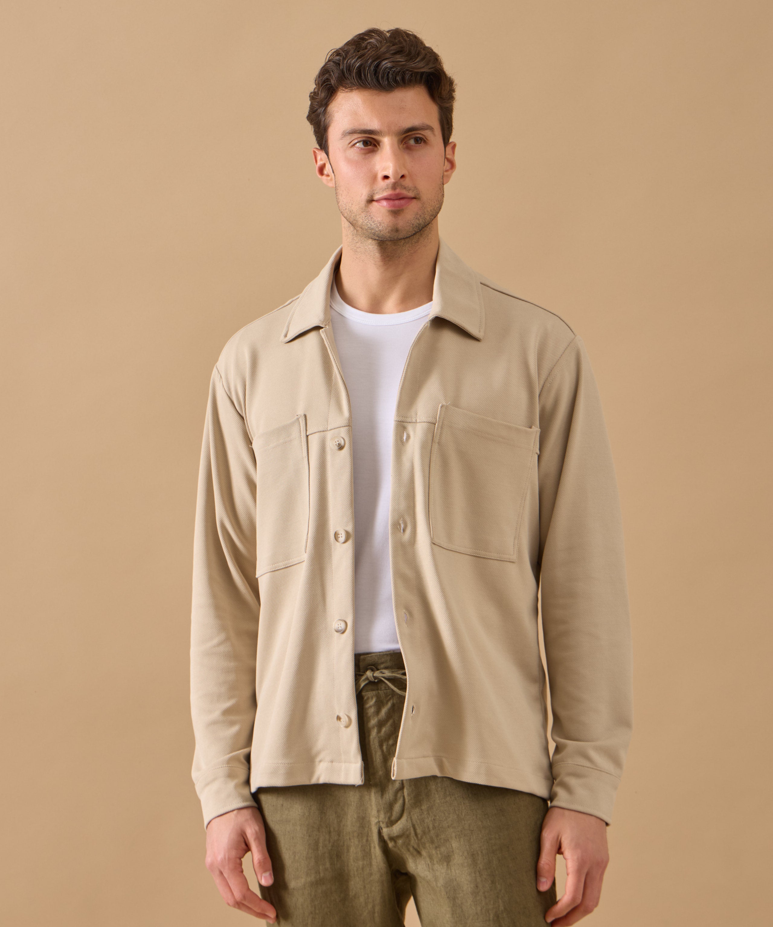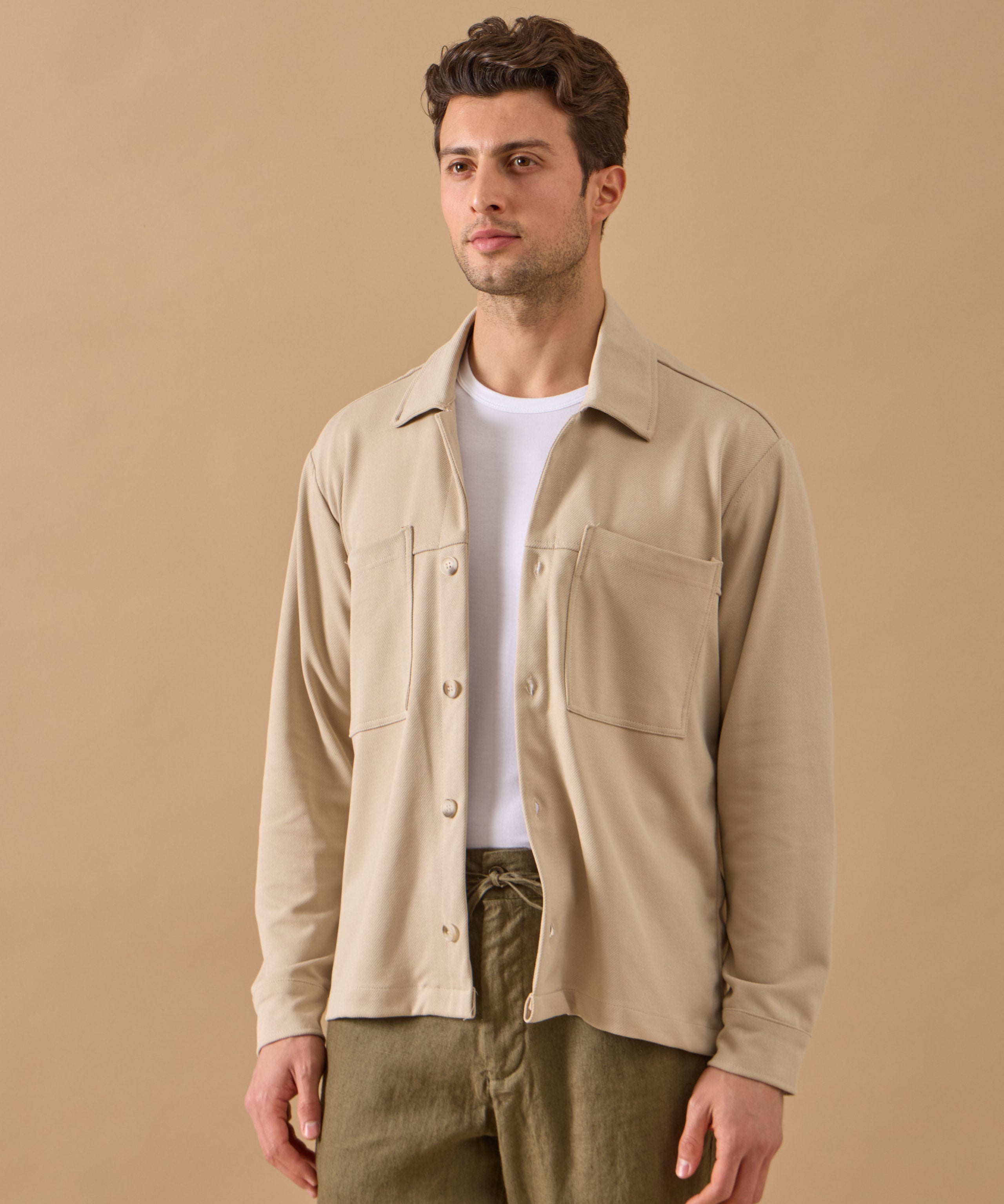 Overshirt Everhold, Bumbac, Crem