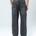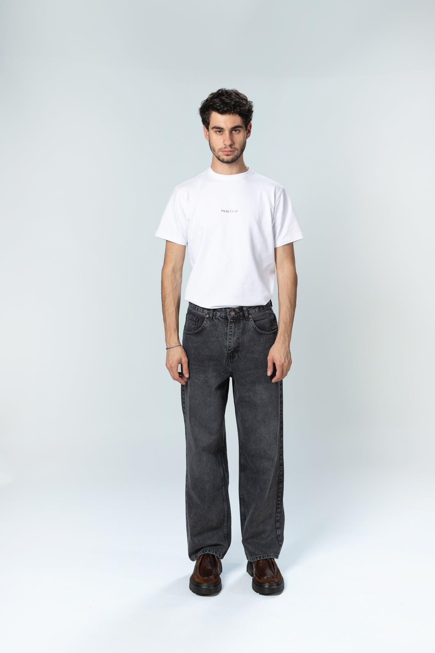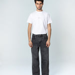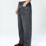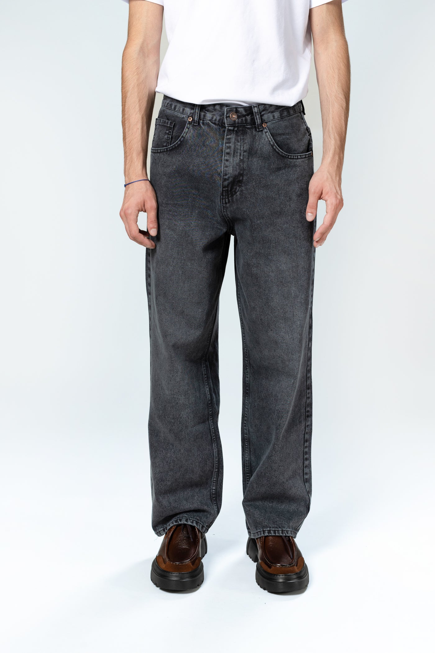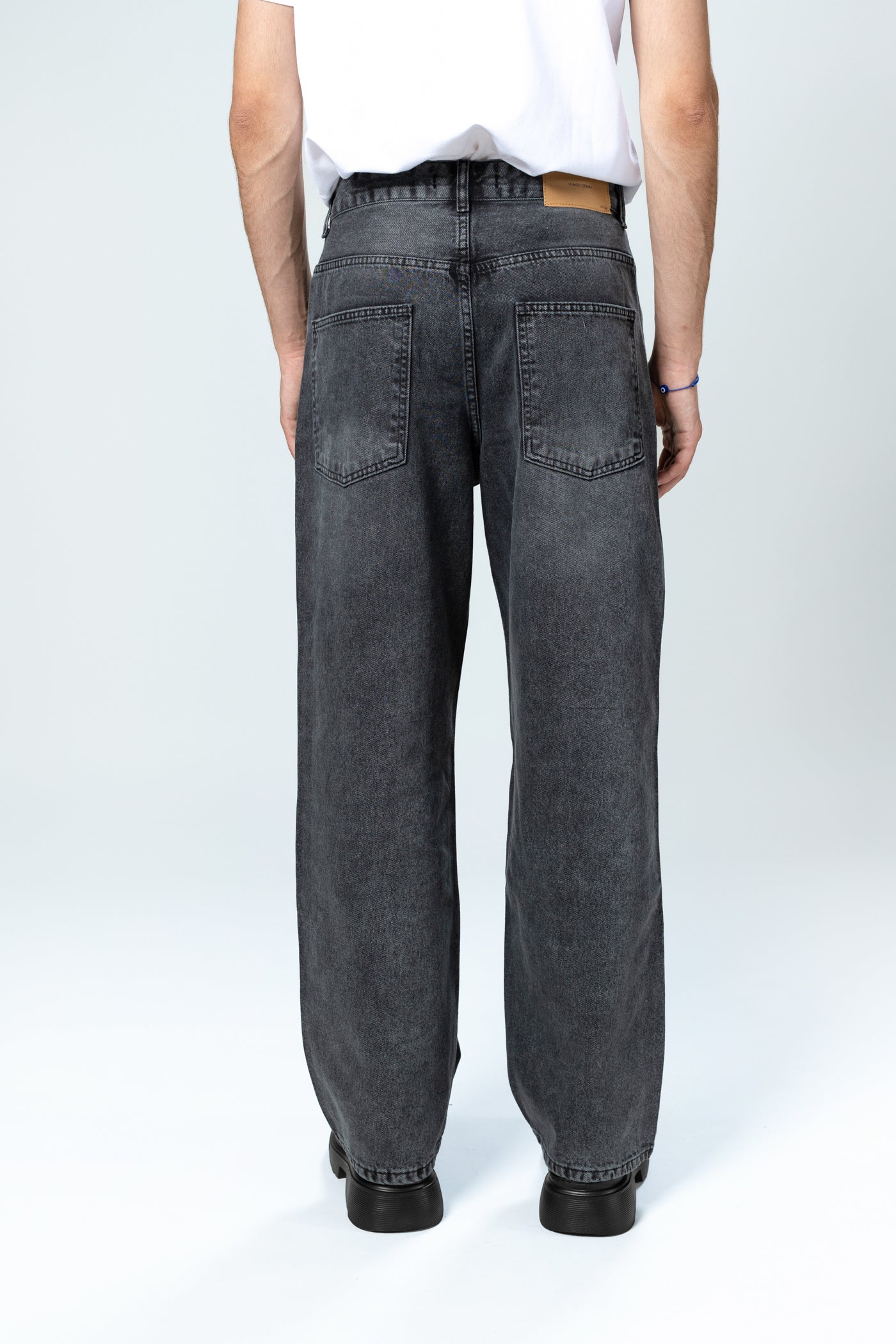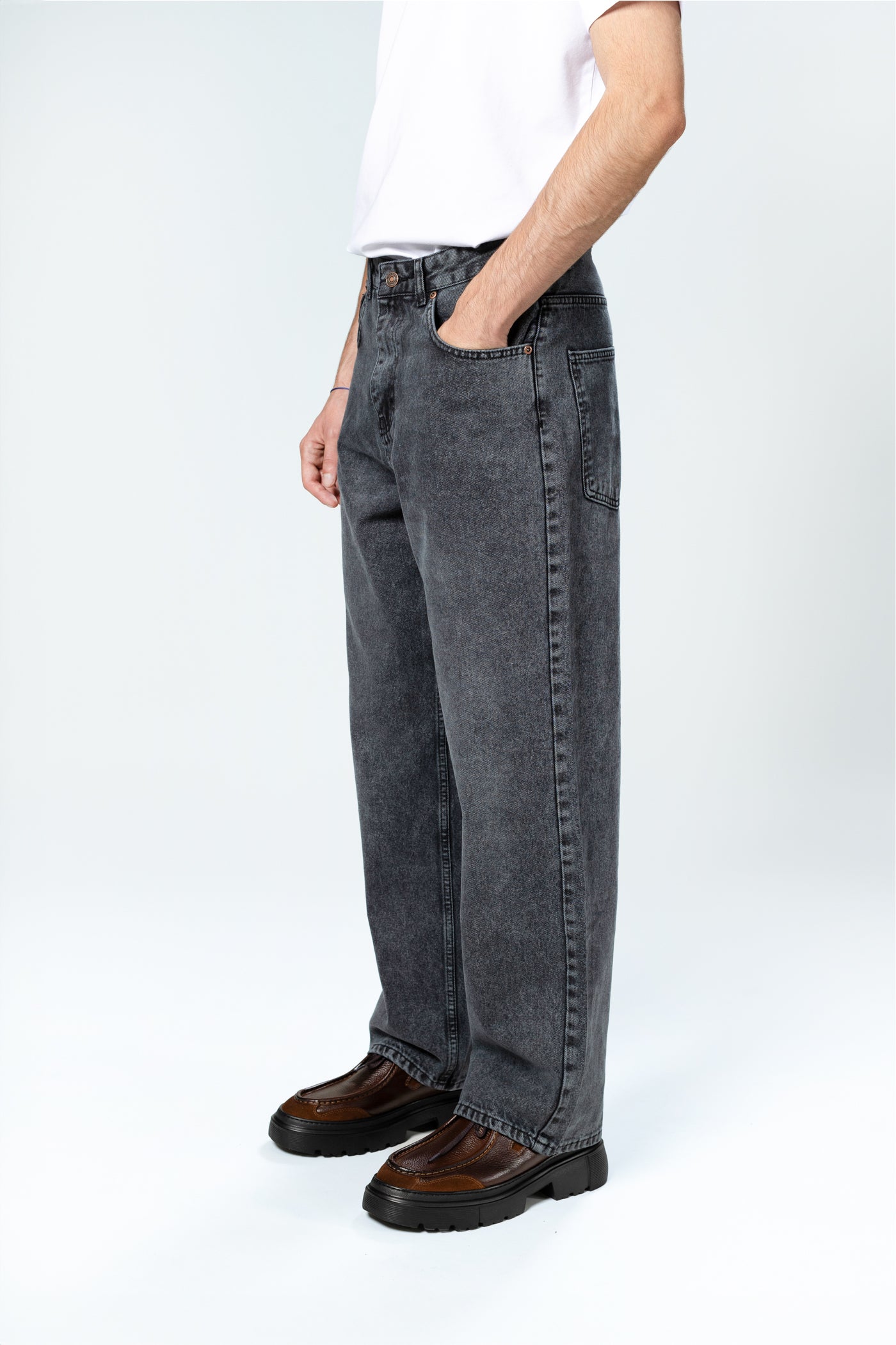 Pantaloni wide fit confecționați din denim de bumbac. Buzunare frontale. Buzunare la spate de tip aplicat. Închidere frontală cu fermoar și nasture.