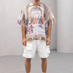Cămașă Oversize cu Guler Cubanez și Imprimeu Renascentist