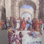 - Imprimeu integral inspirat din fresca „Școala din Atena” de Raffaello