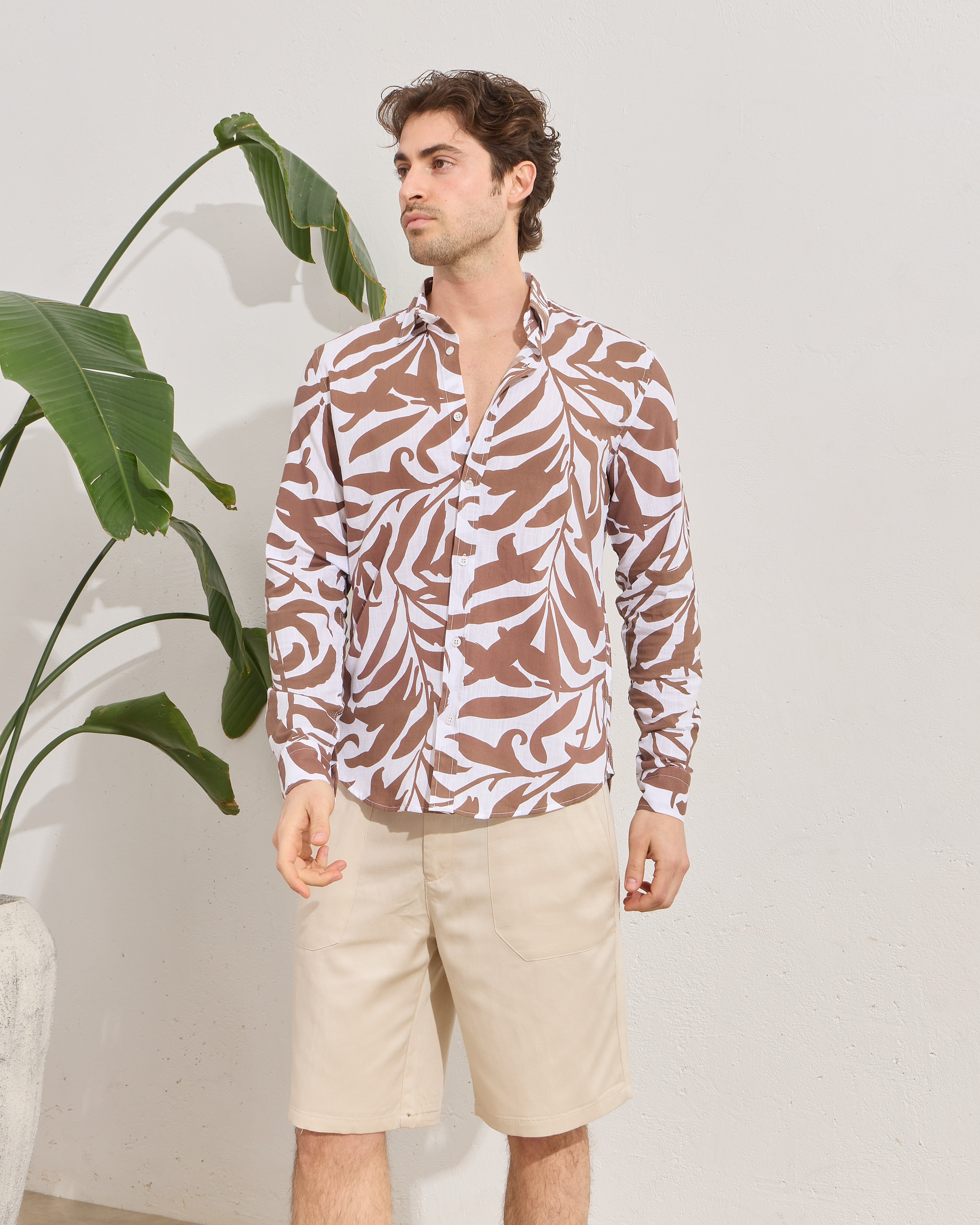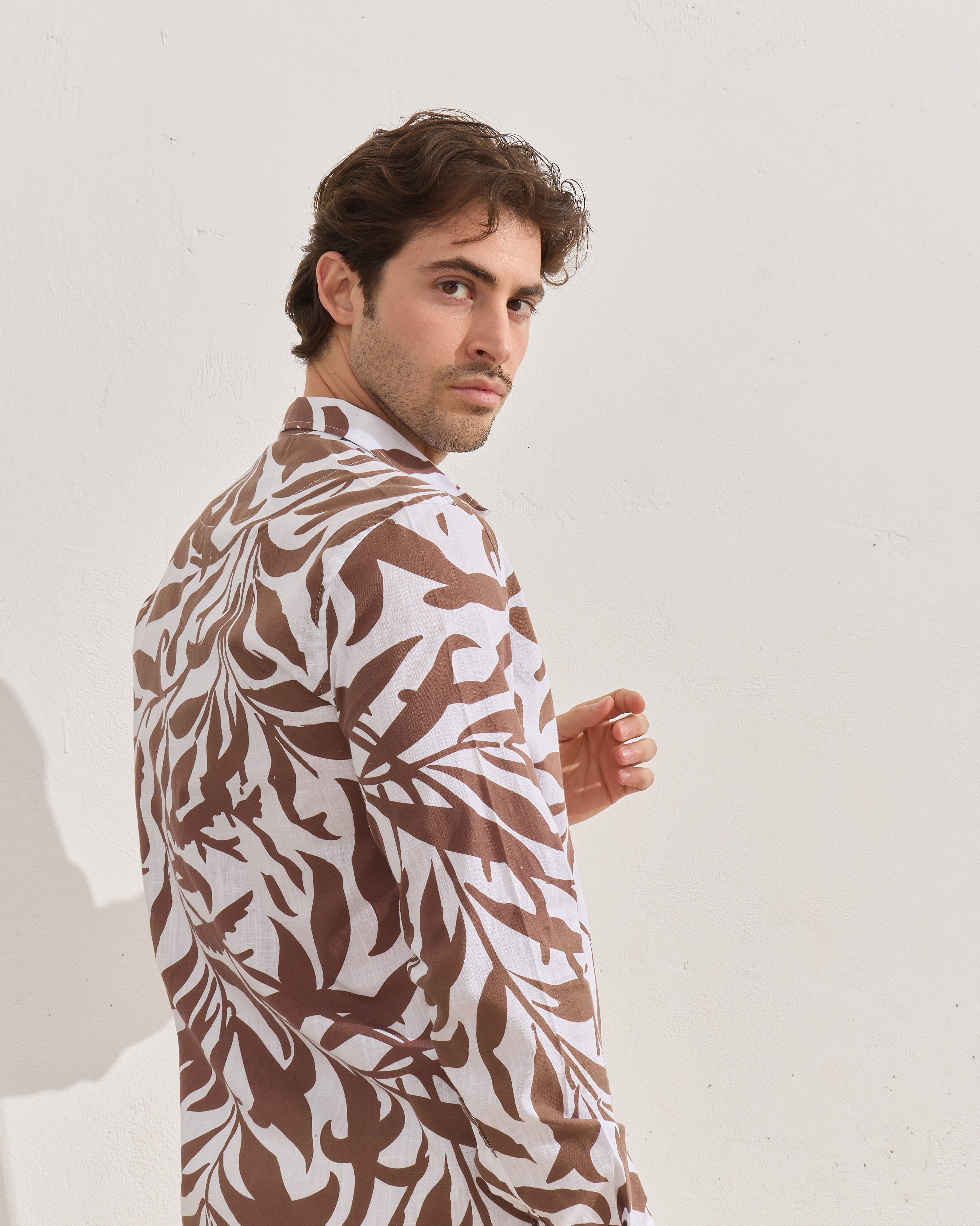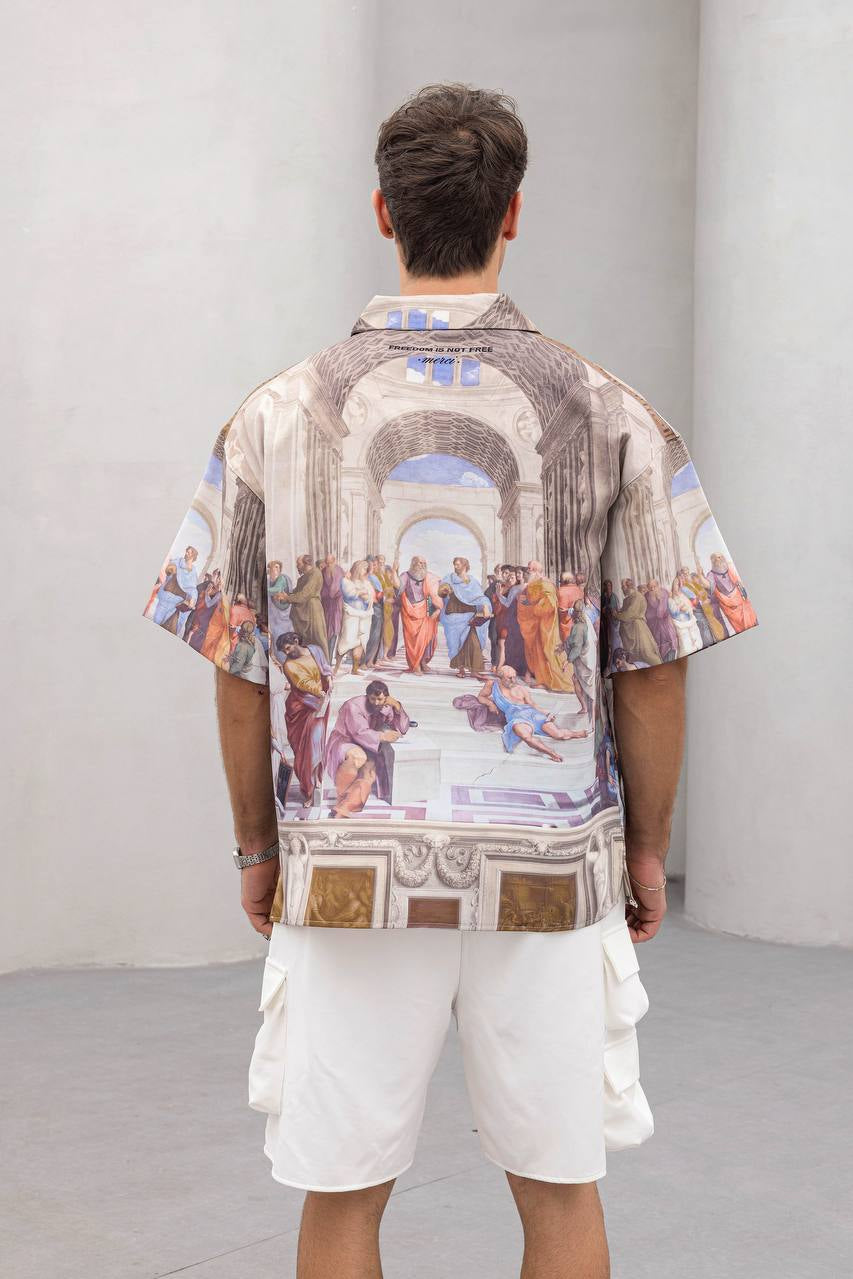 Cămașă Oversize cu Guler Cubanez și Imprimeu Renascentist