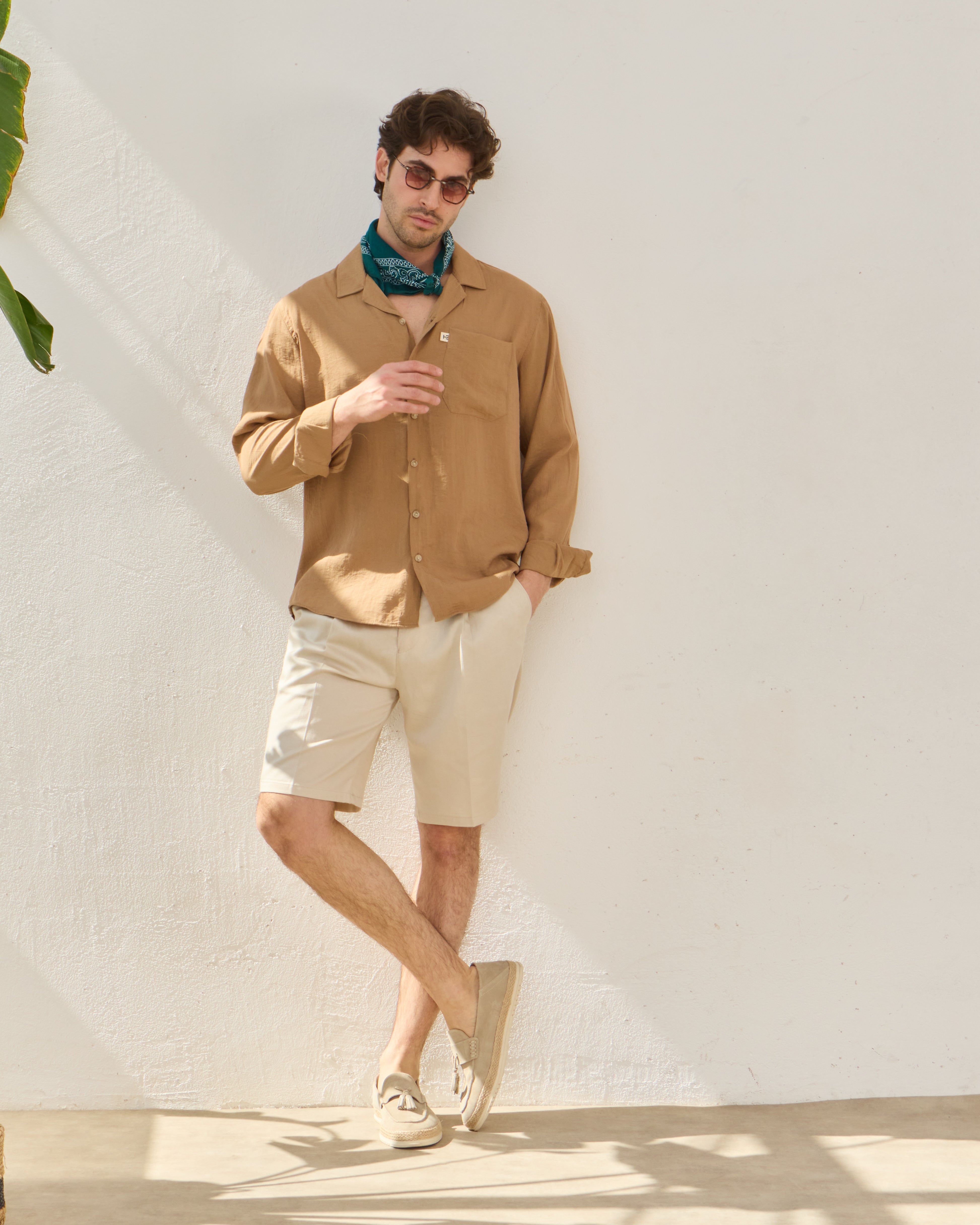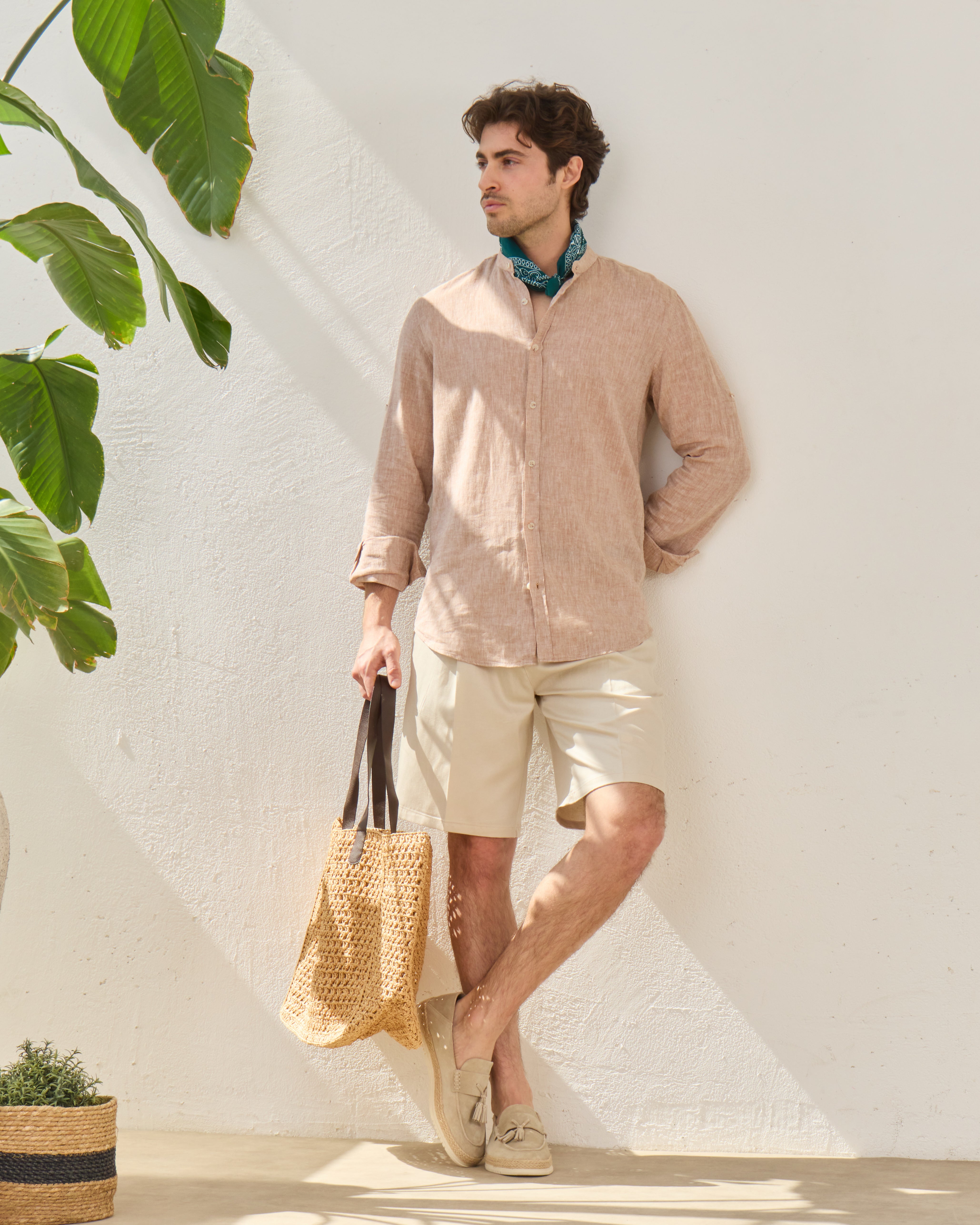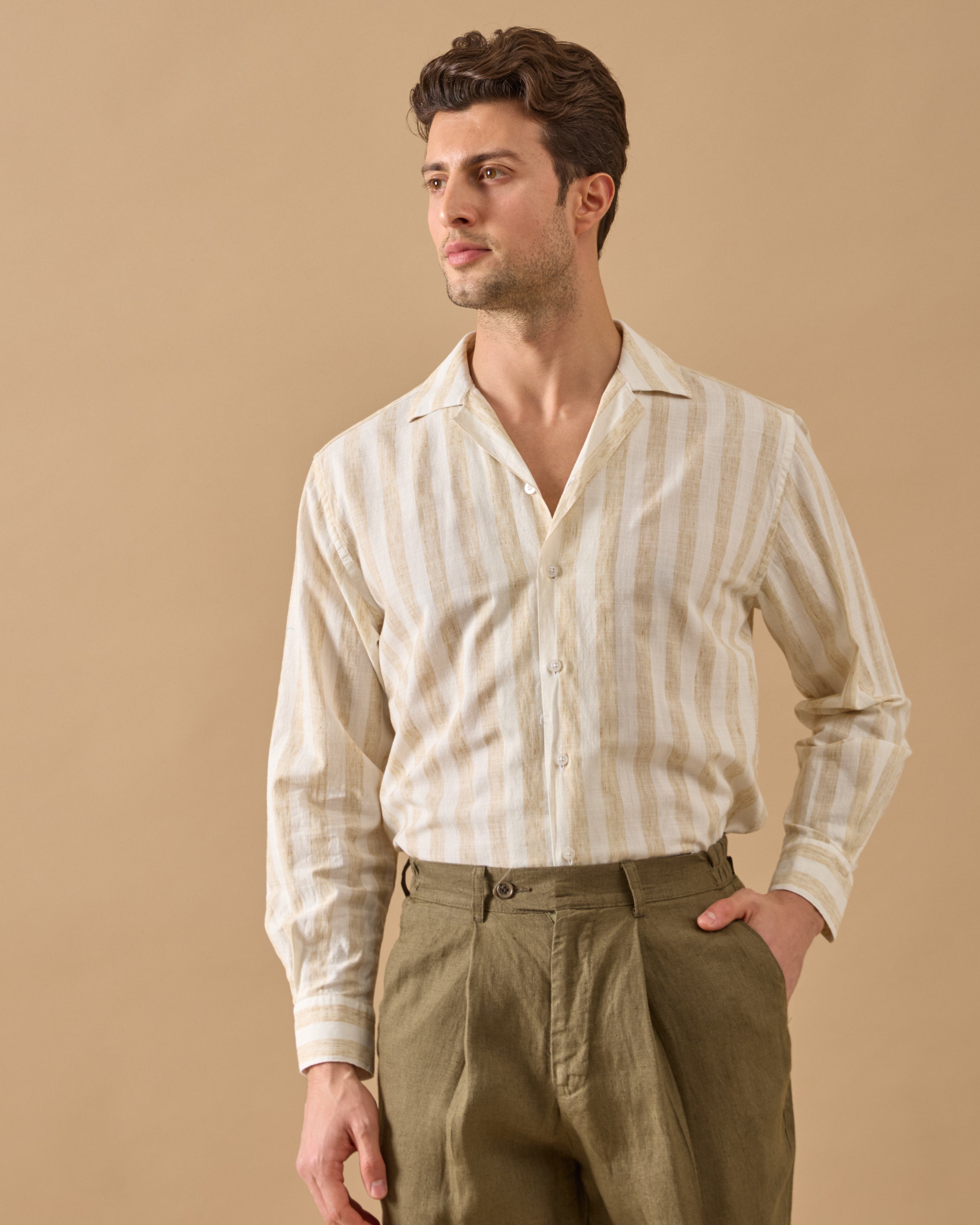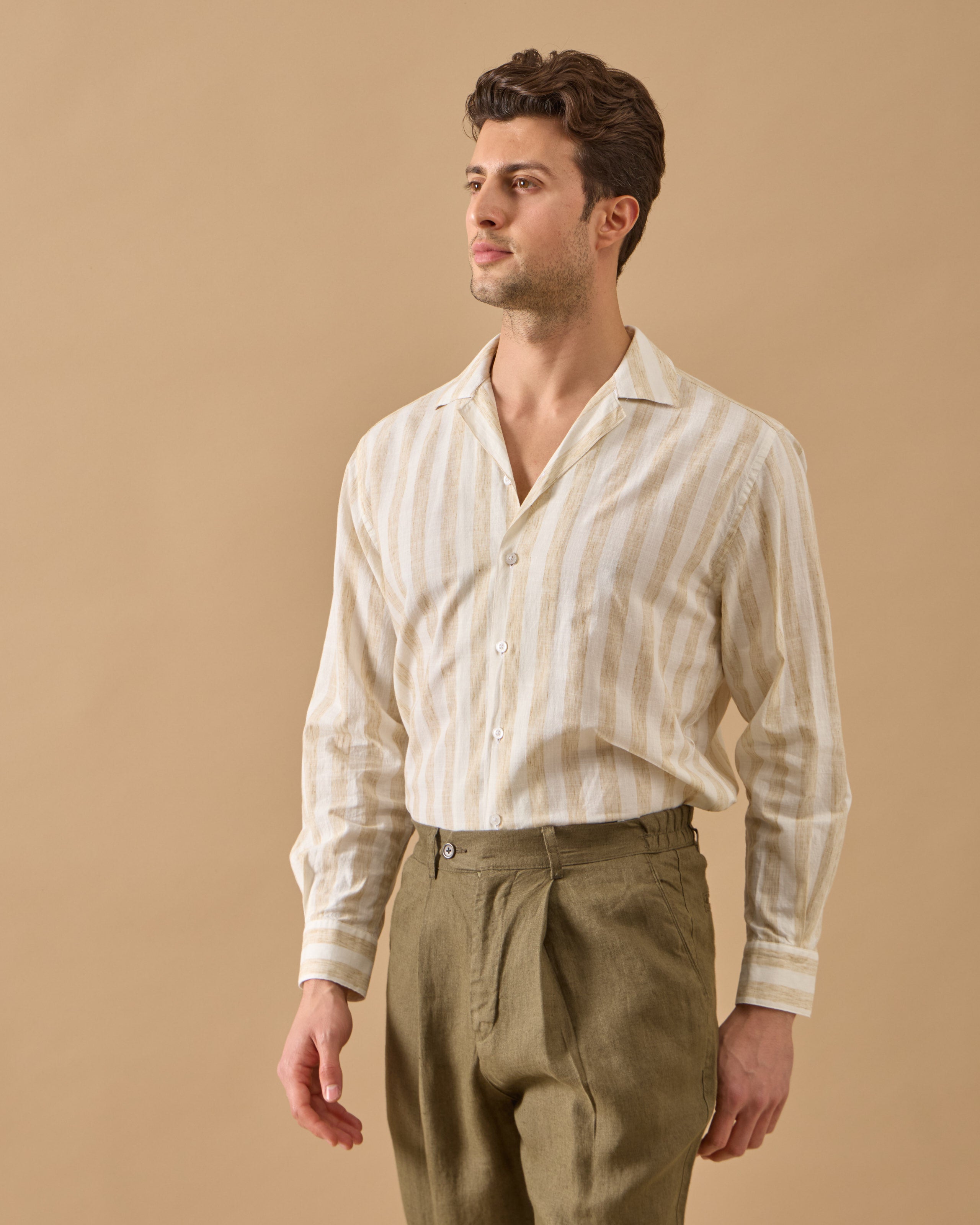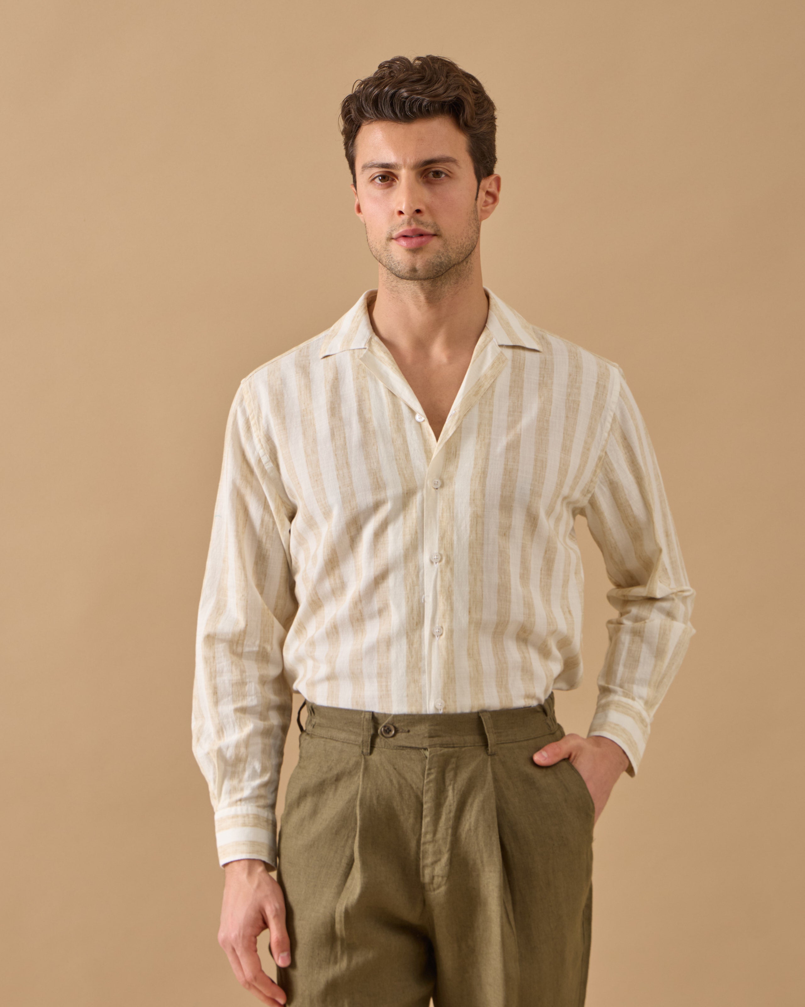 Cămașă Oversize cu Guler Cubanez – „Village Sketch” (alb-ivoire)
