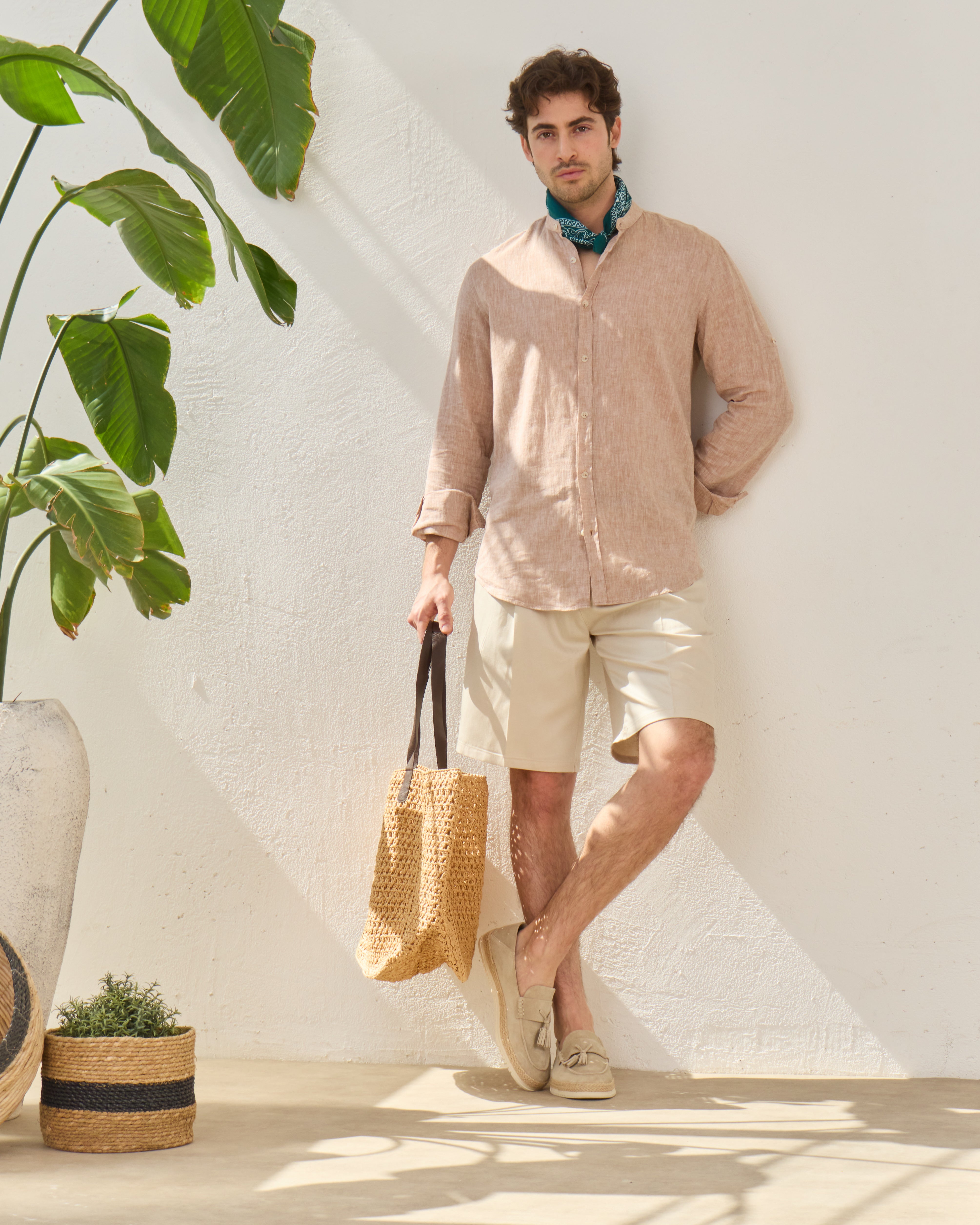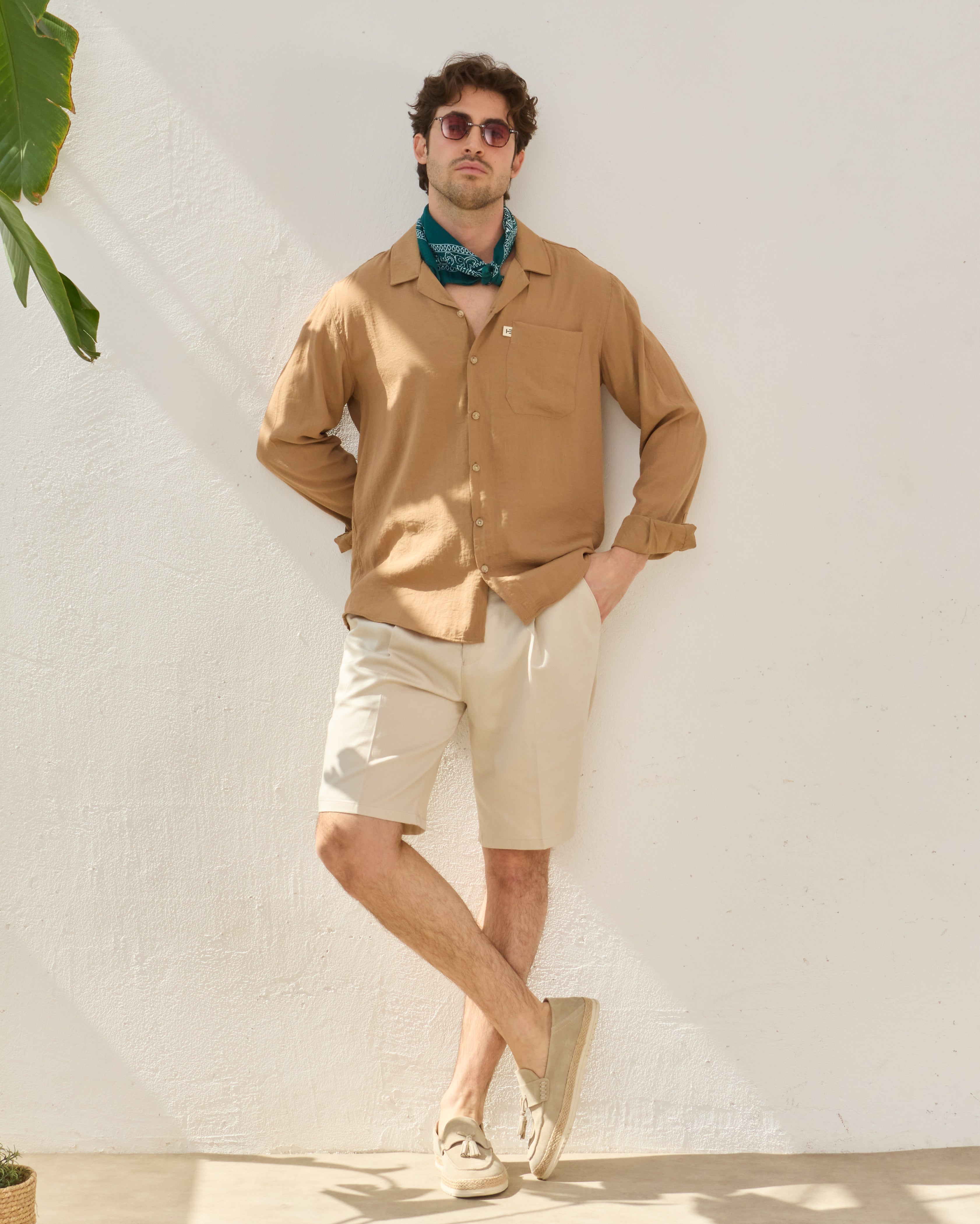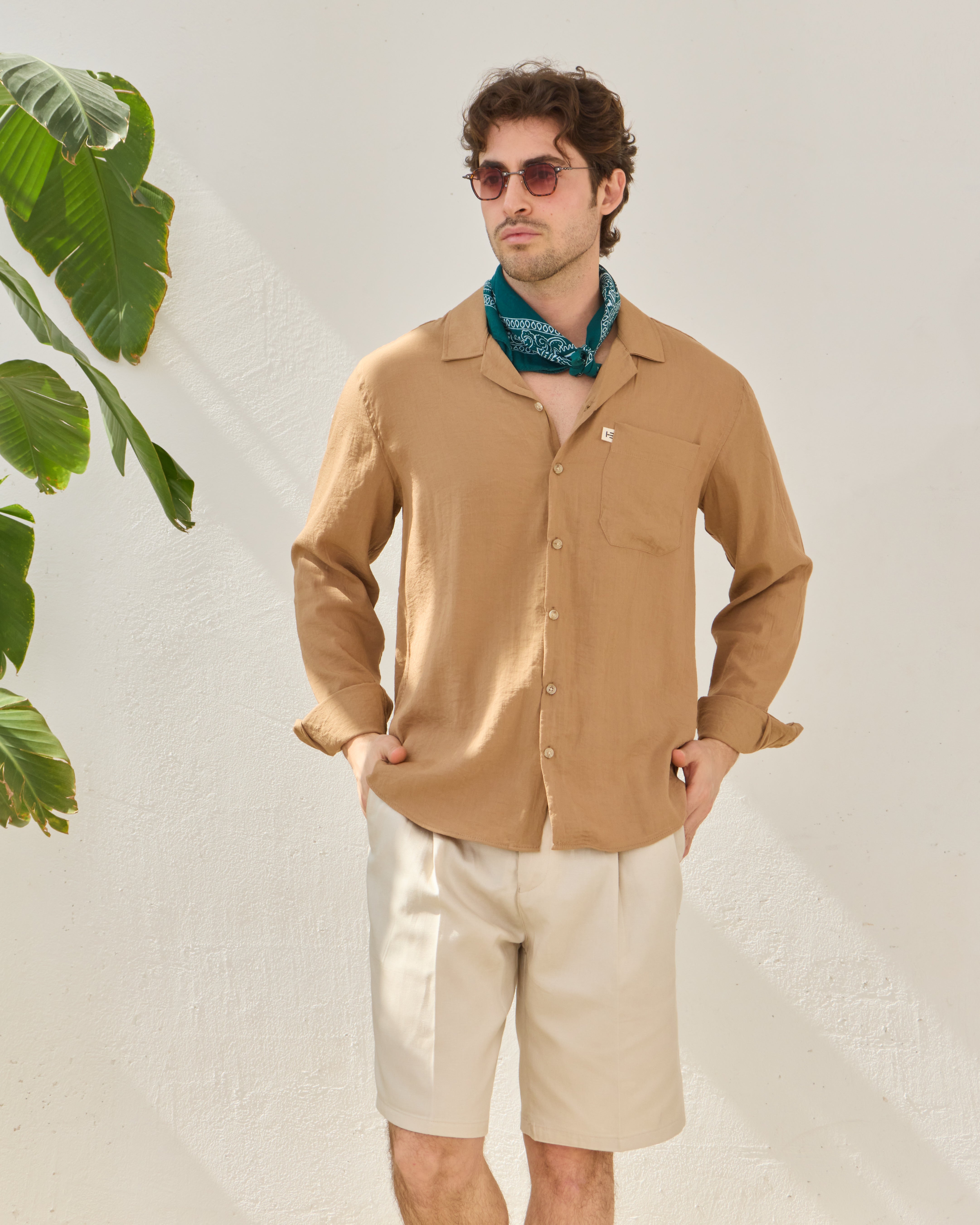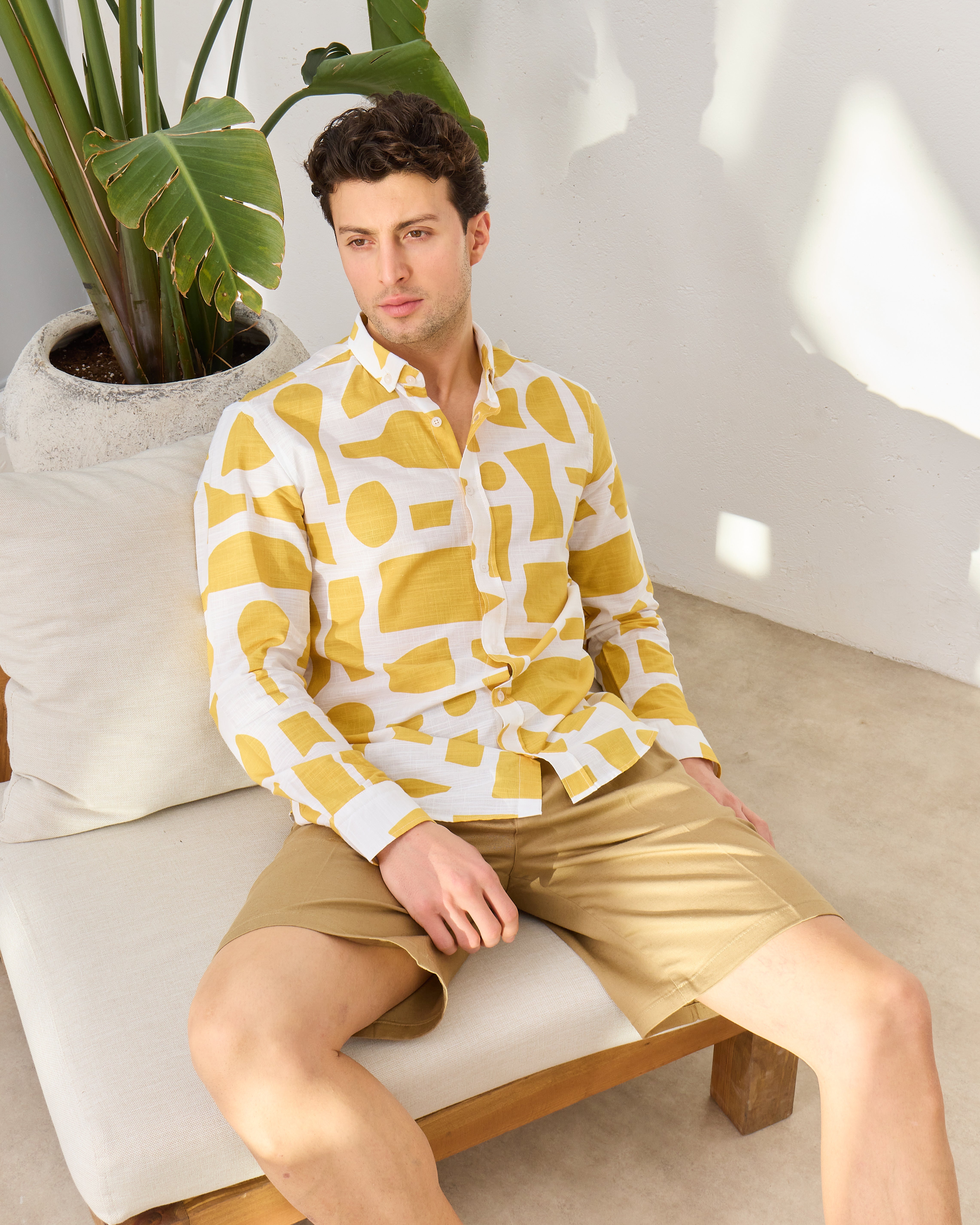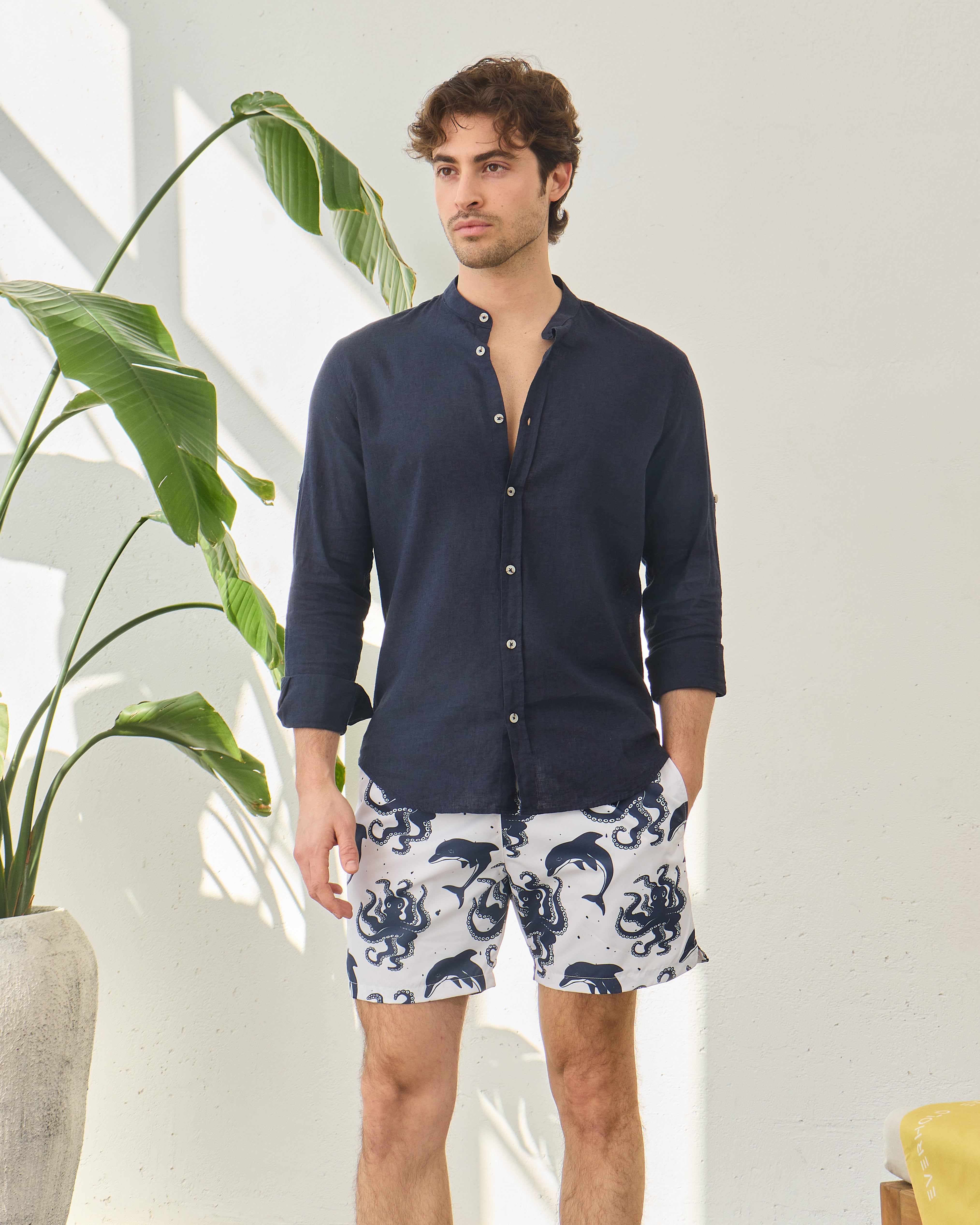 Cămașă Oversize cu Guler Cubanez – „Village Sketch” (alb-ivoire)