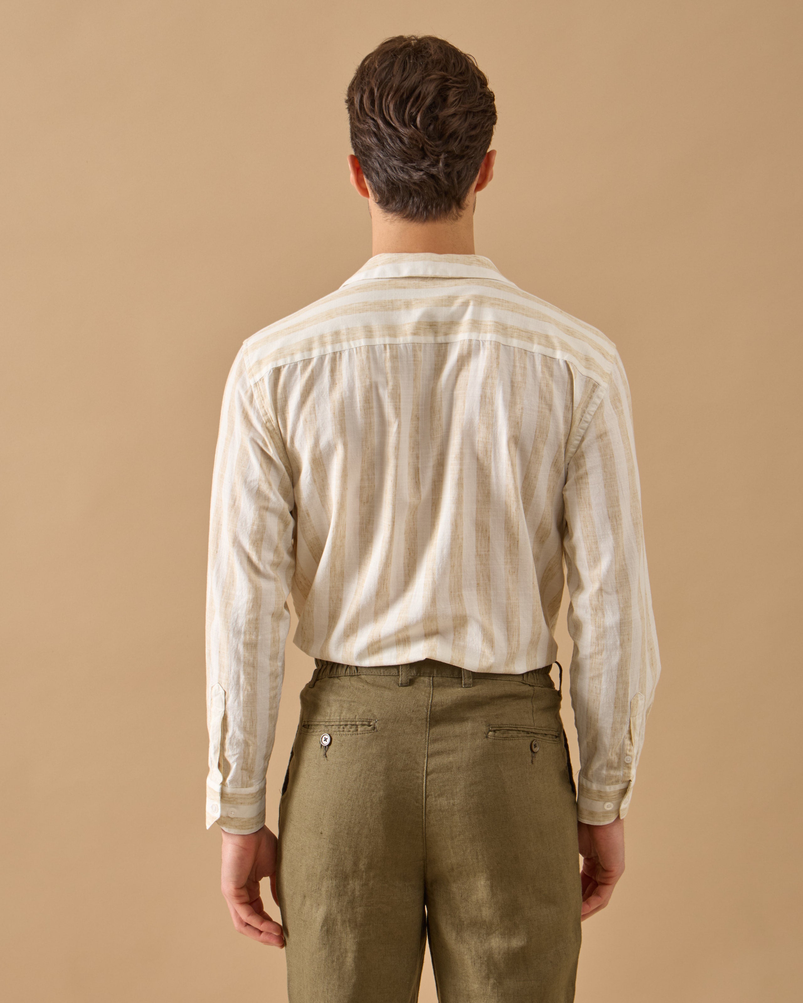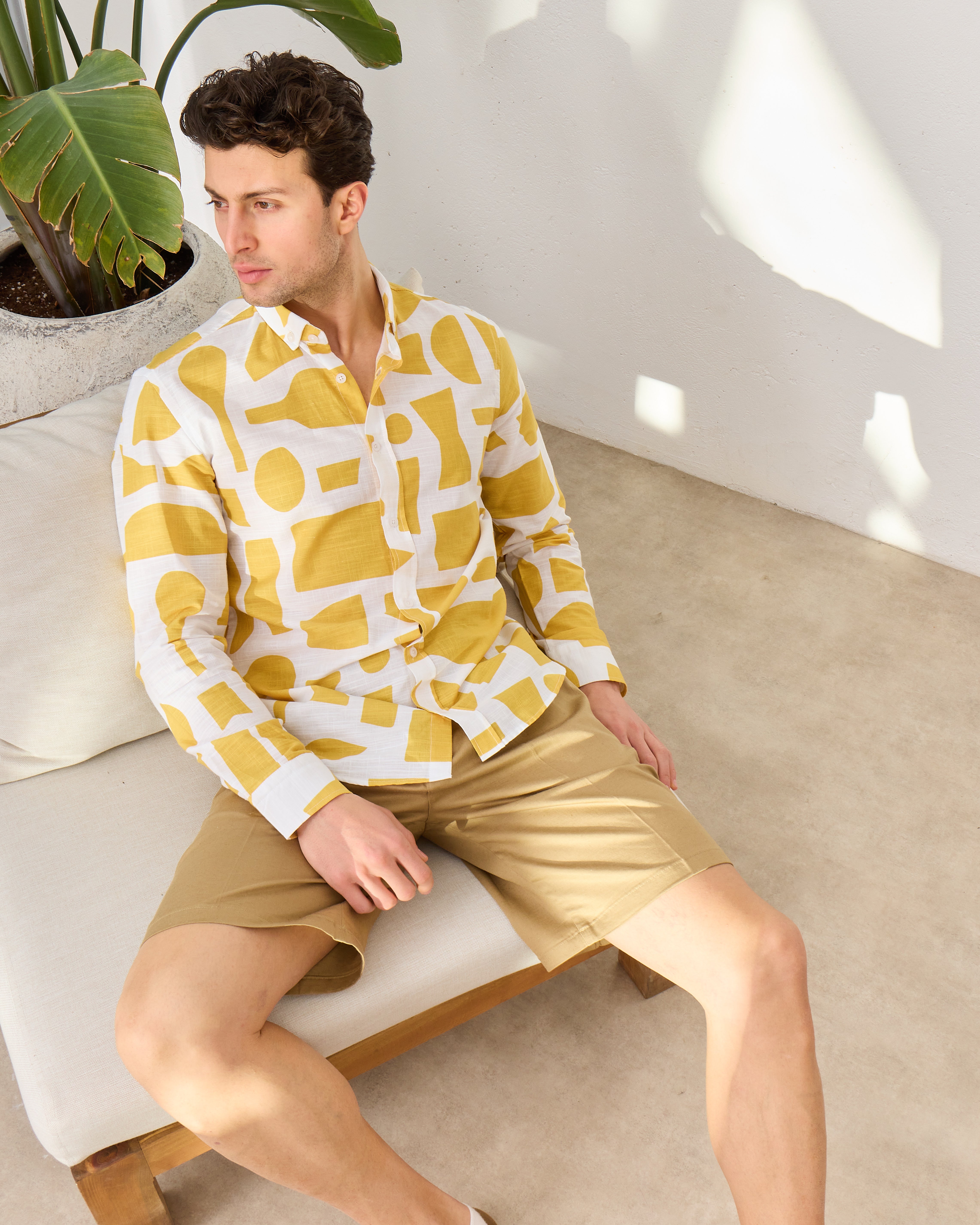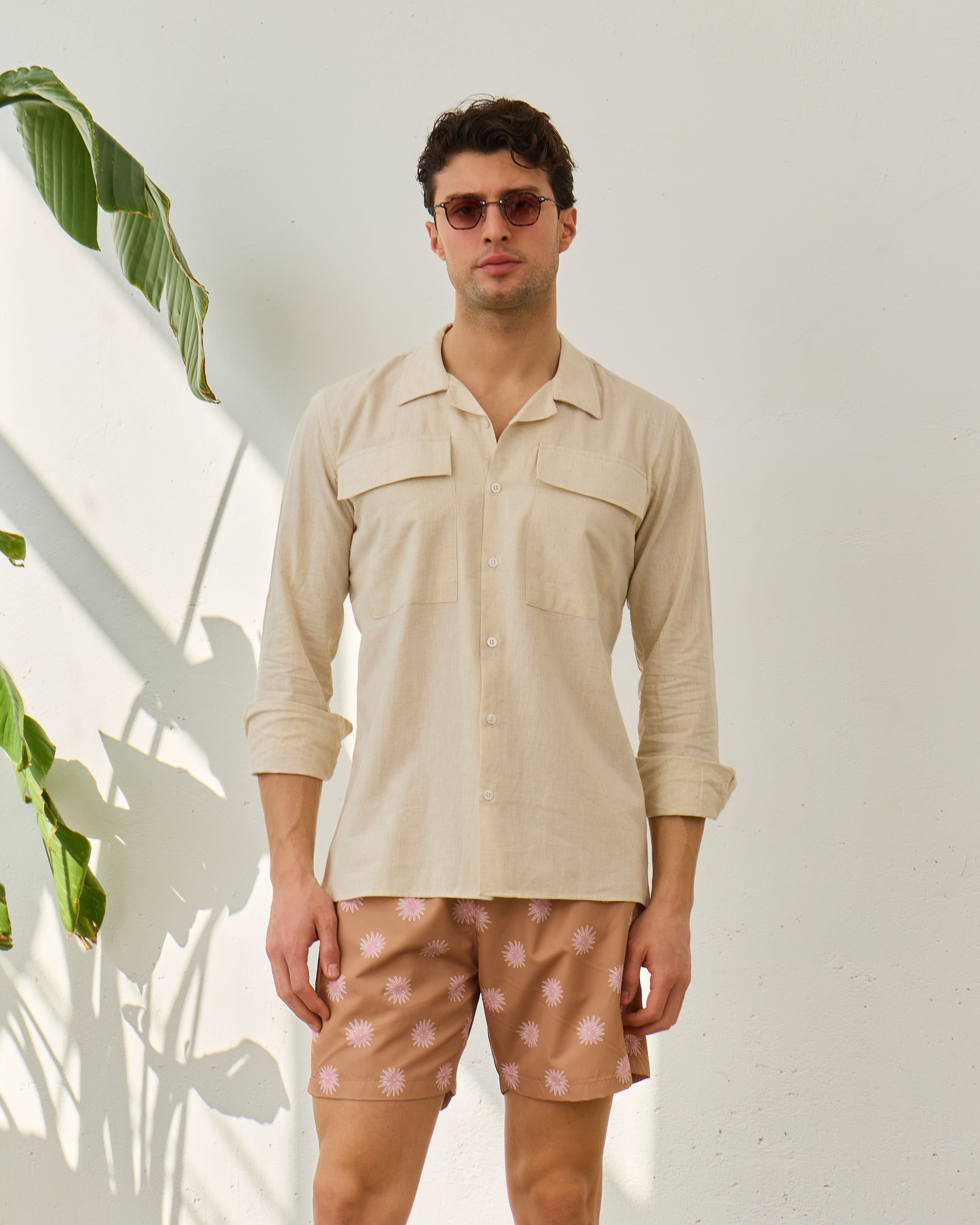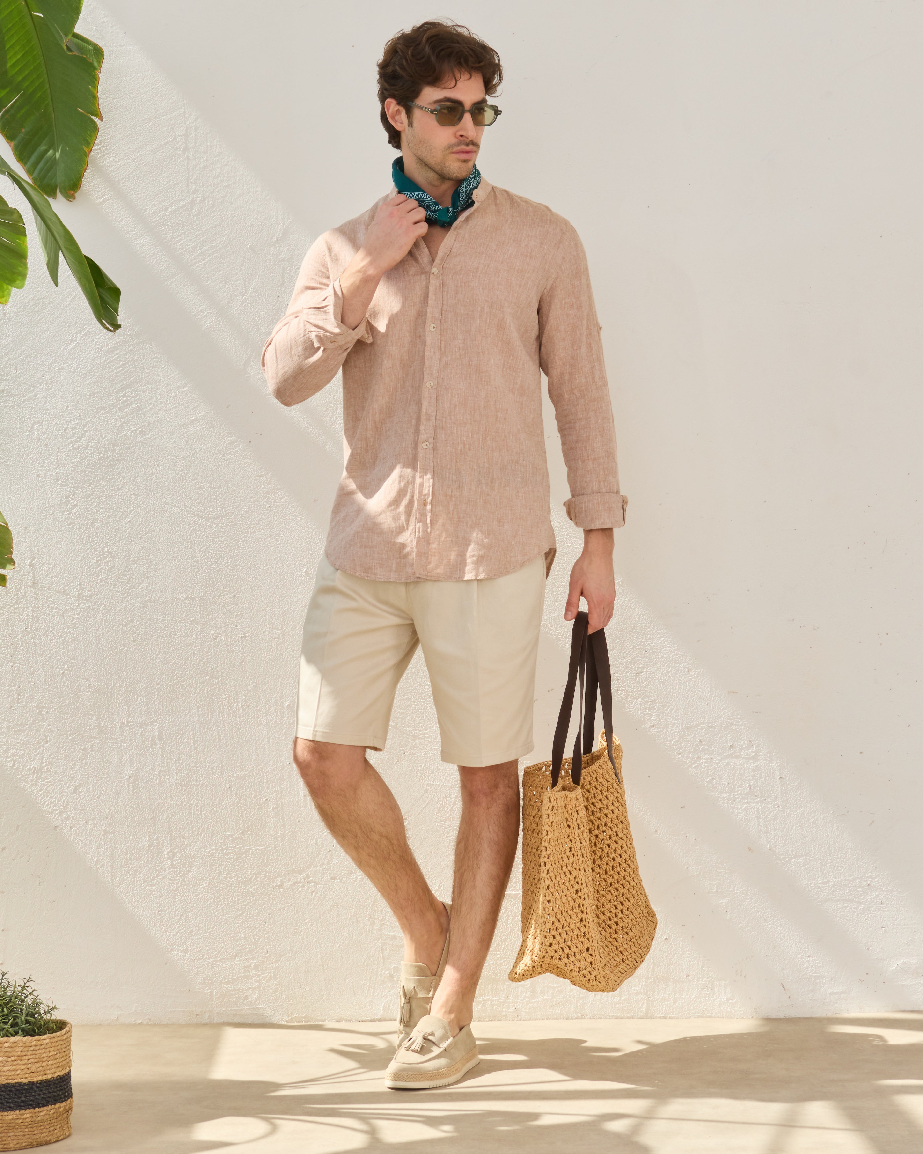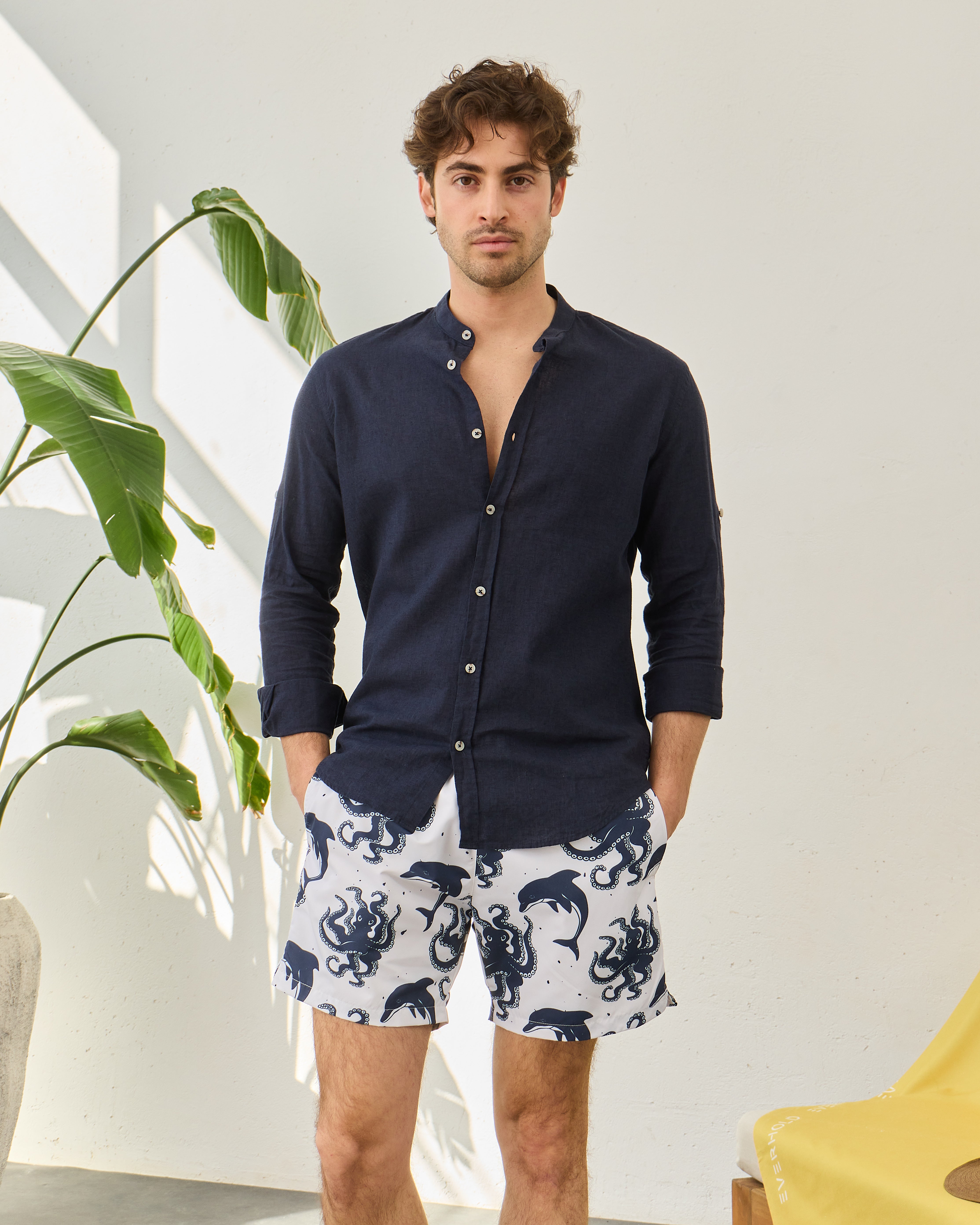Cămașă Oversize cu Guler Cubanez – „Village Sketch” (alb-ivoire)