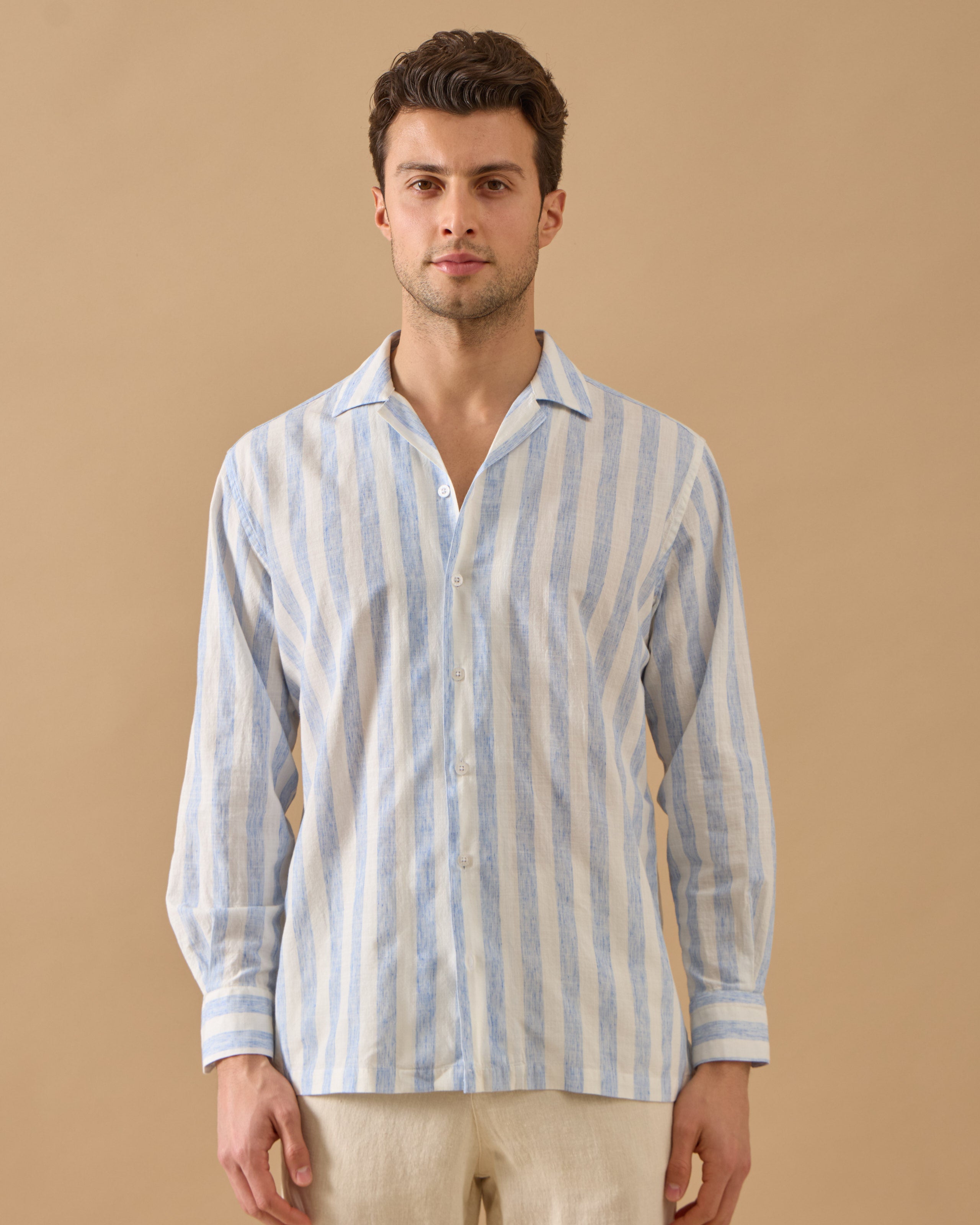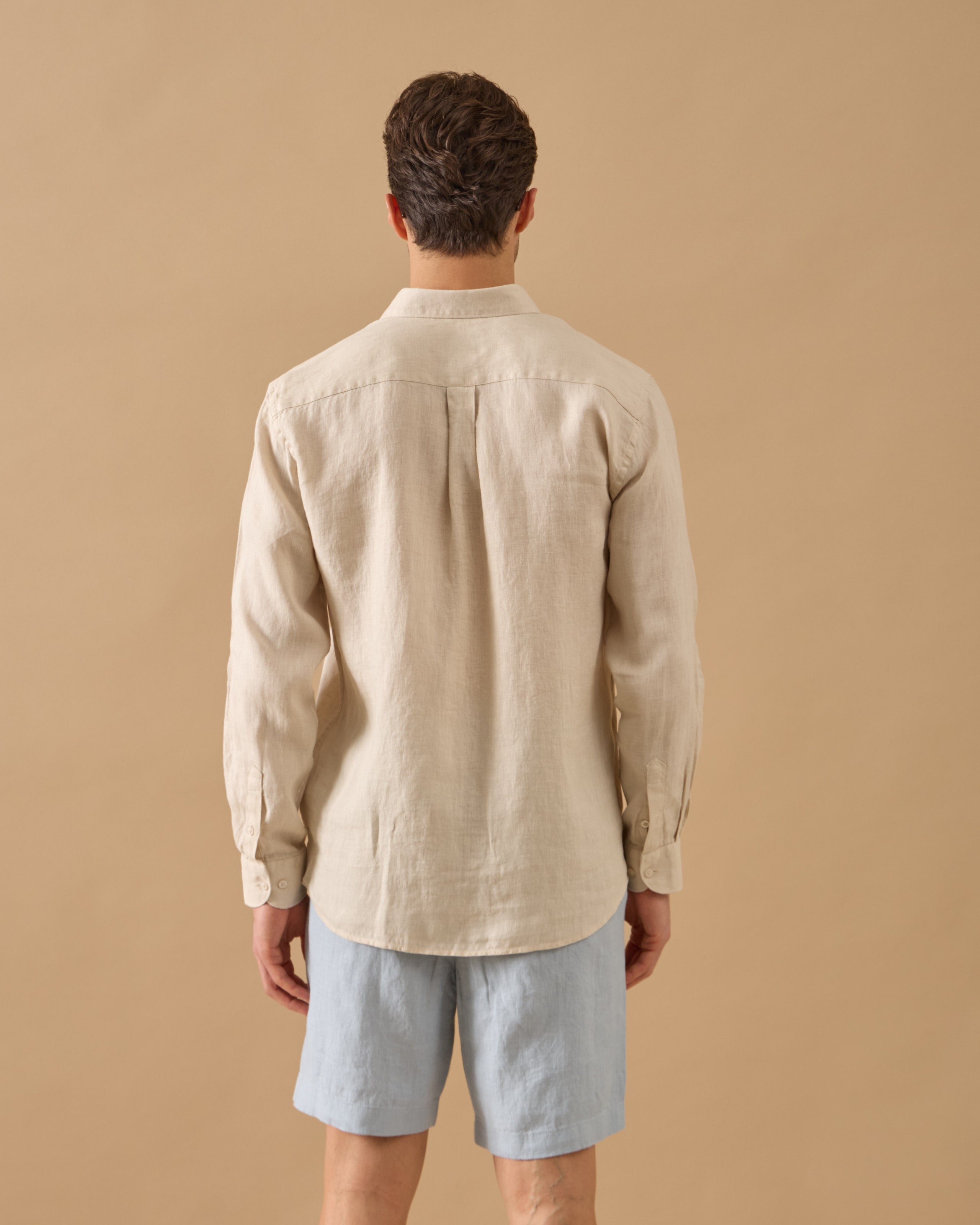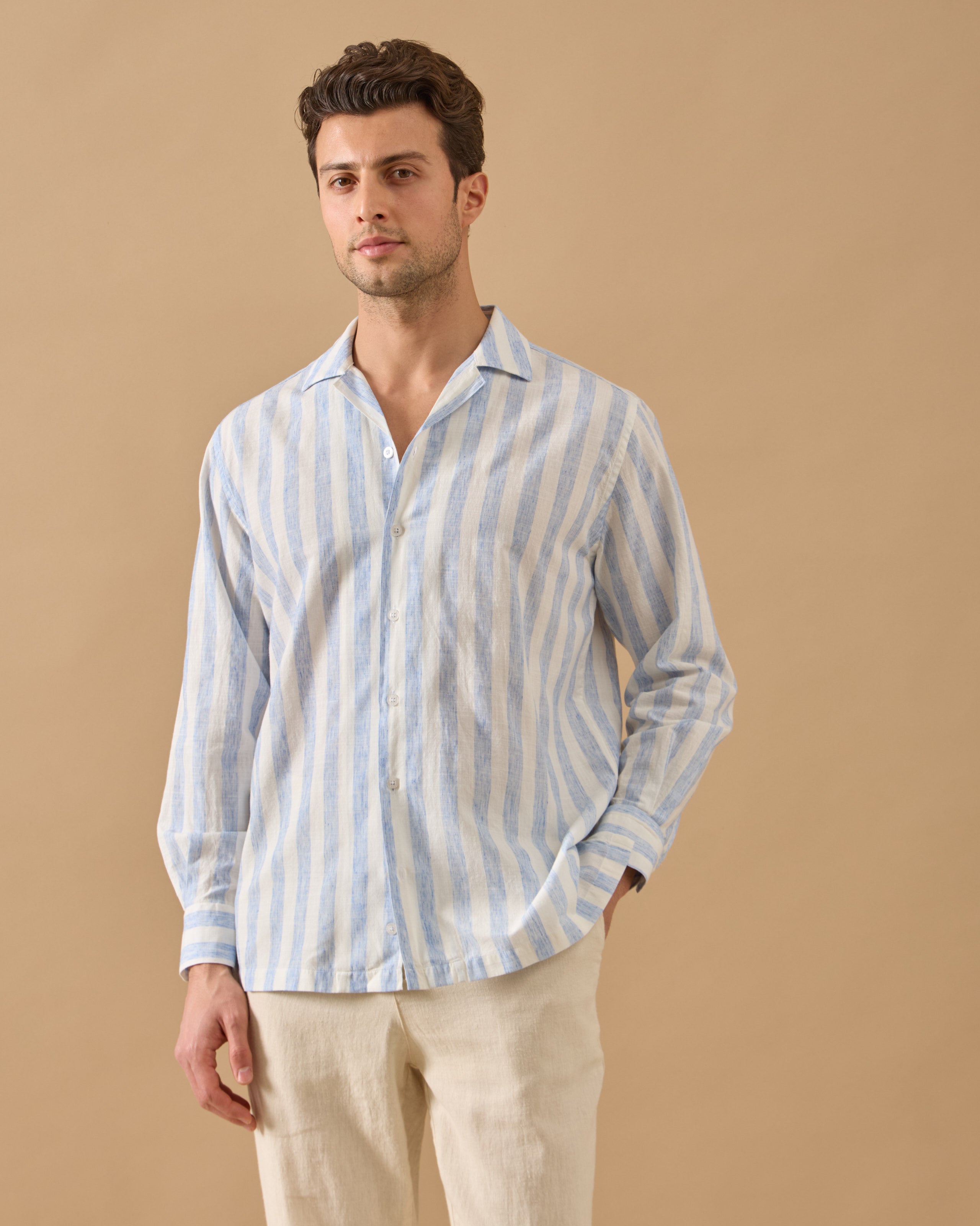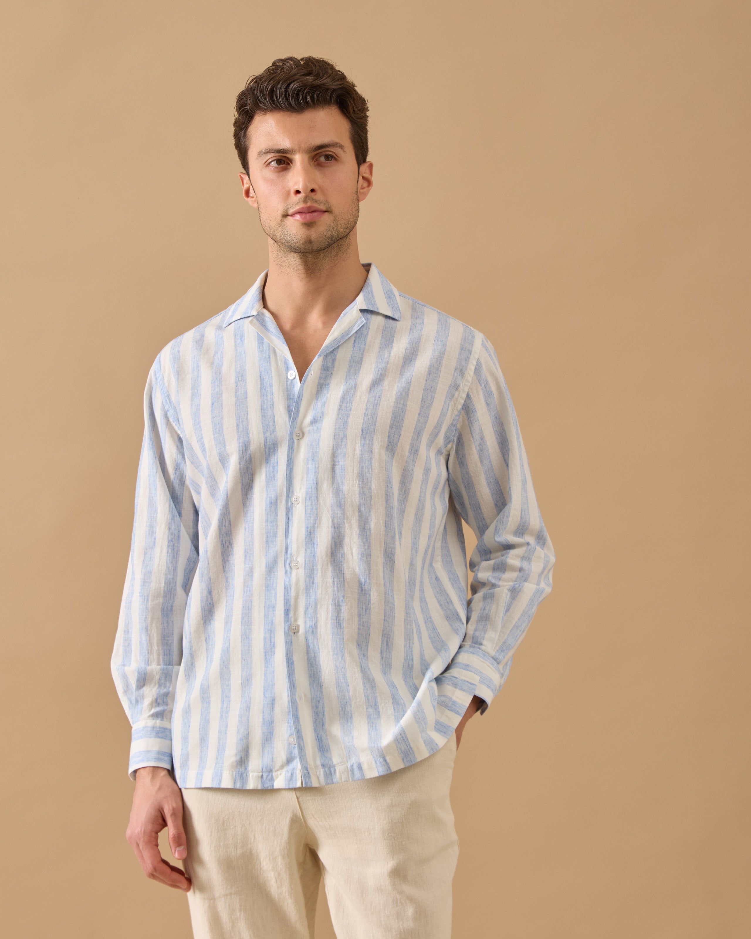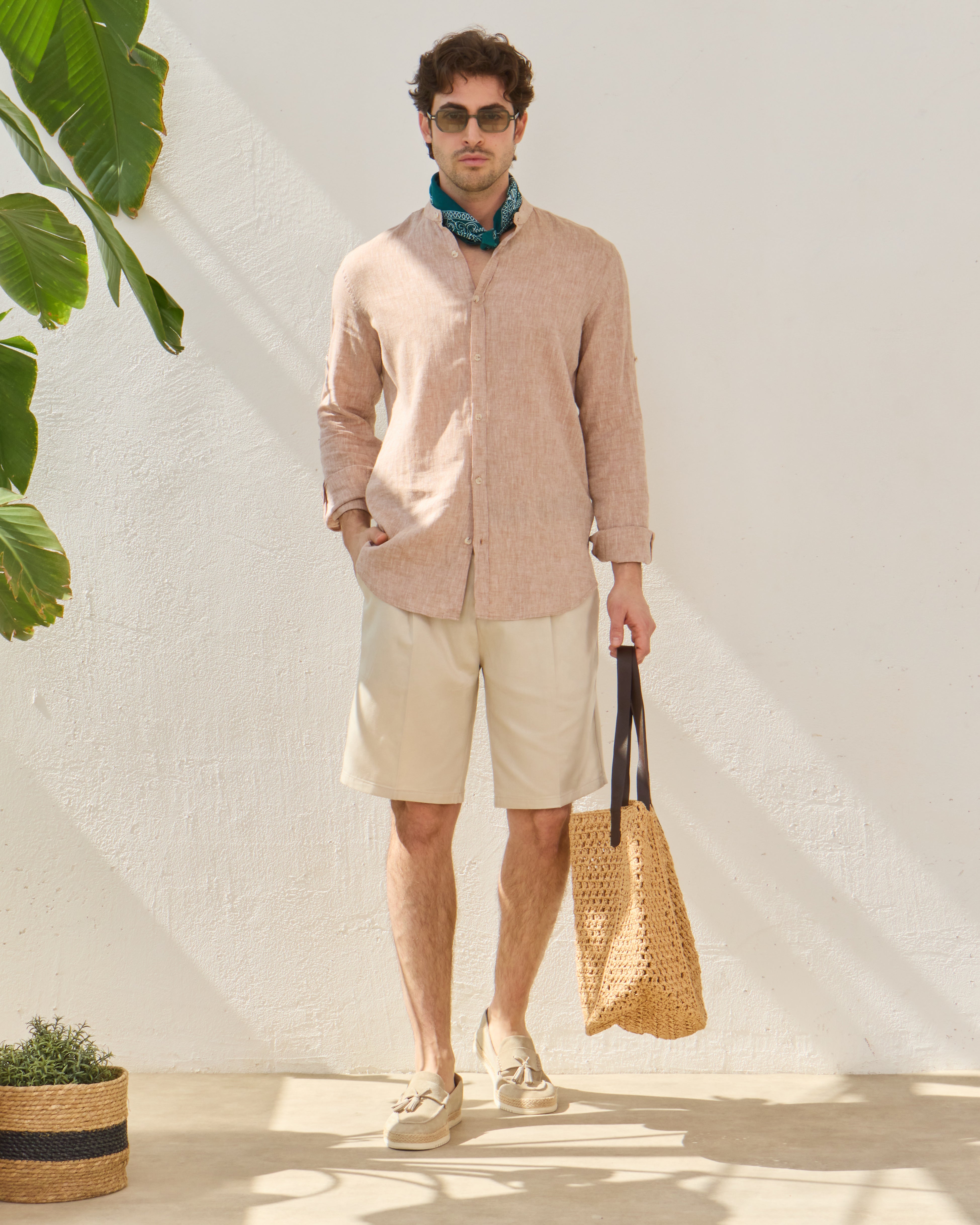 Cămașă Oversize cu Guler Cubanez – „Village Sketch” (alb-ivoire)
