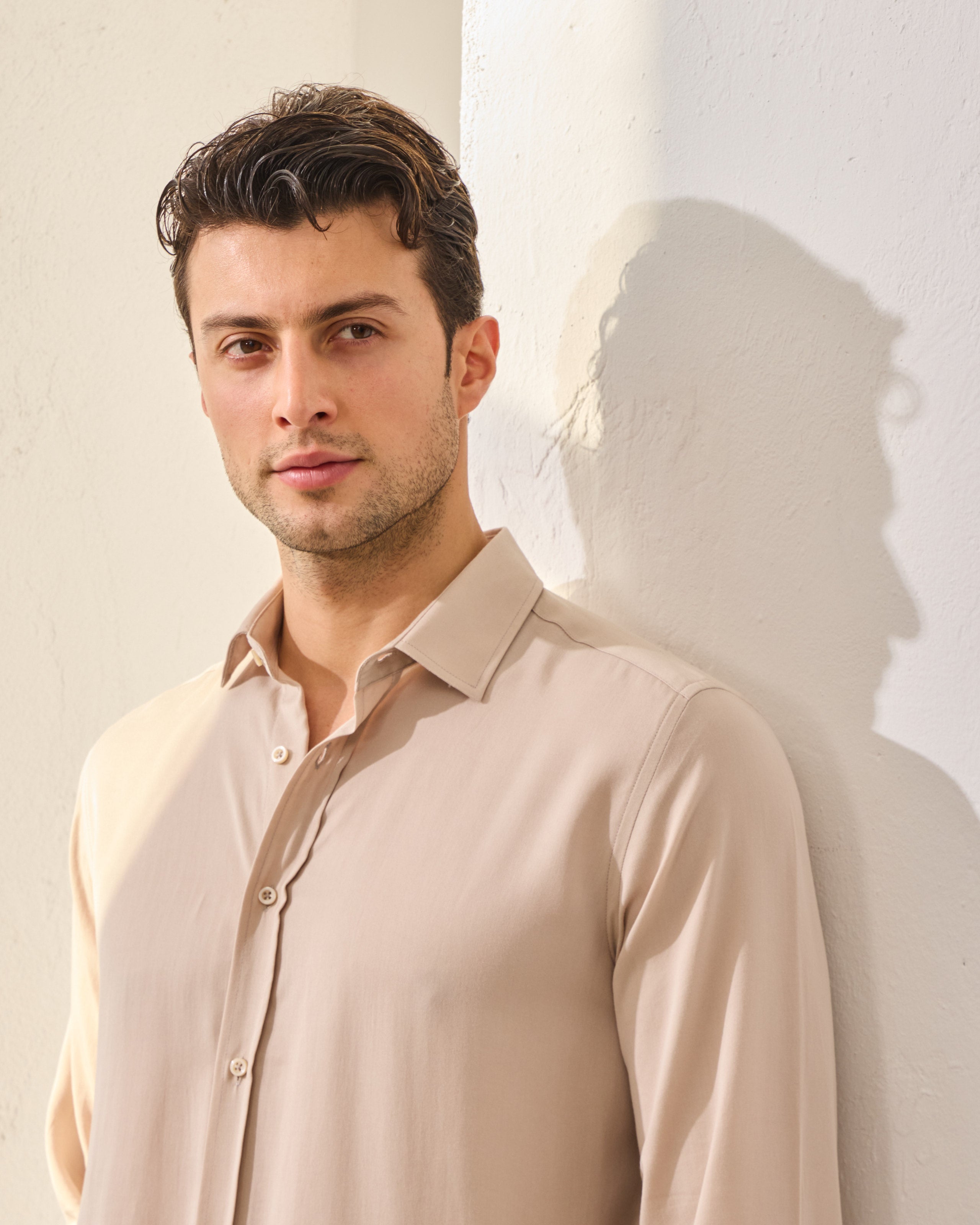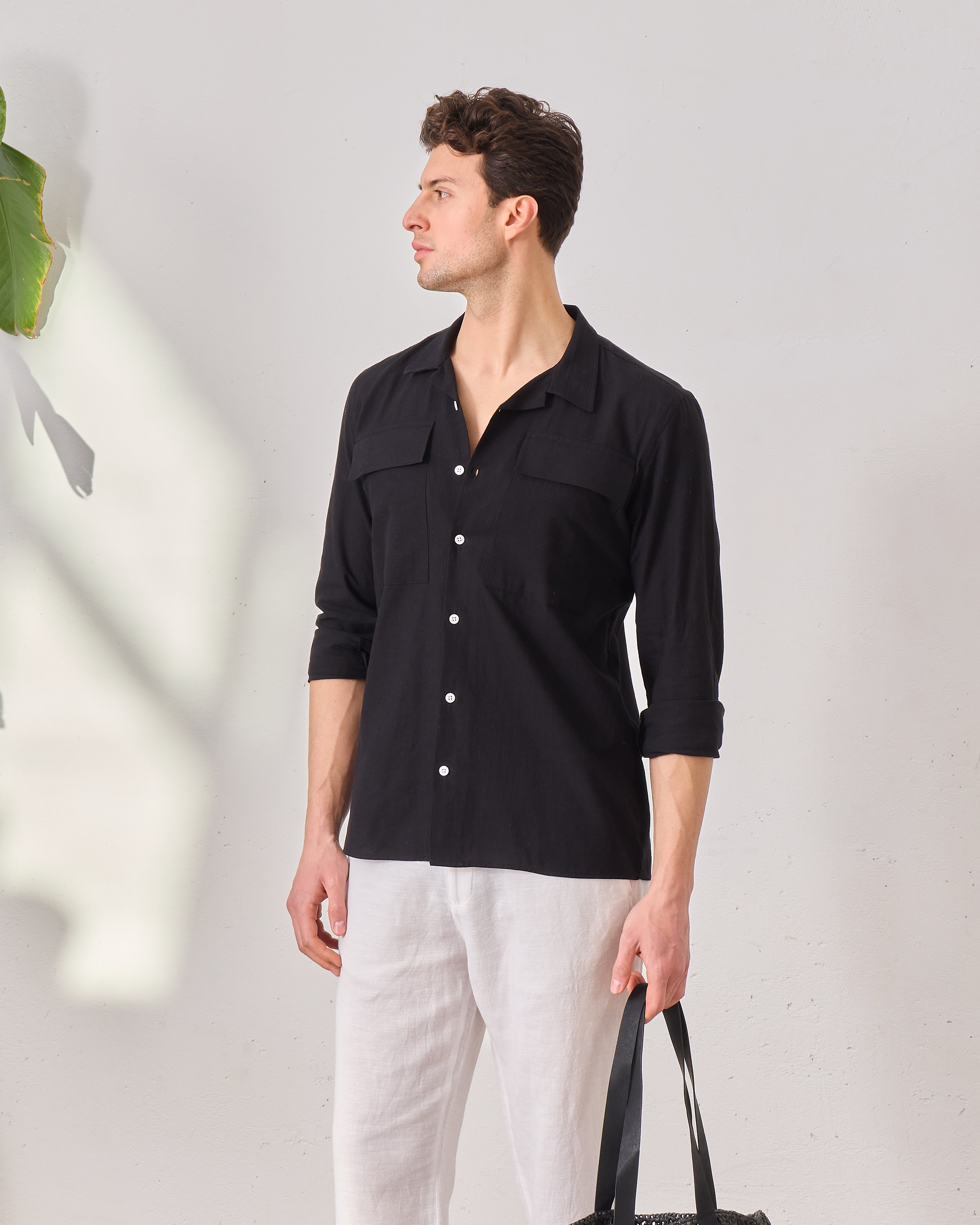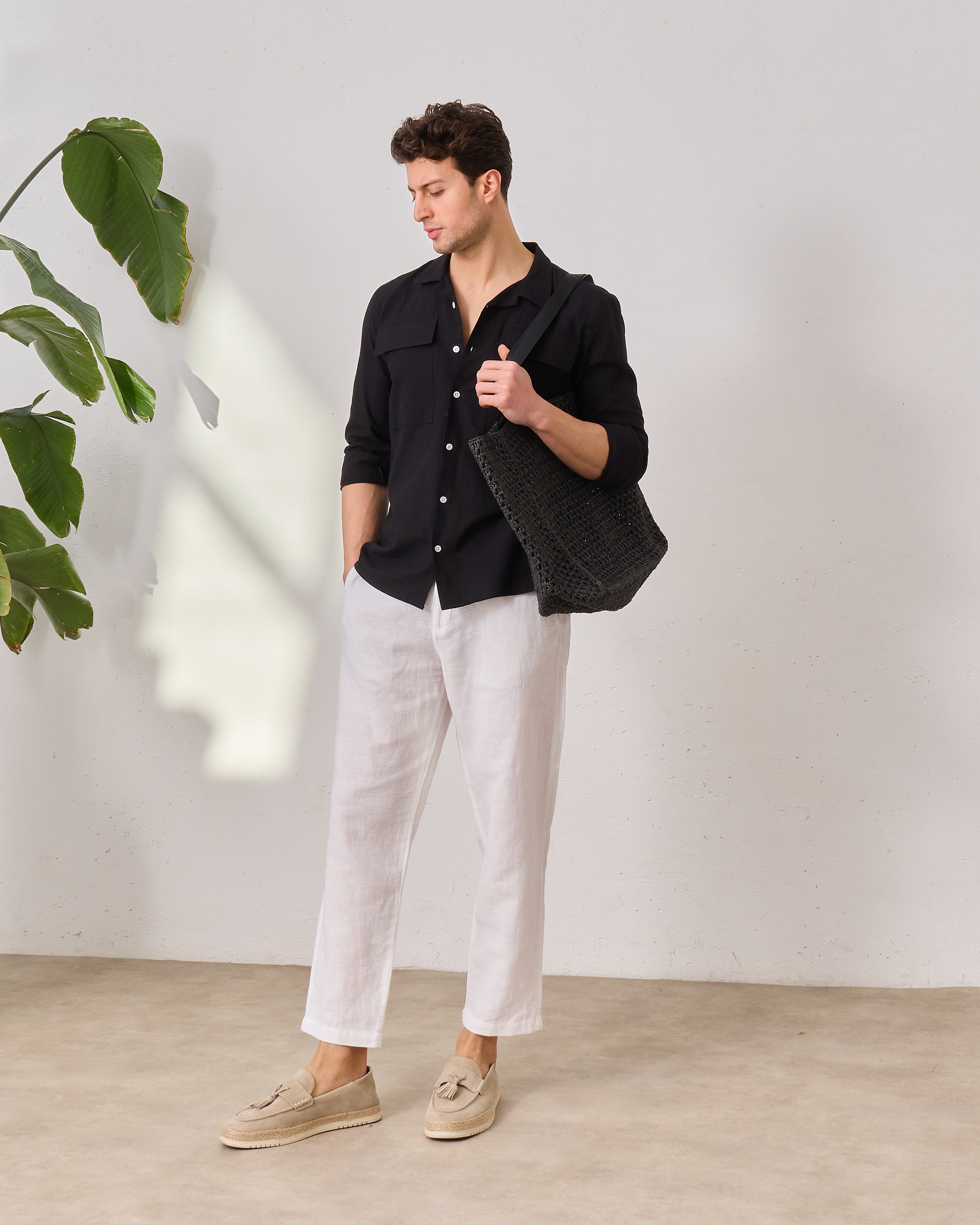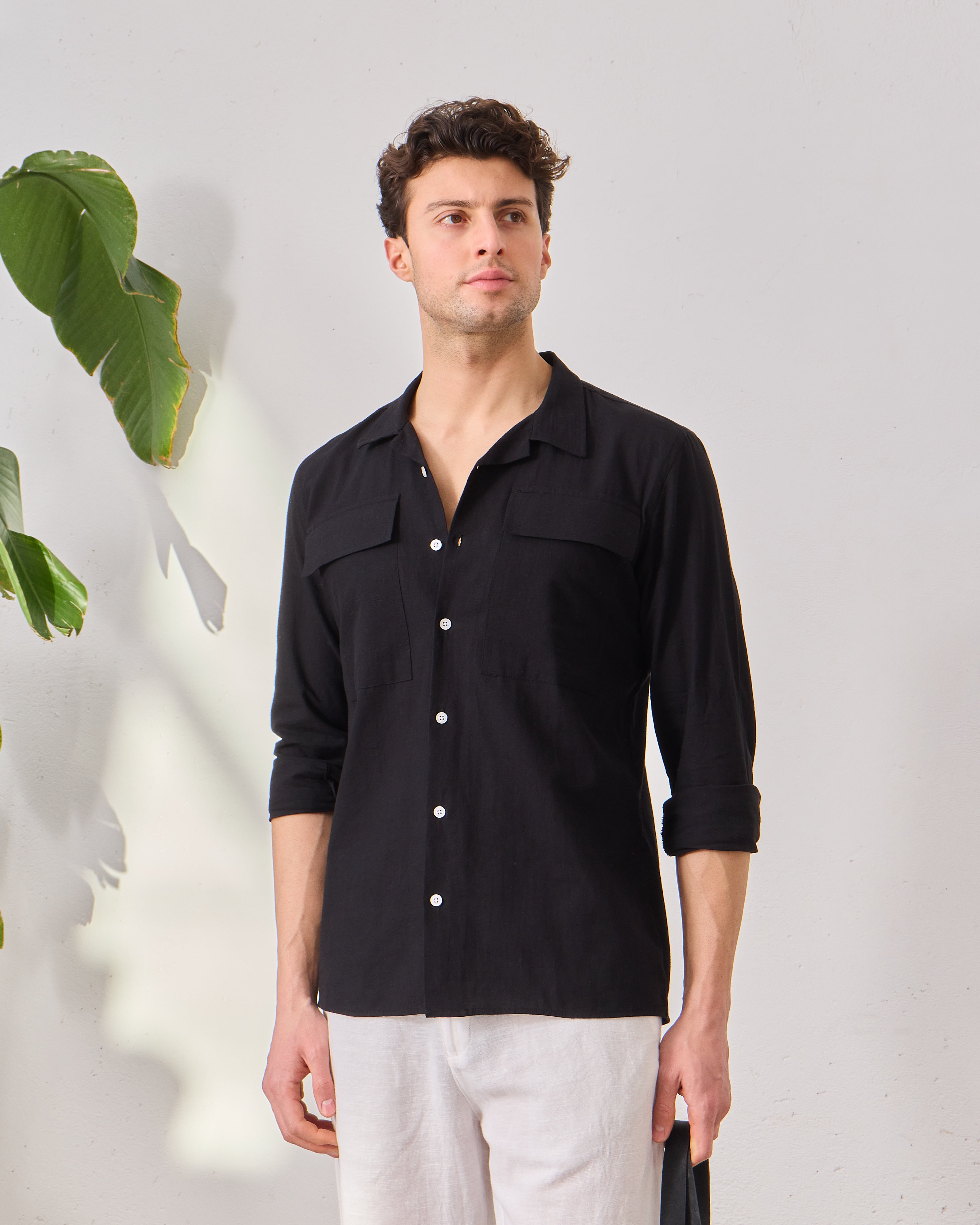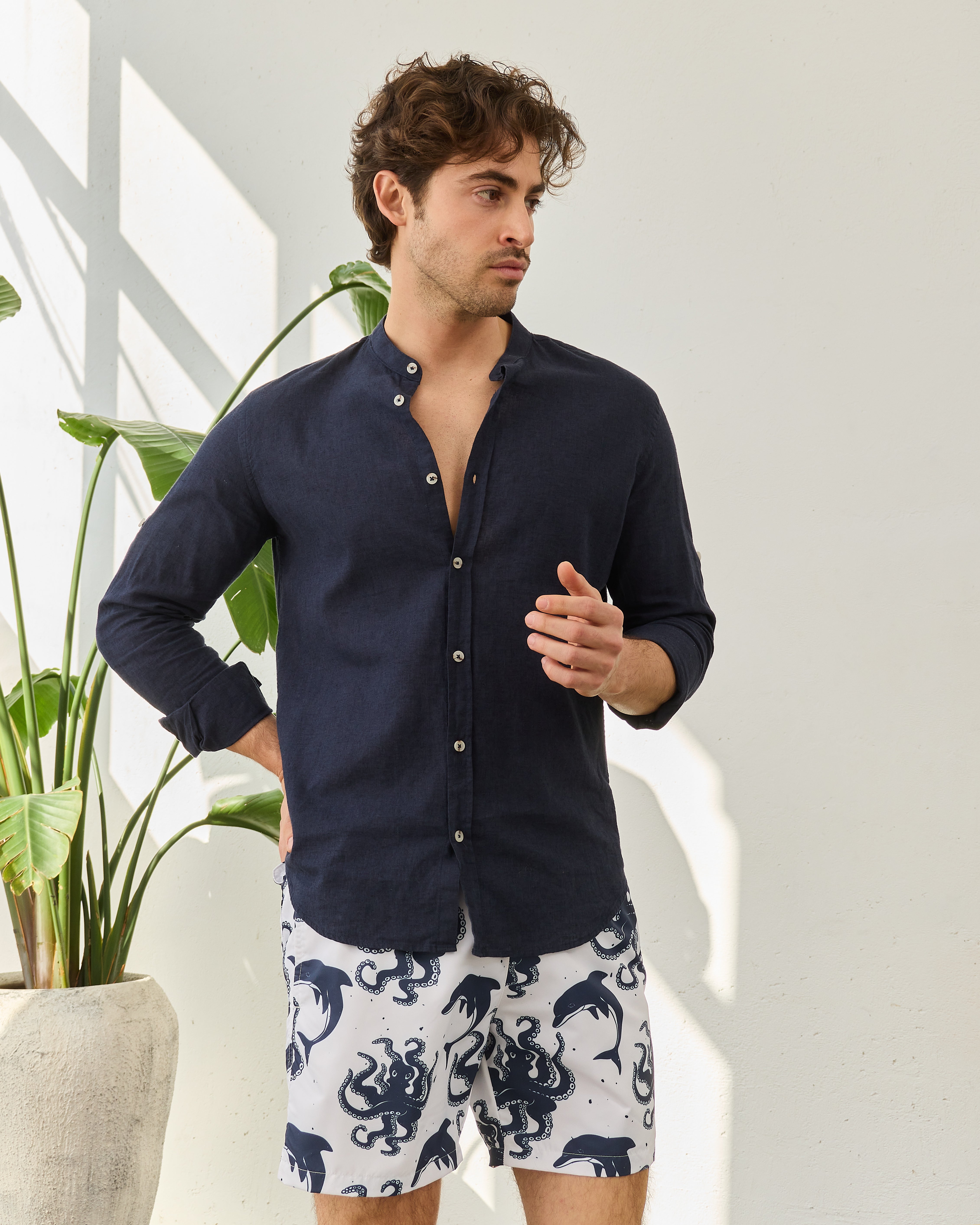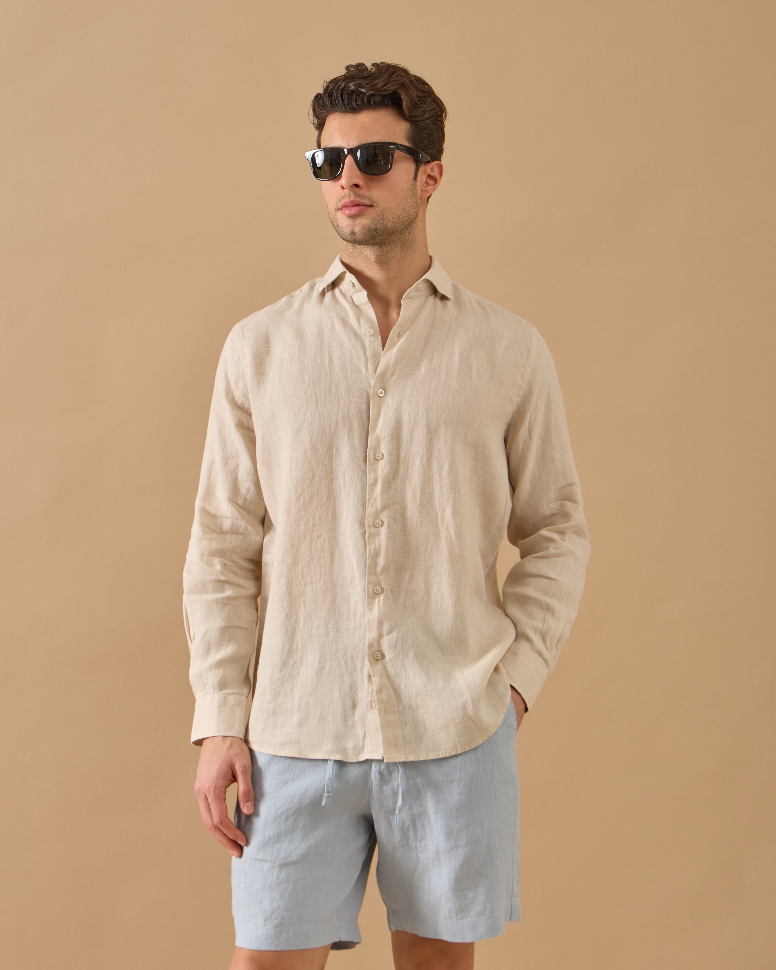 Cămașă Oversize cu Guler Cubanez – „Village Sketch” (alb-ivoire)