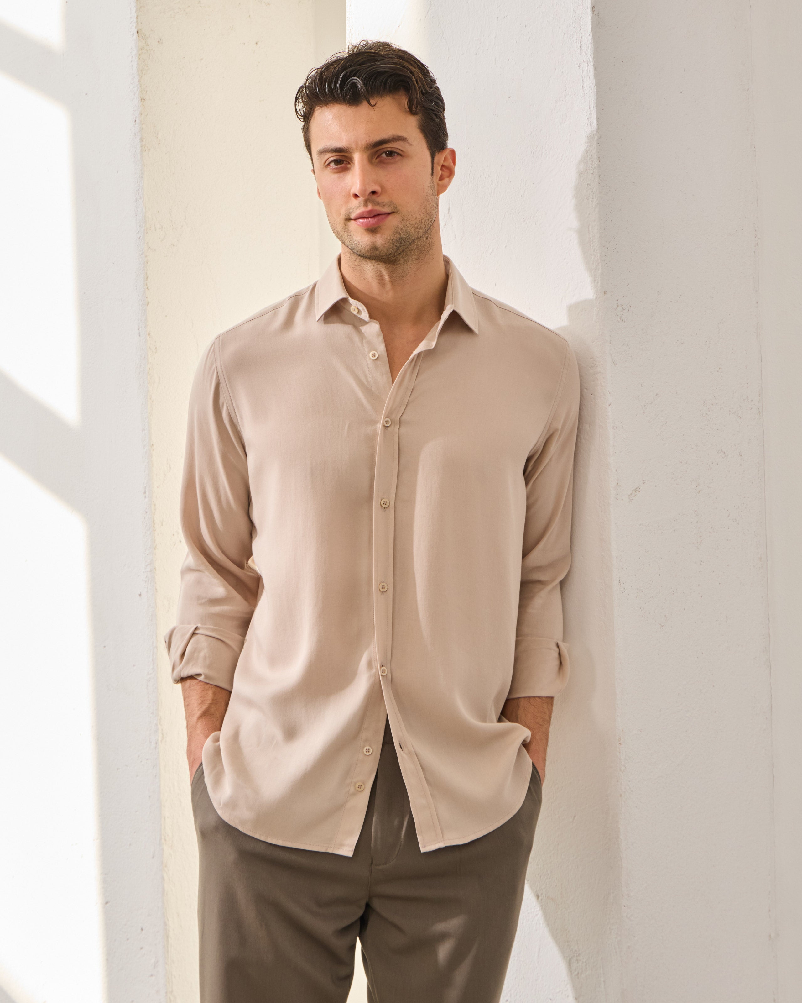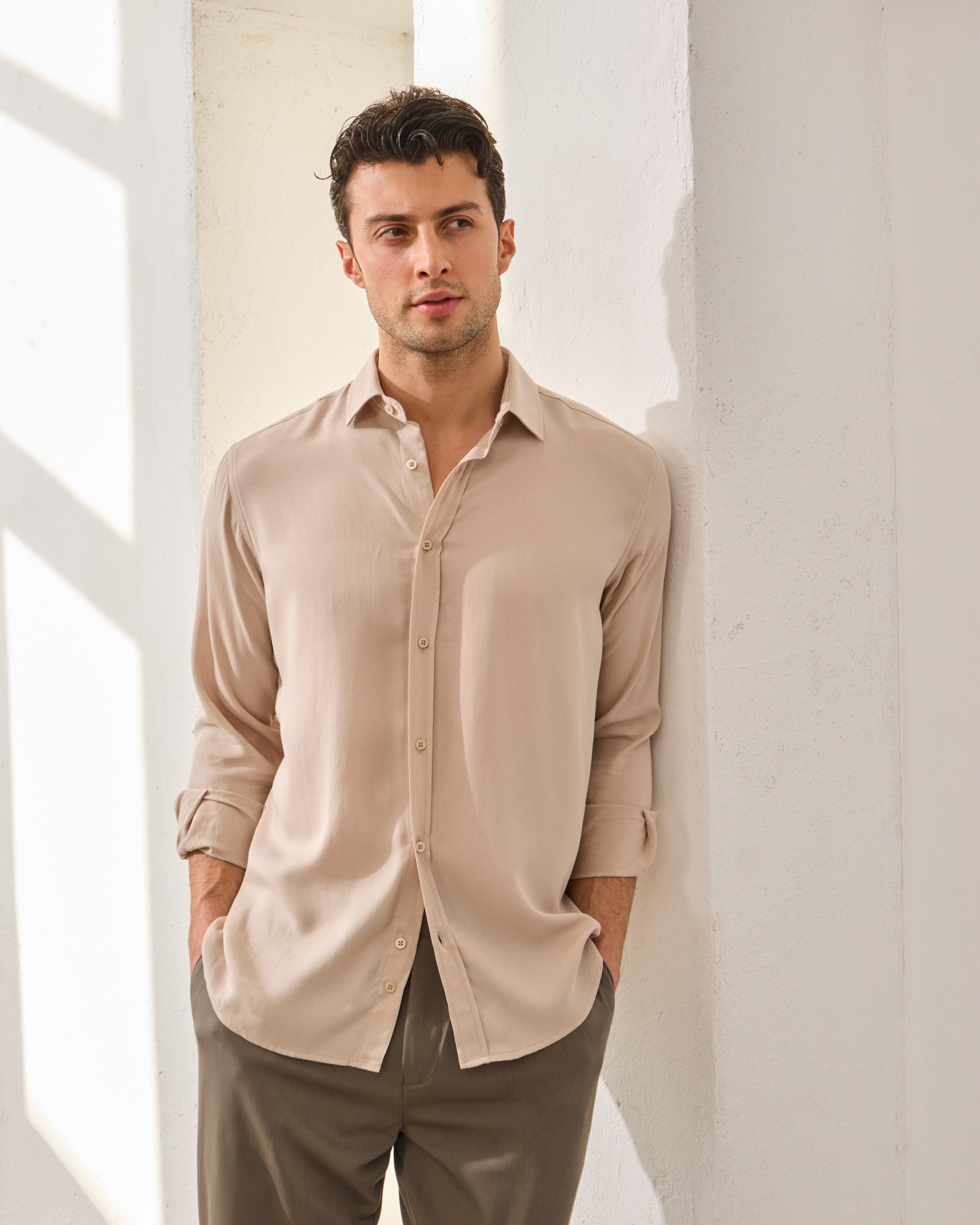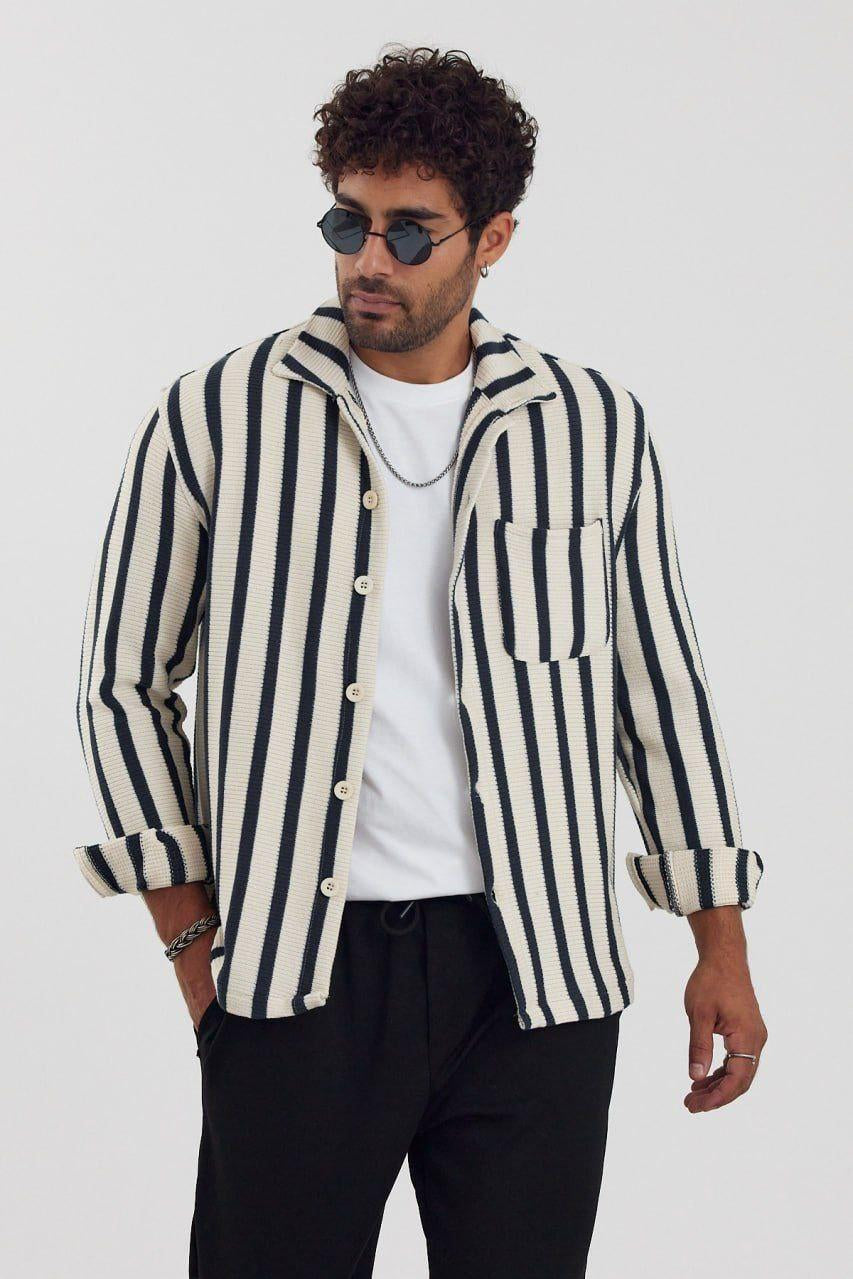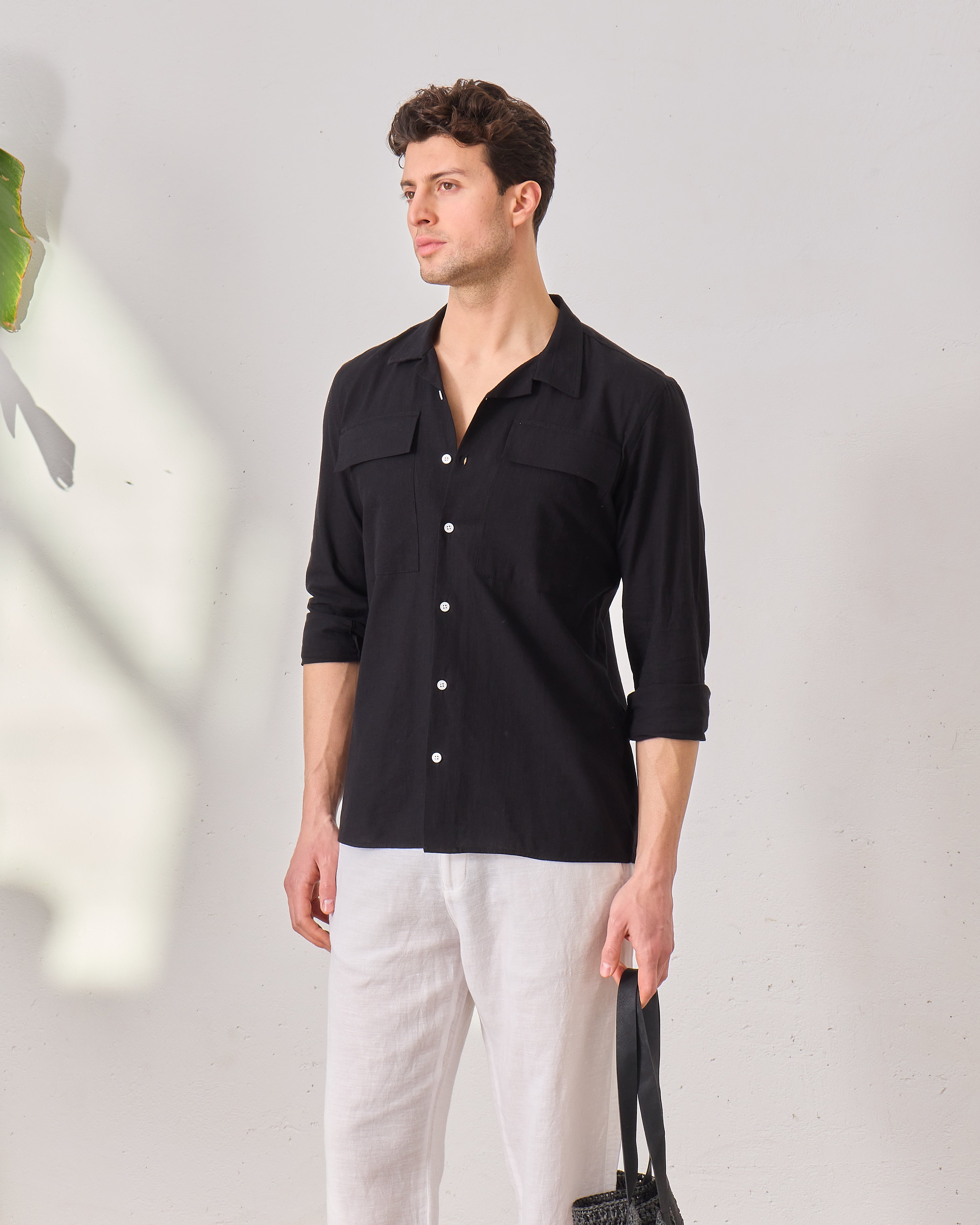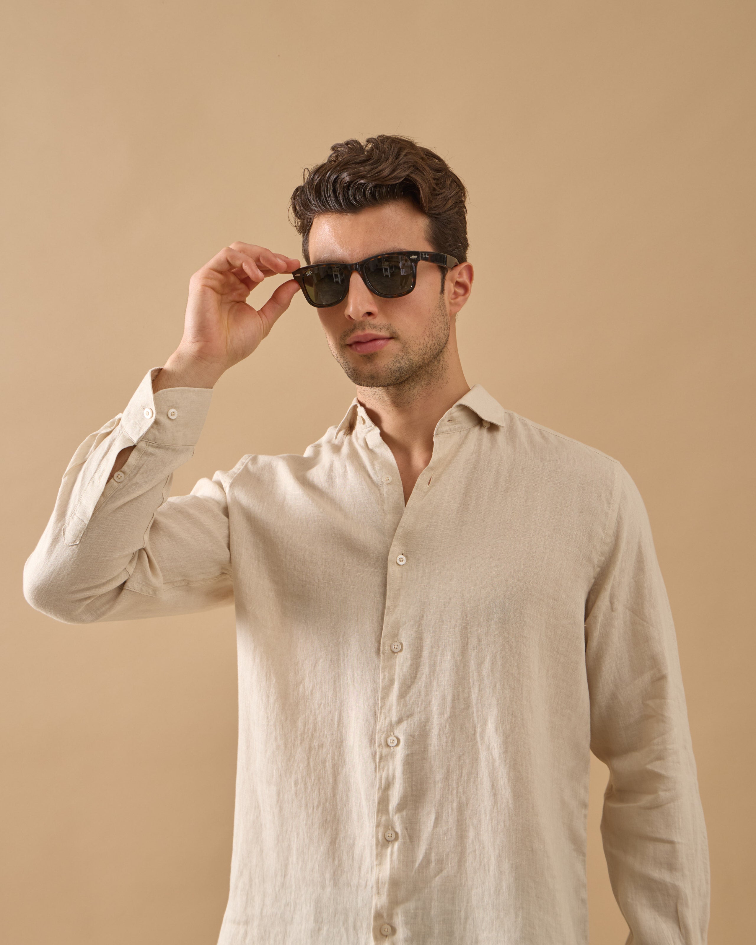 Cămașă Oversize cu Guler Cubanez – „Village Sketch” (alb-ivoire)