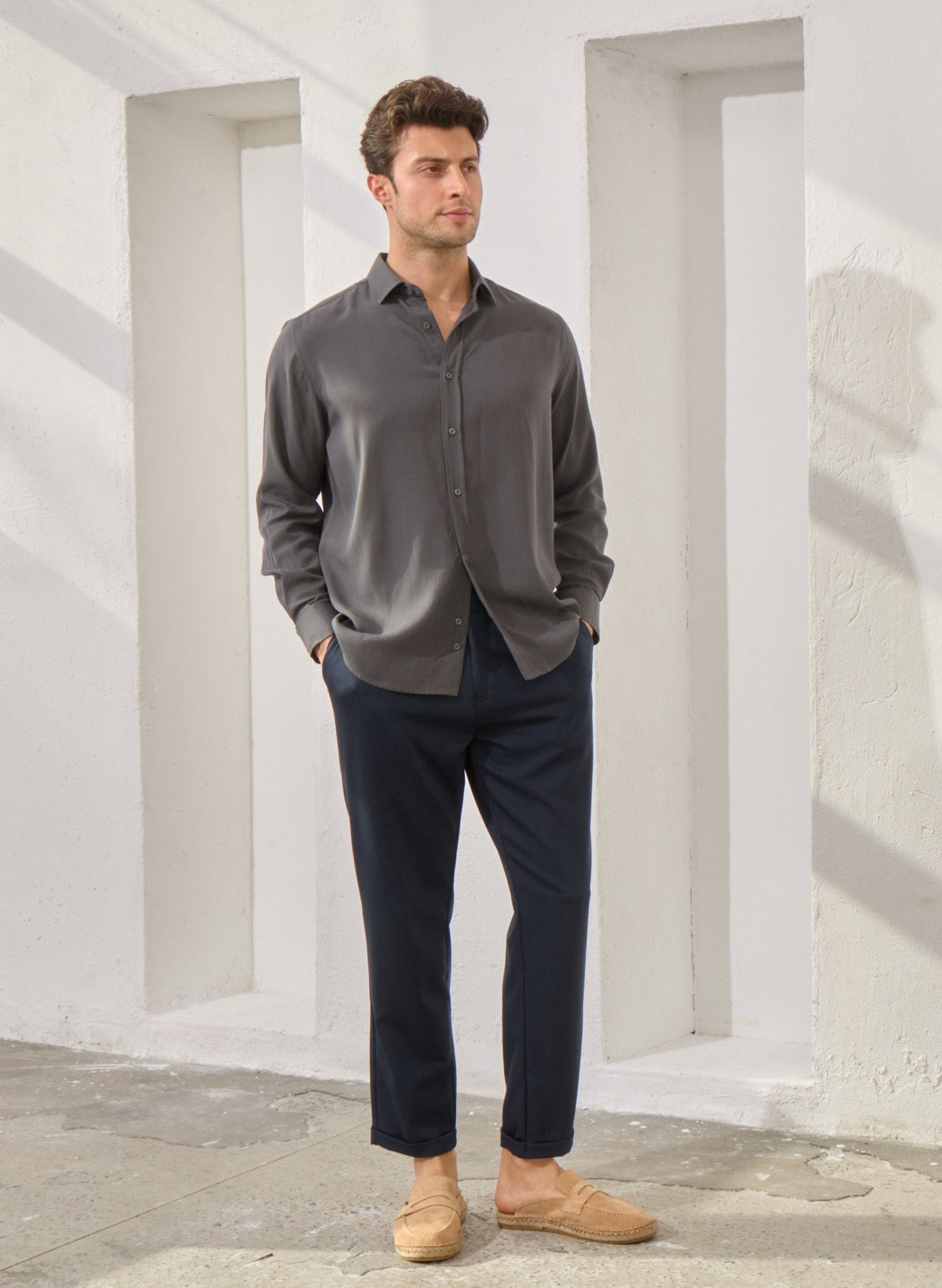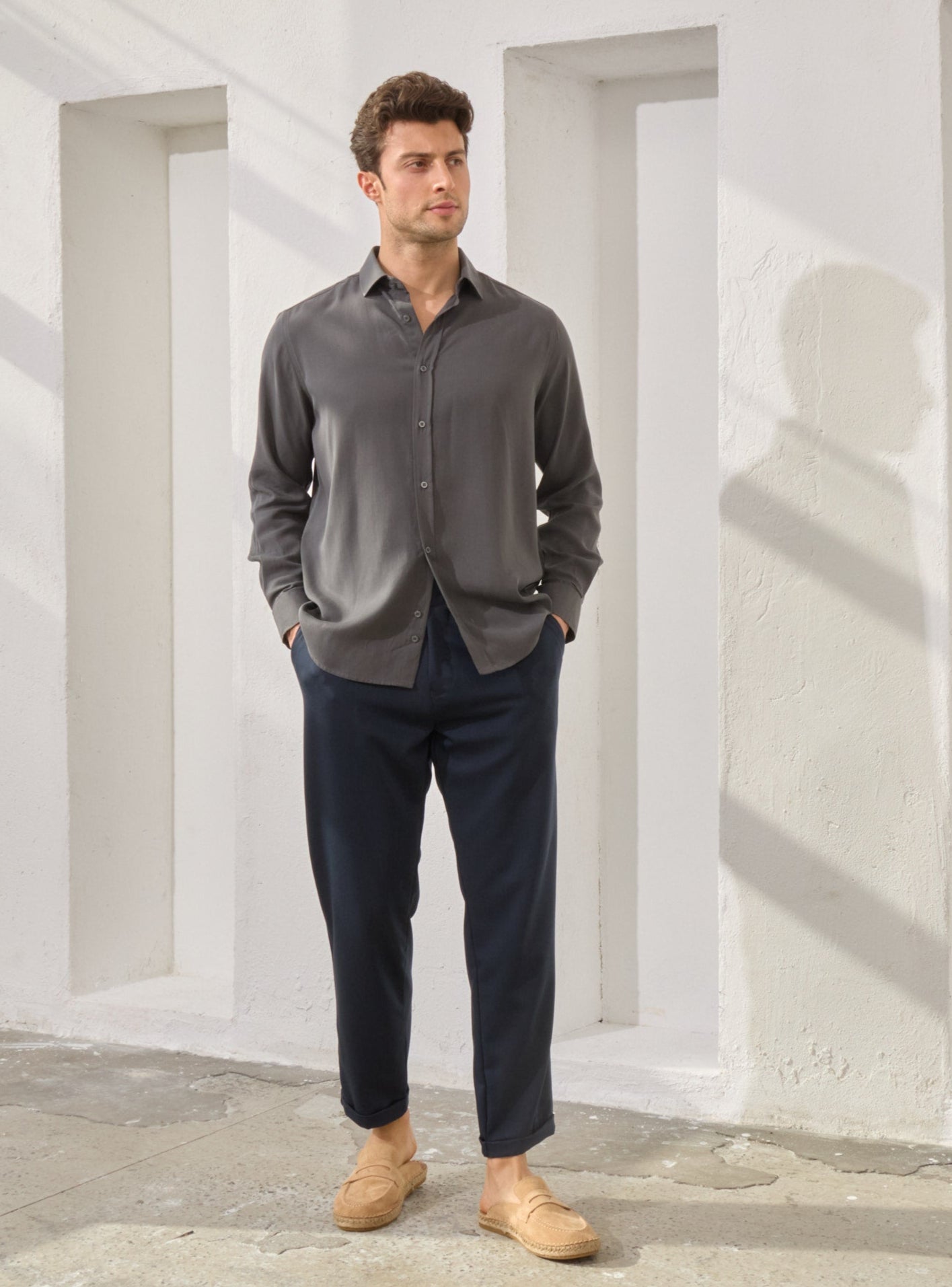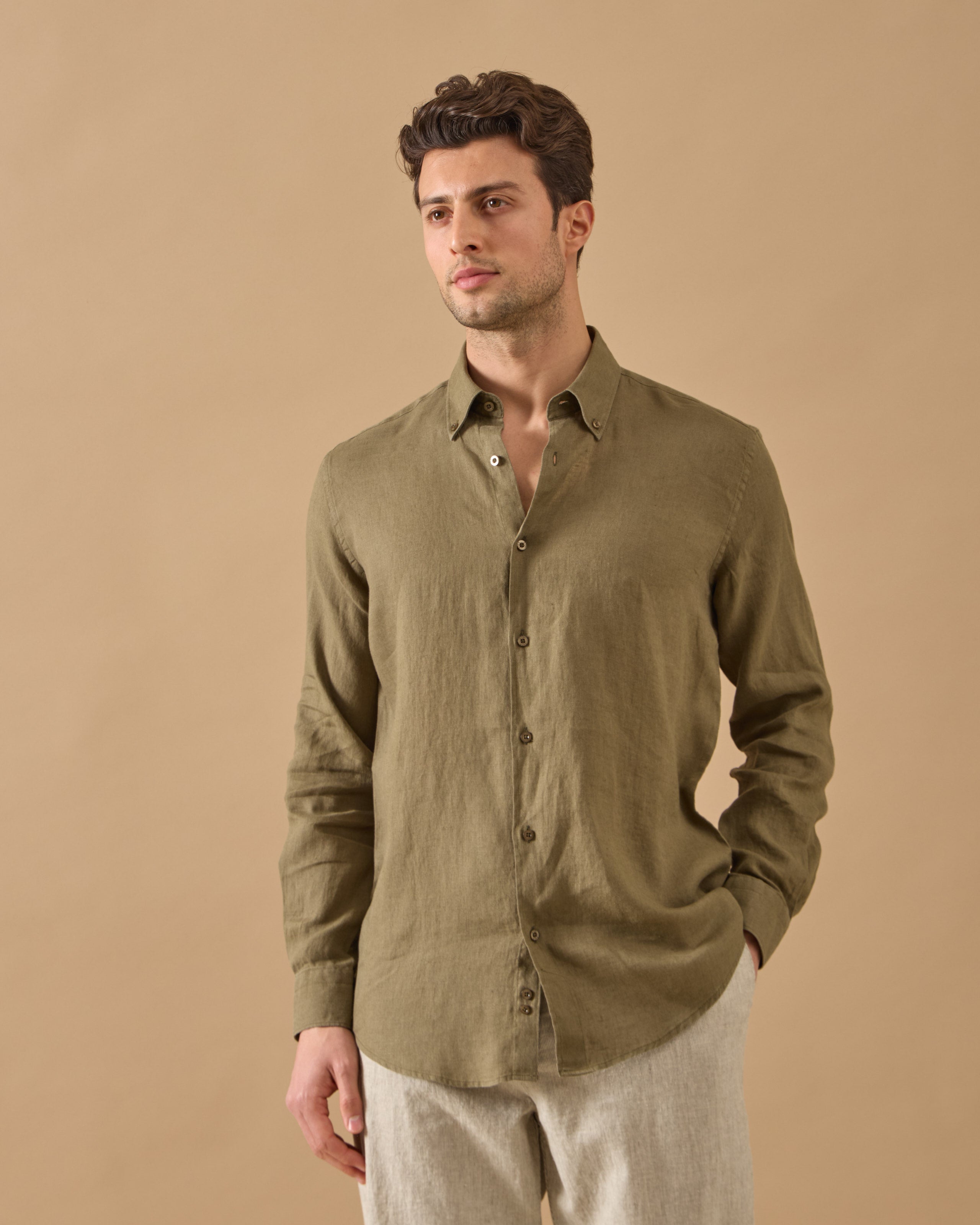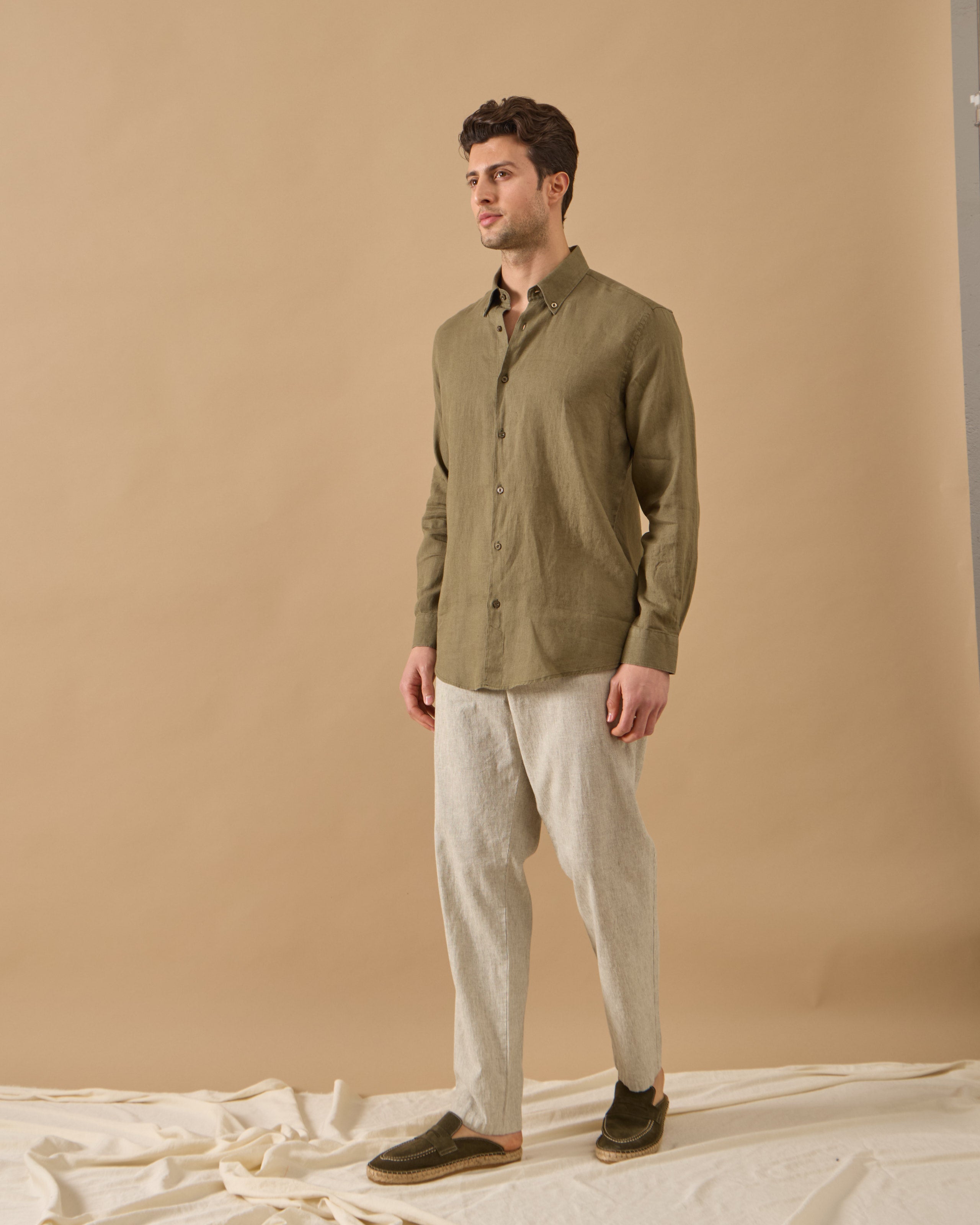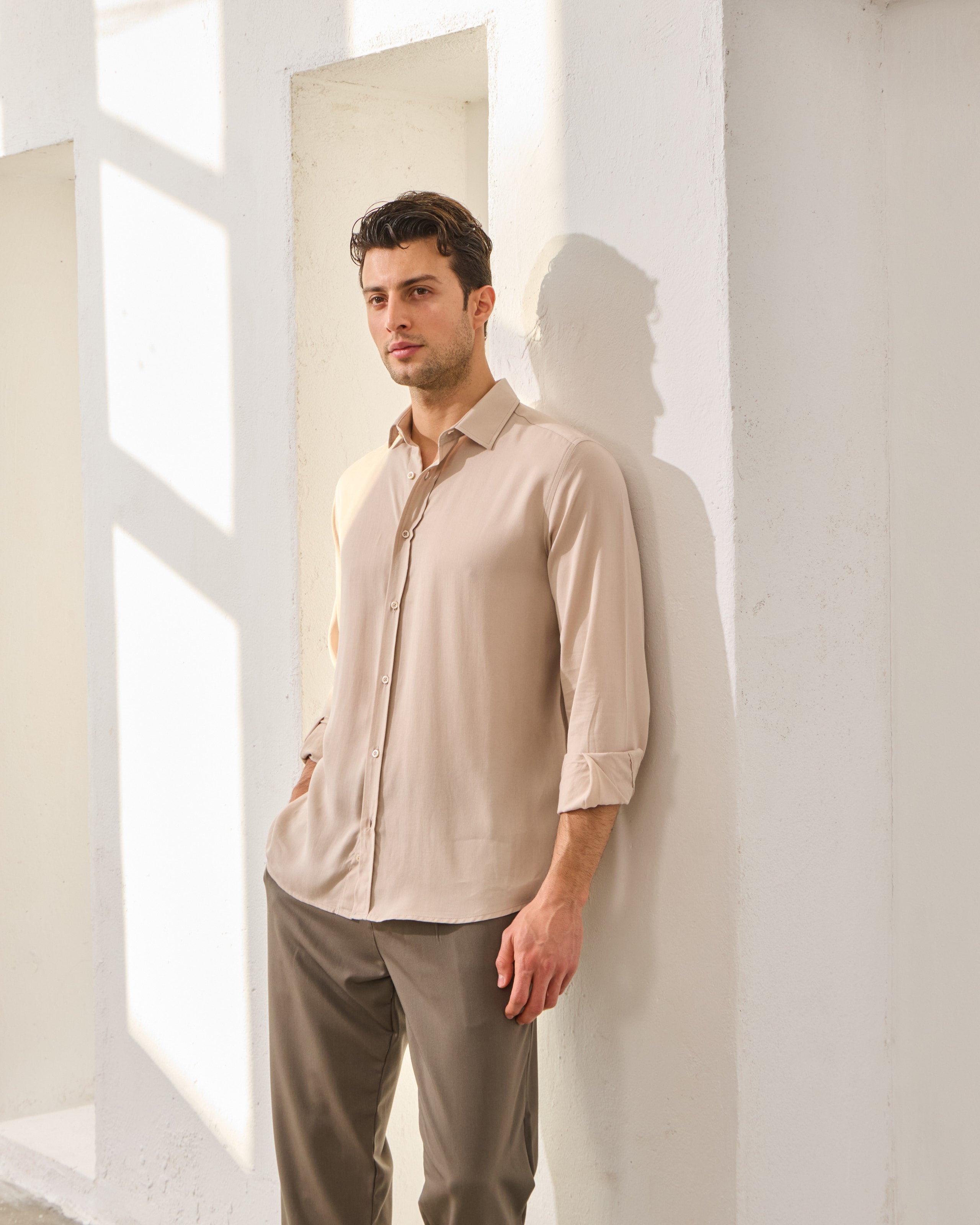 Cămașă Oversize cu Guler Cubanez – „Village Sketch” (alb-ivoire)