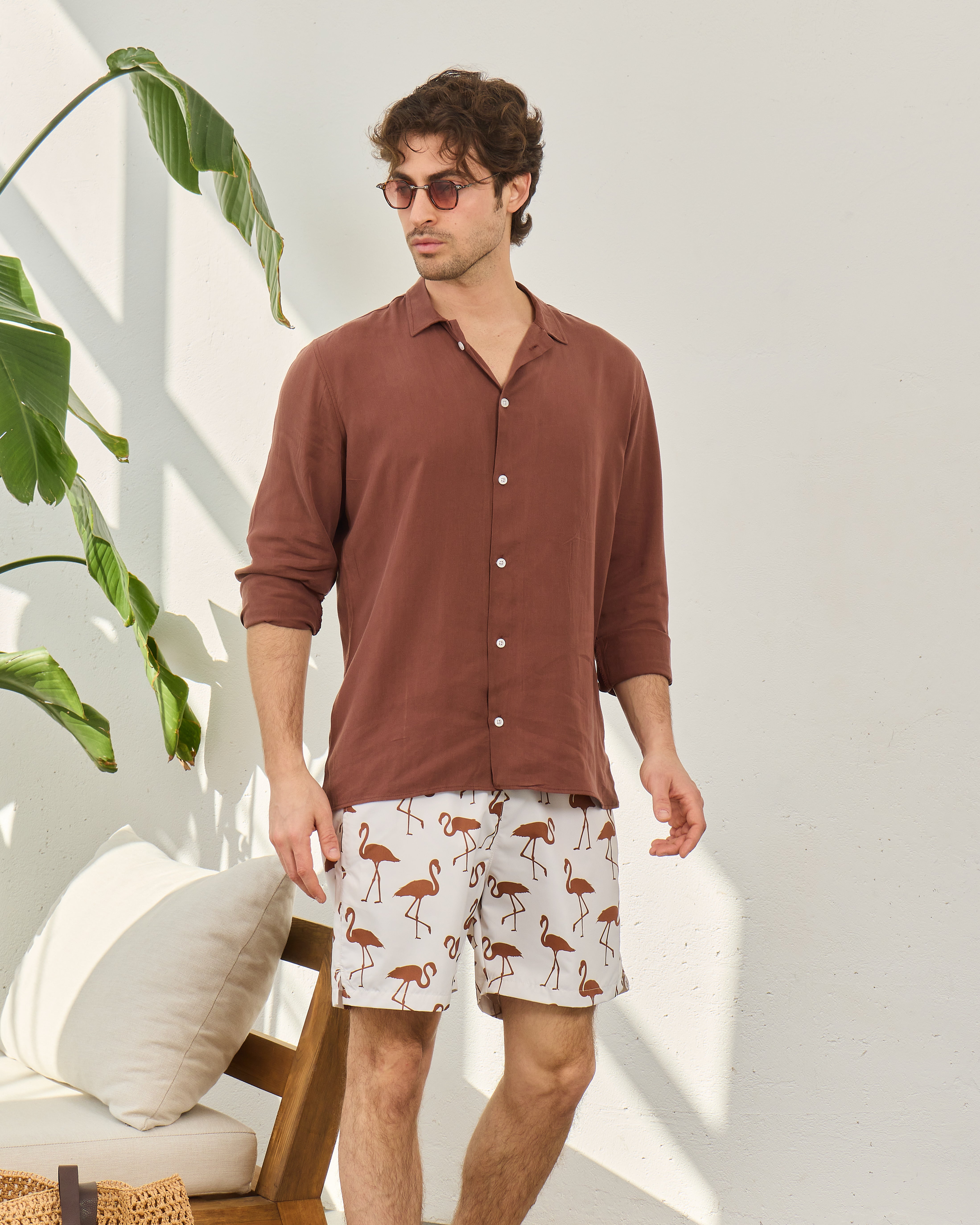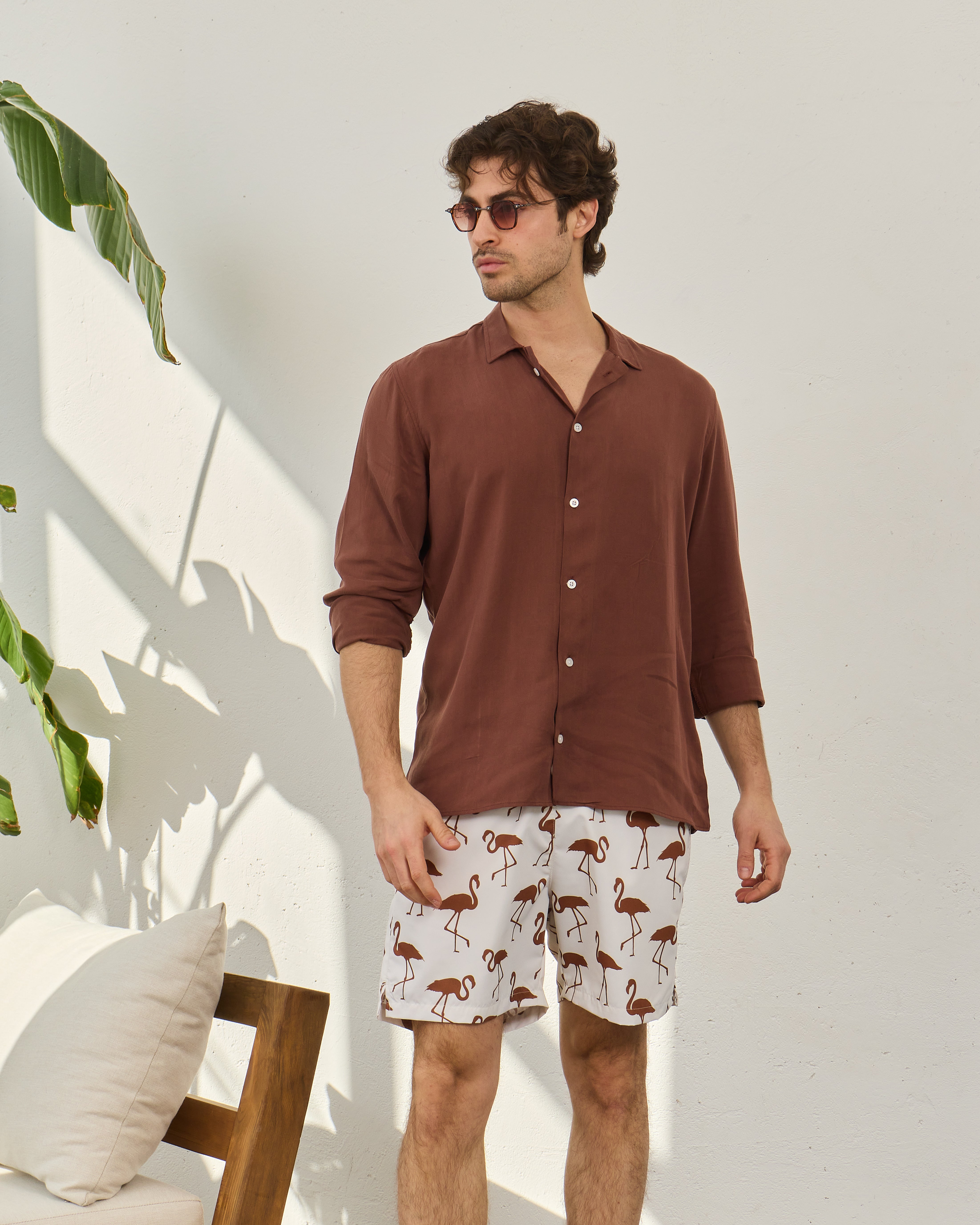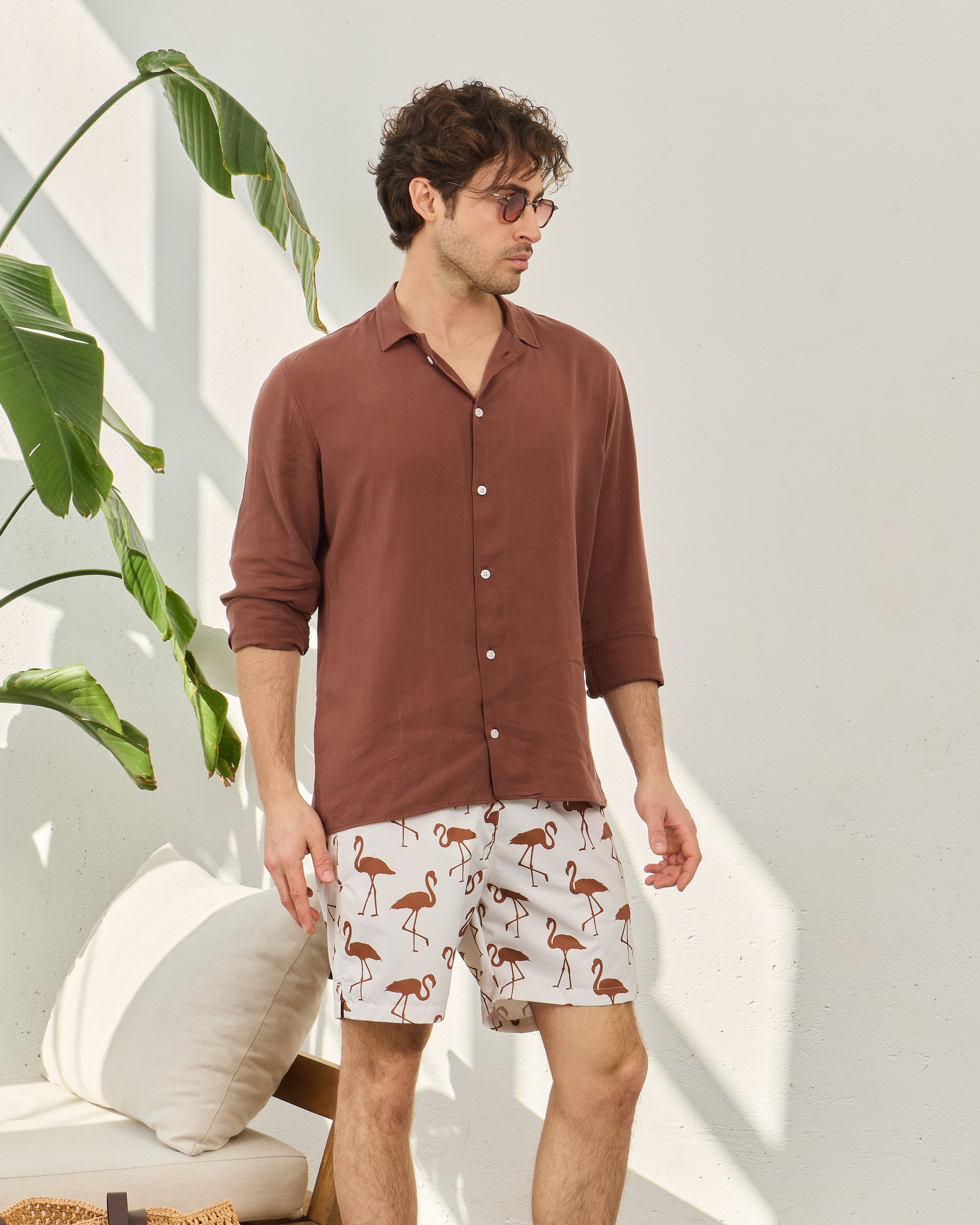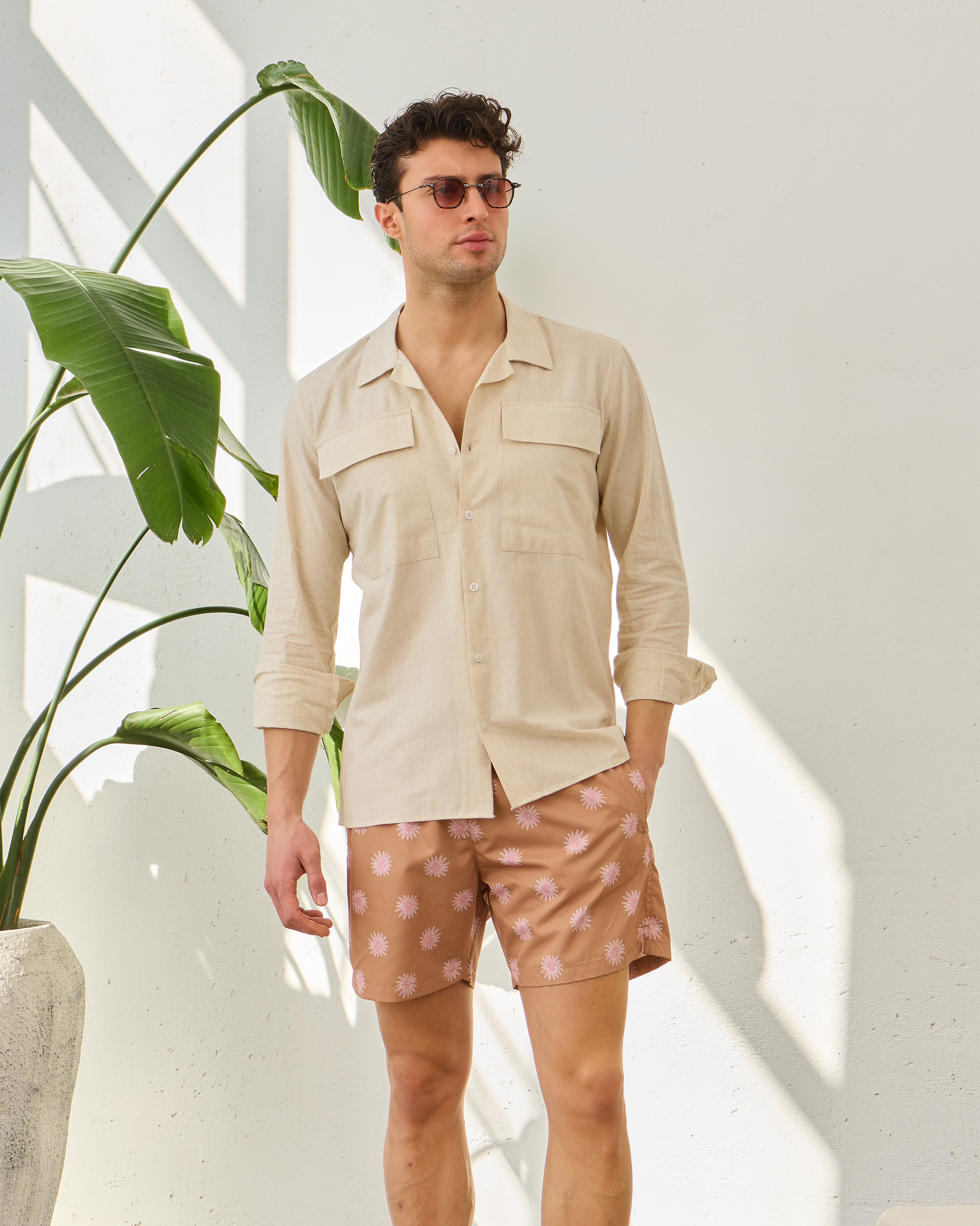 Cămașă Oversize cu Guler Cubanez și Imprimeu Mural Oriental