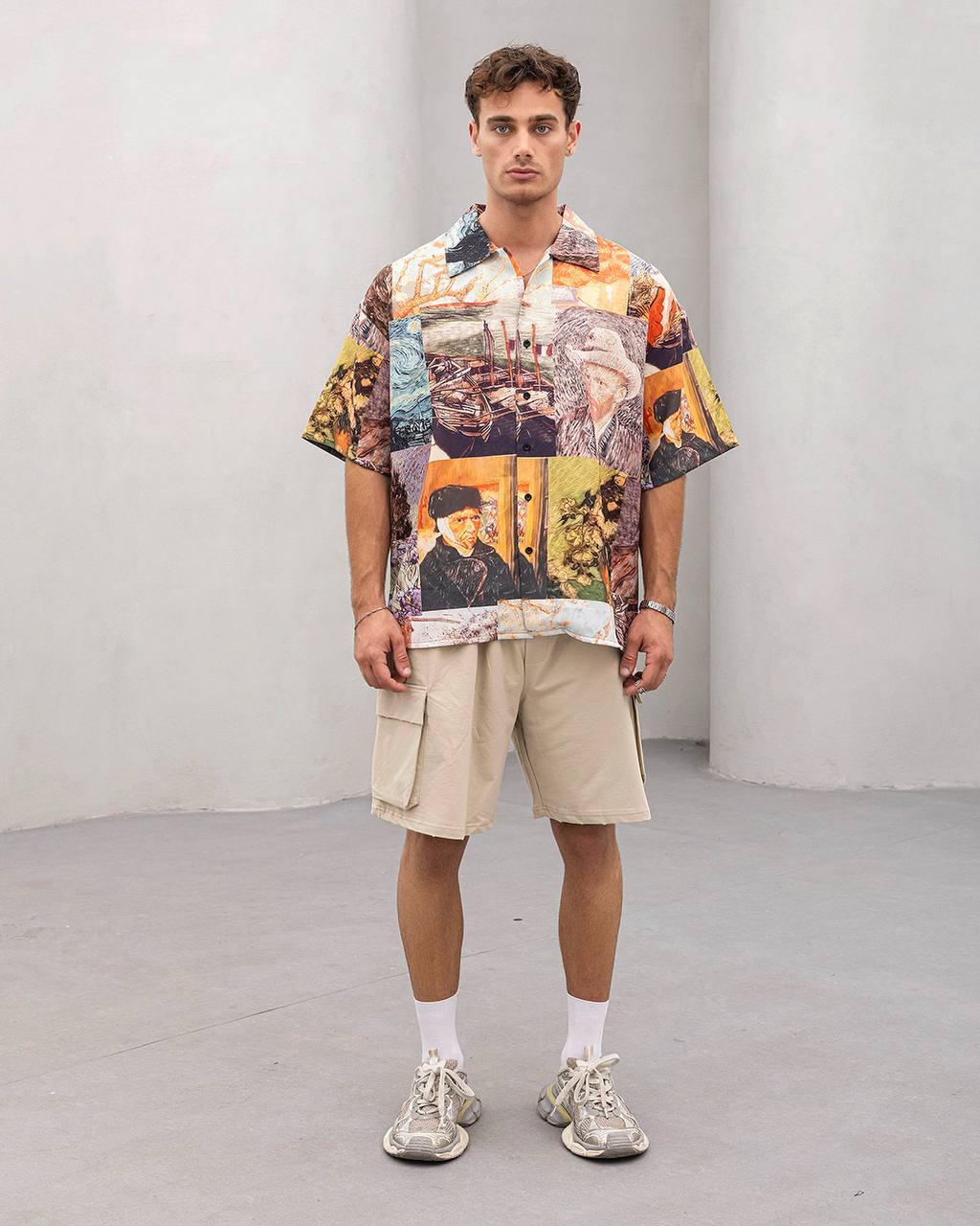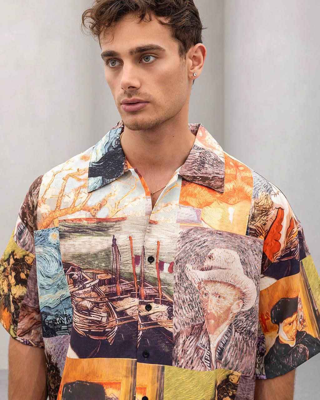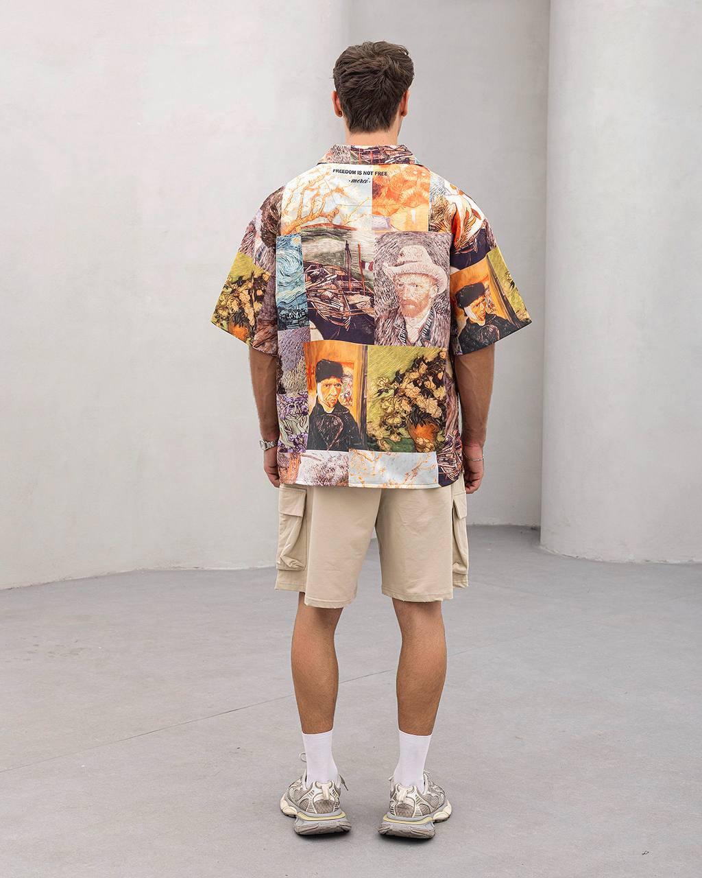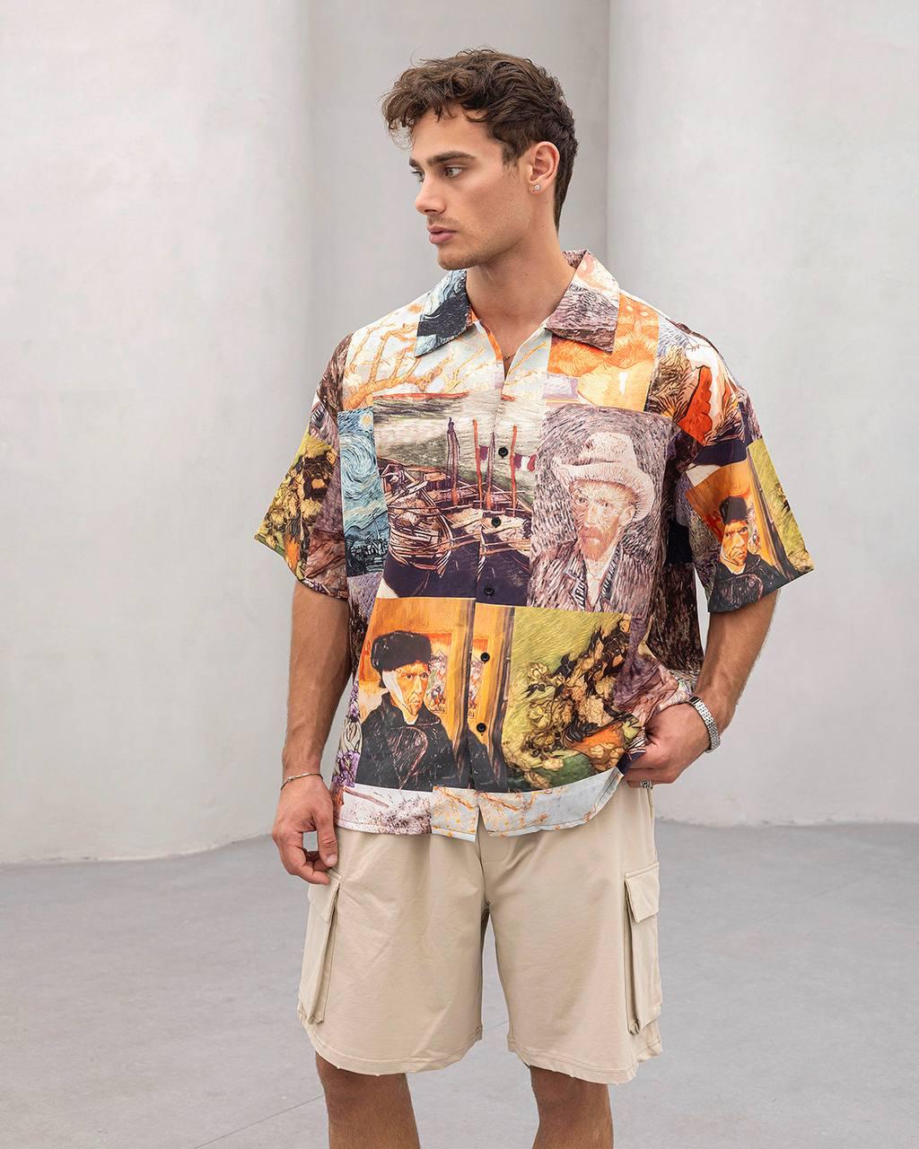 Cămașă Oversize cu Guler Cubanez și Imprimeu Van Gogh