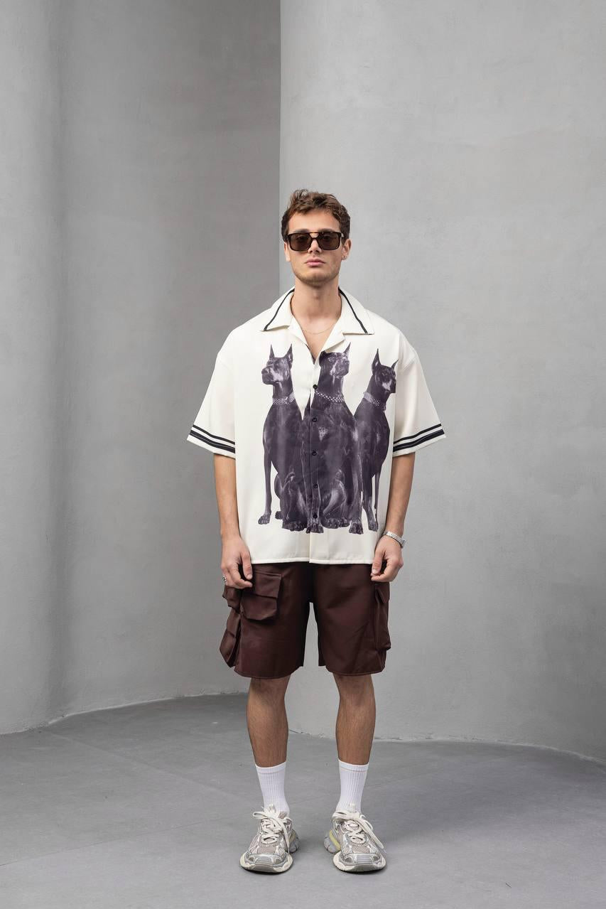 Cămașă Oversize cu Guler Cubanez și Imprimeu Doberman