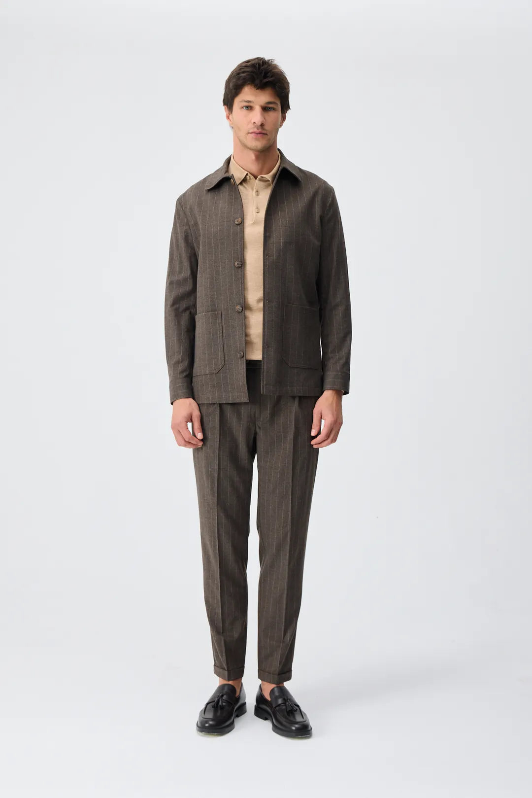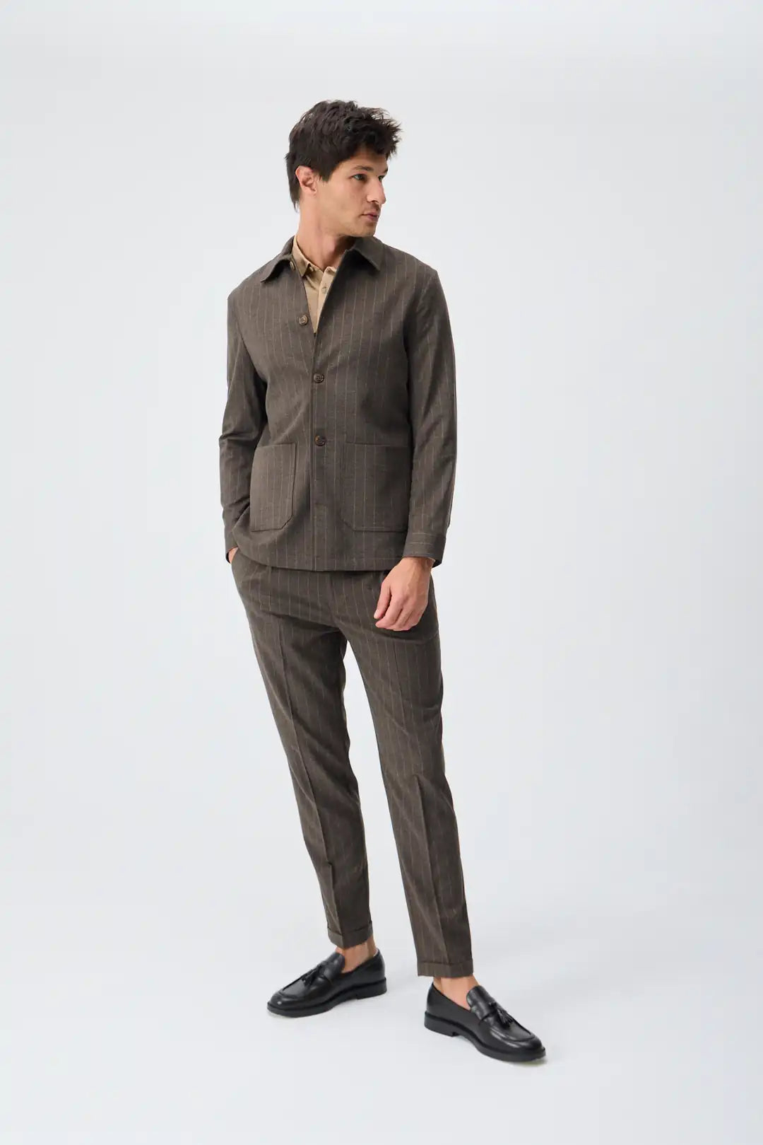 Jachetă pinstripe din lână – maro cafeniu