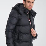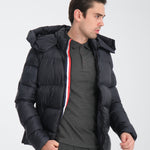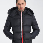 Geacă modernă, practică și călduroasă, ideală pentru sezonul rece. Realizată din material matlasat rezistent, cu umplutură pufoasă, oferă confort termic sporit și protecție împotriva vântului și temperaturilor scăzute. Modelul dispune de glugă voluminoasă detașabilă, buzunare laterale practice și închidere frontală cu fermoar. Detaliul tricolor aplicat pe fermoar adaugă o notă sport-casual distinctă.