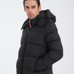 Geacă Matlasată Neagră cu Glugă Detașabilă