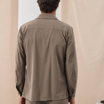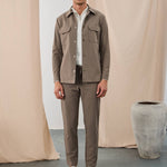 Lejeră și modernă, această jachetă tip overshirt (shacket) în nuanță taupe/grej completează impecabil ținutele smart-casual. Țesătura tehnică, cu elasticitate, cade frumos și se șifonează greu.