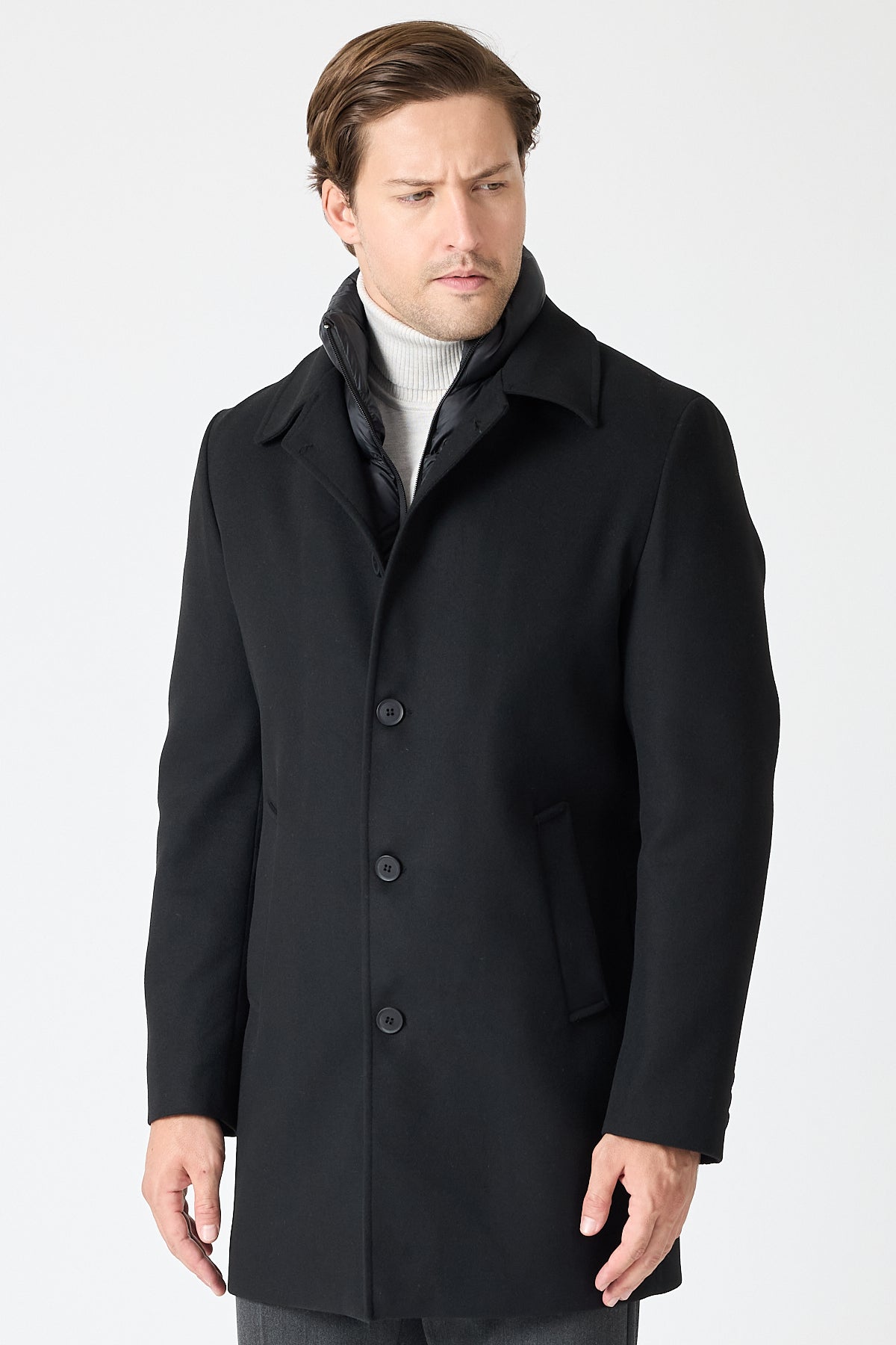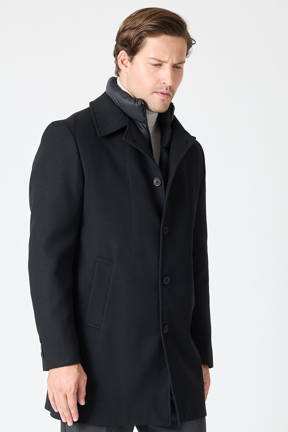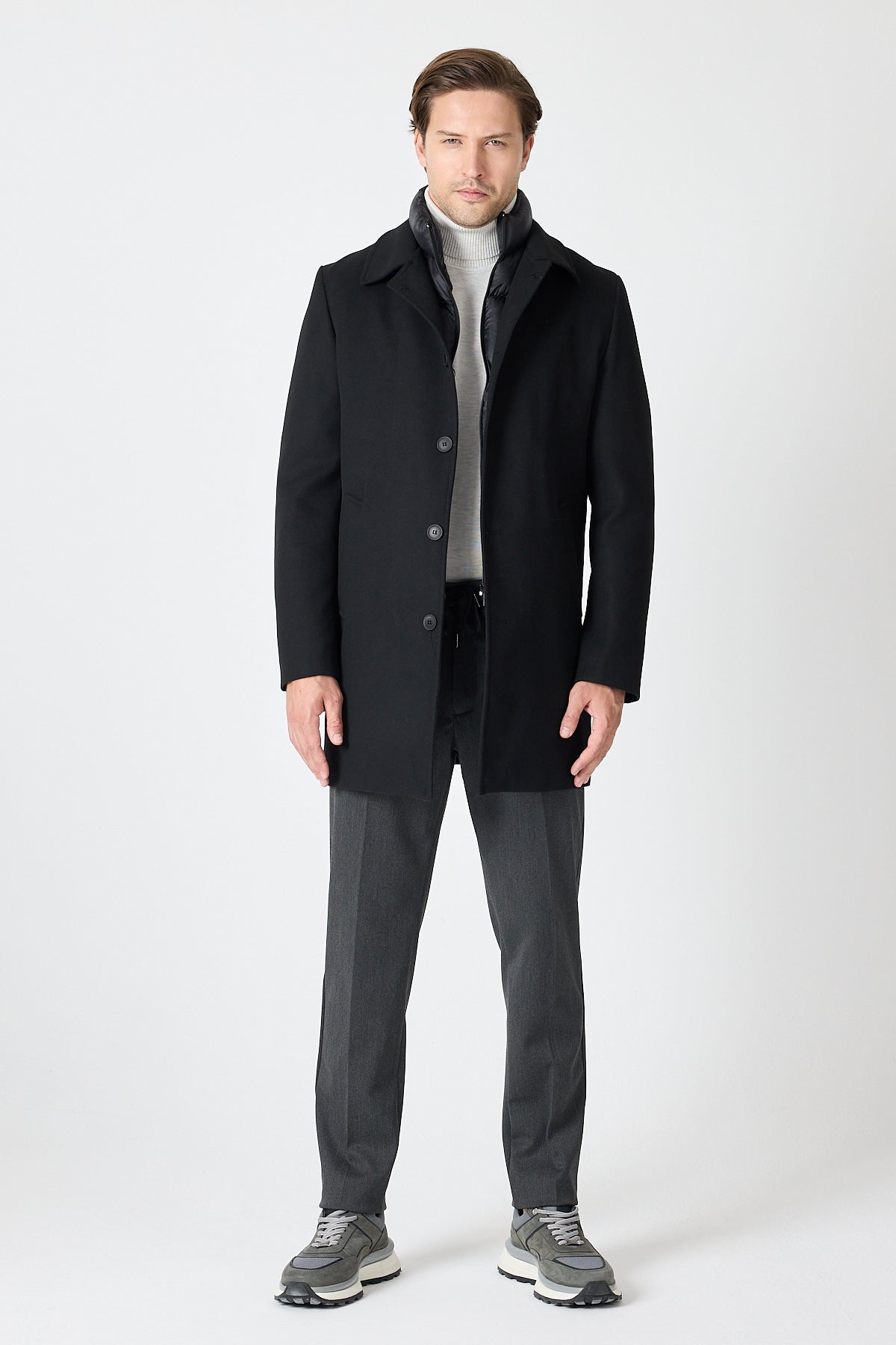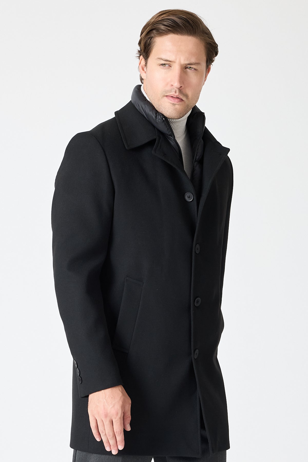 Acest palton negru elegant este o piesă clasică reinterpretată într-o cheie modernă, perfectă pentru sezonul rece. Croiala dreaptă și gulerul clasic oferă un aspect sofisticat, în timp ce închiderea cu nasturi adaugă un aer atemporal. Interiorul este prevăzut cu un insert matlasat cu fermoar, care aduce un plus de confort termic și versatilitate, fiind ideal atât pentru zilele reci de toamnă, cât și pentru iarnă.