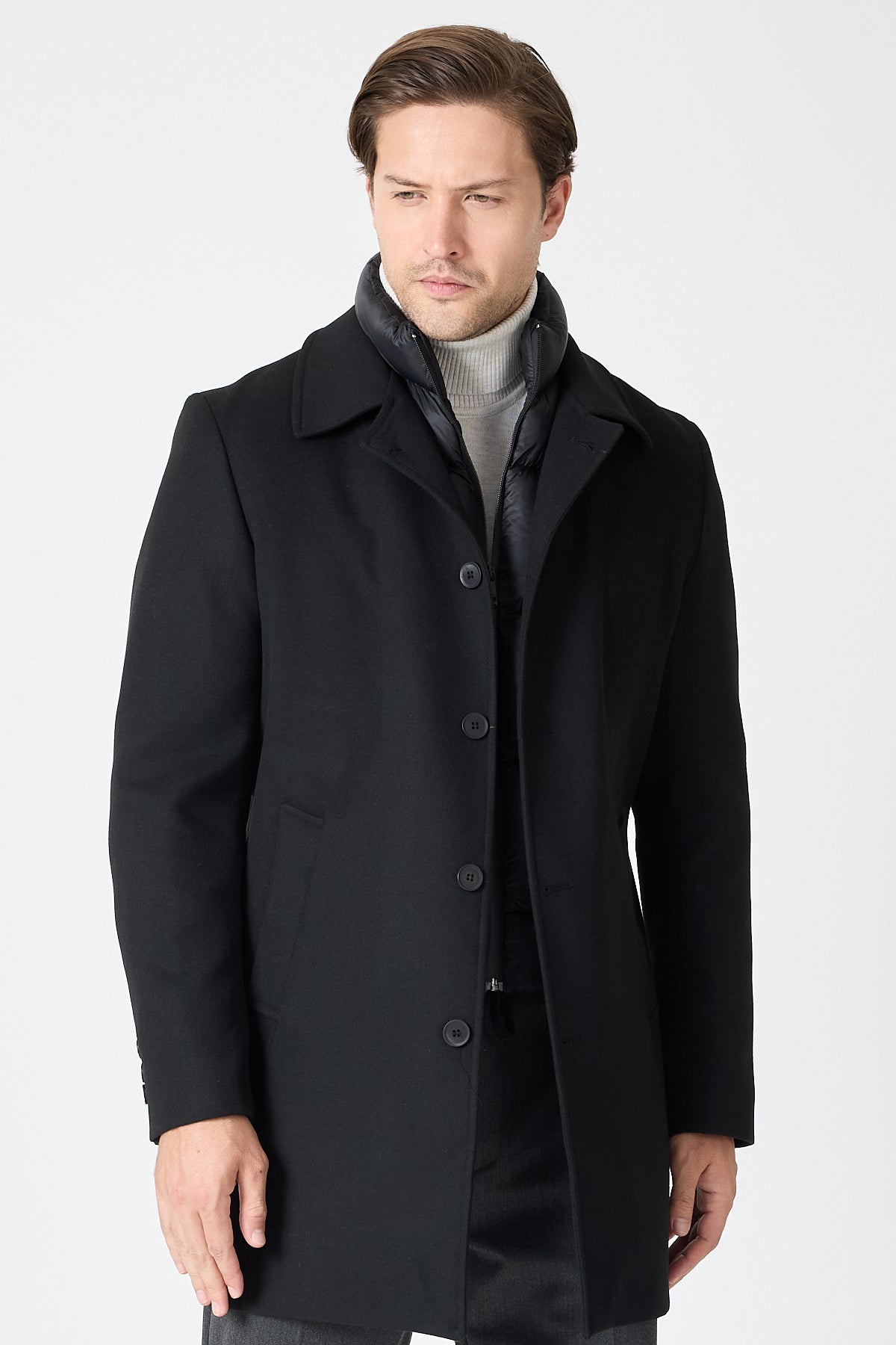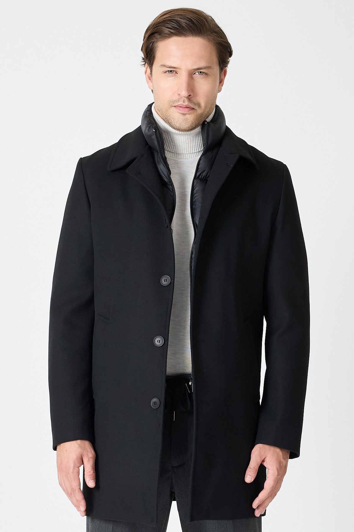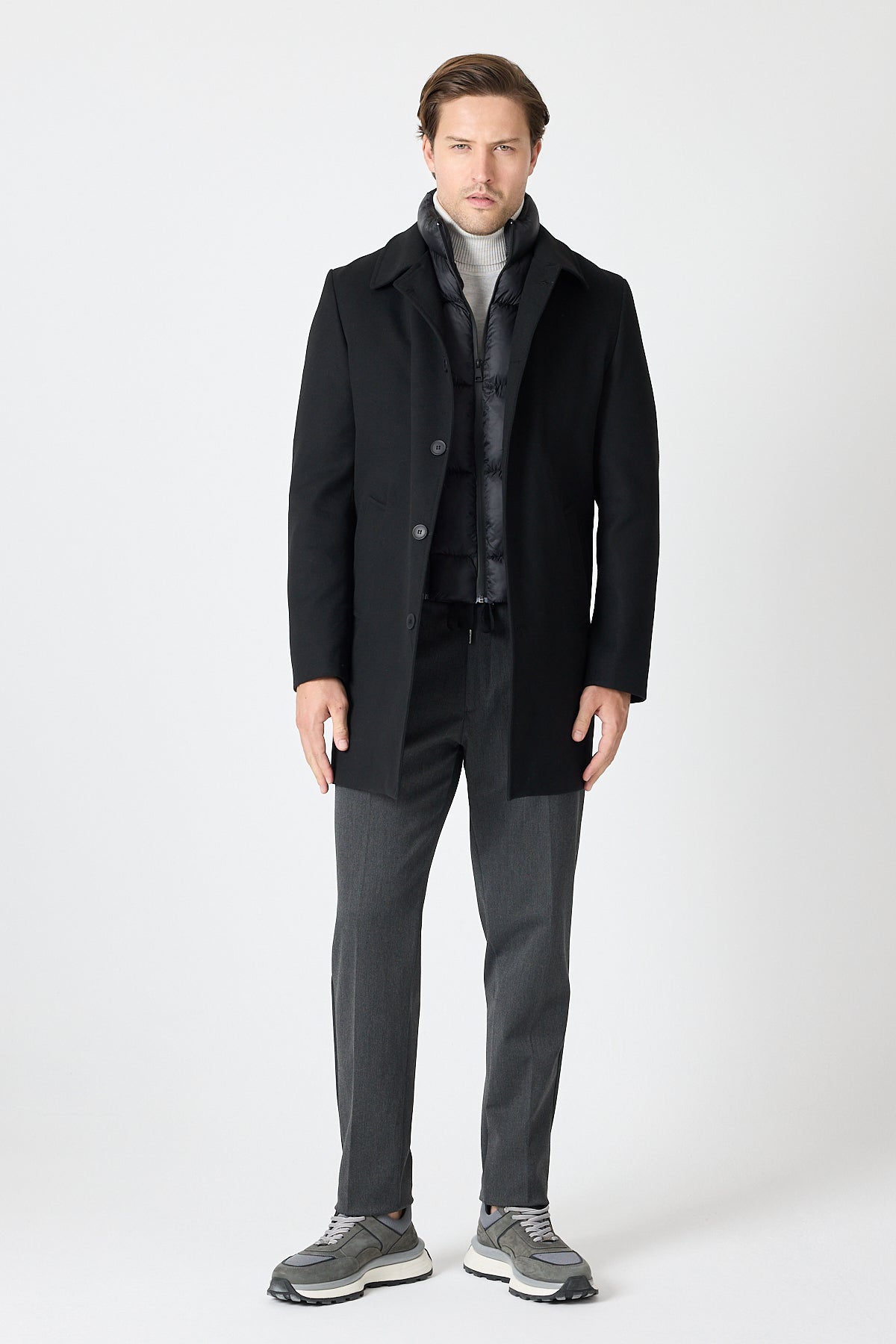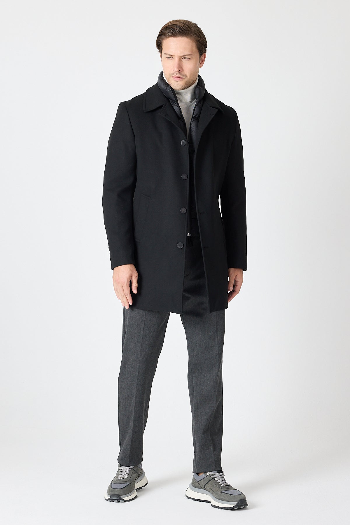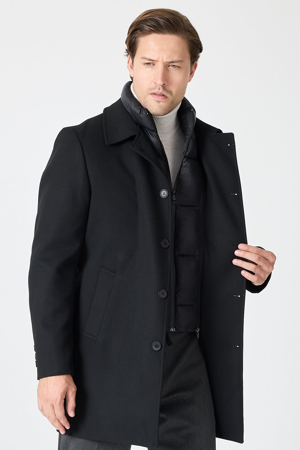 Acest palton negru elegant este o piesă clasică reinterpretată într-o cheie modernă, perfectă pentru sezonul rece. Croiala dreaptă și gulerul clasic oferă un aspect sofisticat, în timp ce închiderea cu nasturi adaugă un aer atemporal. Interiorul este prevăzut cu un insert matlasat cu fermoar, care aduce un plus de confort termic și versatilitate, fiind ideal atât pentru zilele reci de toamnă, cât și pentru iarnă.