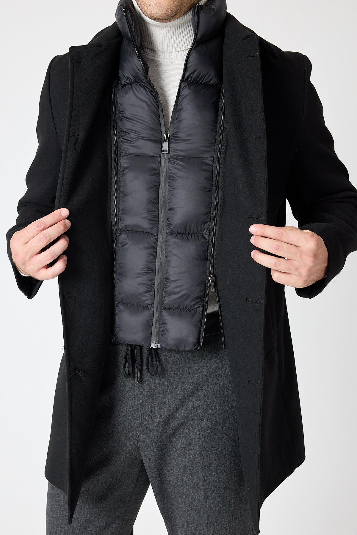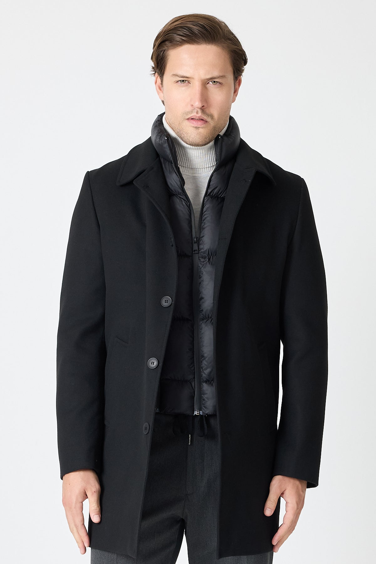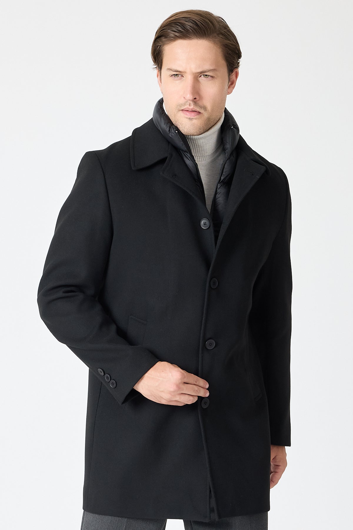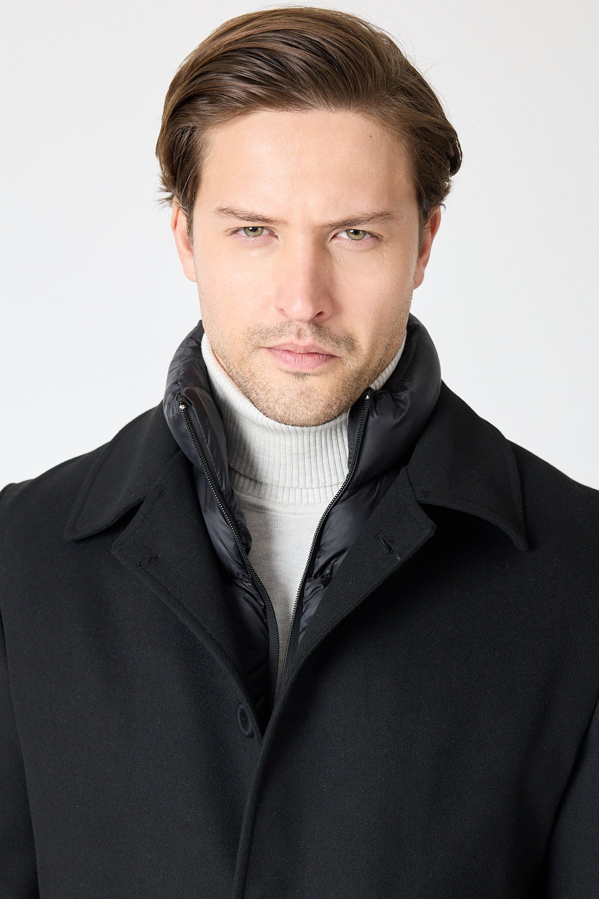 Acest palton negru elegant este o piesă clasică reinterpretată într-o cheie modernă, perfectă pentru sezonul rece. Croiala dreaptă și gulerul clasic oferă un aspect sofisticat, în timp ce închiderea cu nasturi adaugă un aer atemporal. Interiorul este prevăzut cu un insert matlasat cu fermoar, care aduce un plus de confort termic și versatilitate, fiind ideal atât pentru zilele reci de toamnă, cât și pentru iarnă.