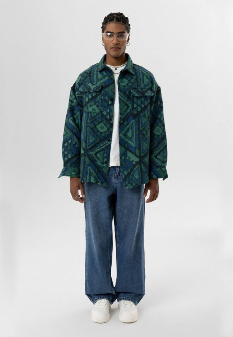Cămașă tip Shacket Overshirt Albastu cu Verde E70-032