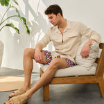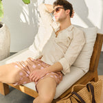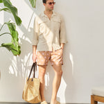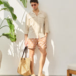 - Cămașă lejeră din in, cu buzunare discrete și design inspirat din stilul safari.