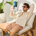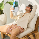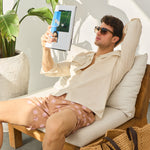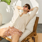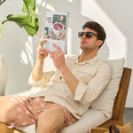- Croială relaxată, cu guler deschis și mâneci ușor de rulat.