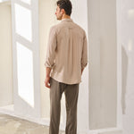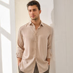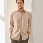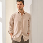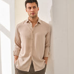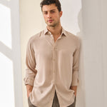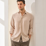 - Cămașă lejeră din viscoză moale, cu textură fină și cădere fluidă.