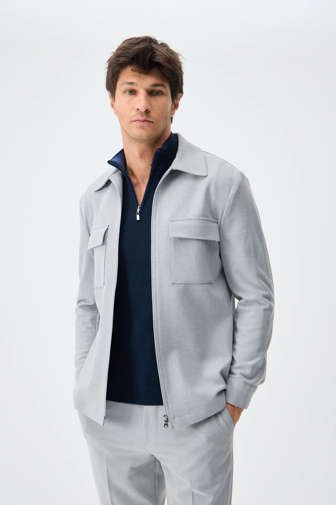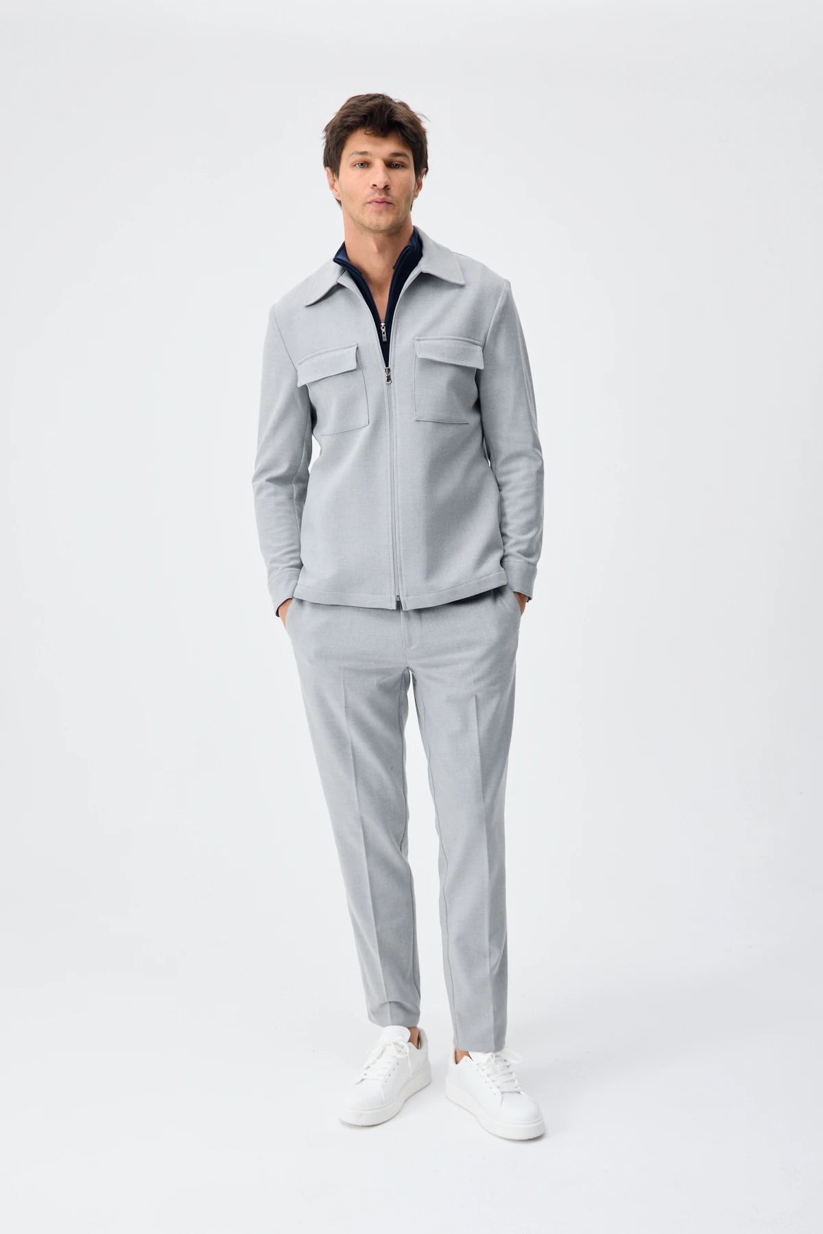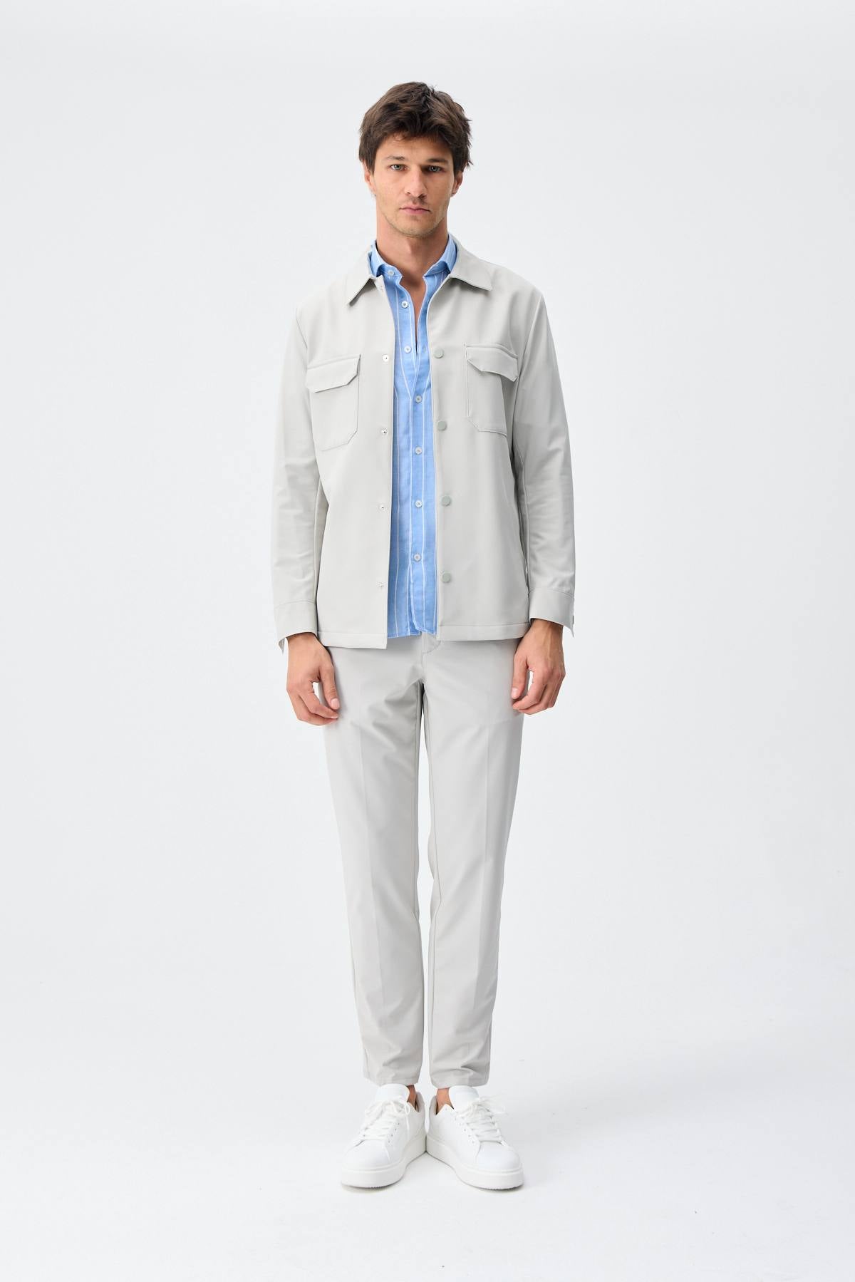 Set Jachetă cu două buzunare și pantaloni - Light Grey