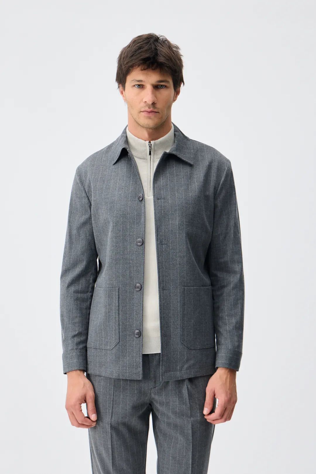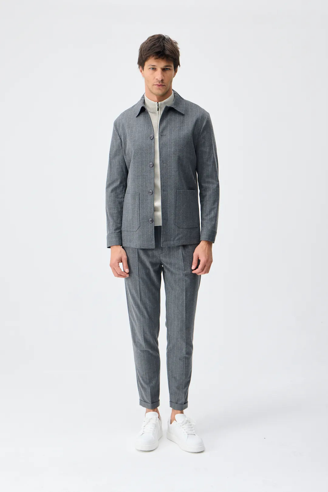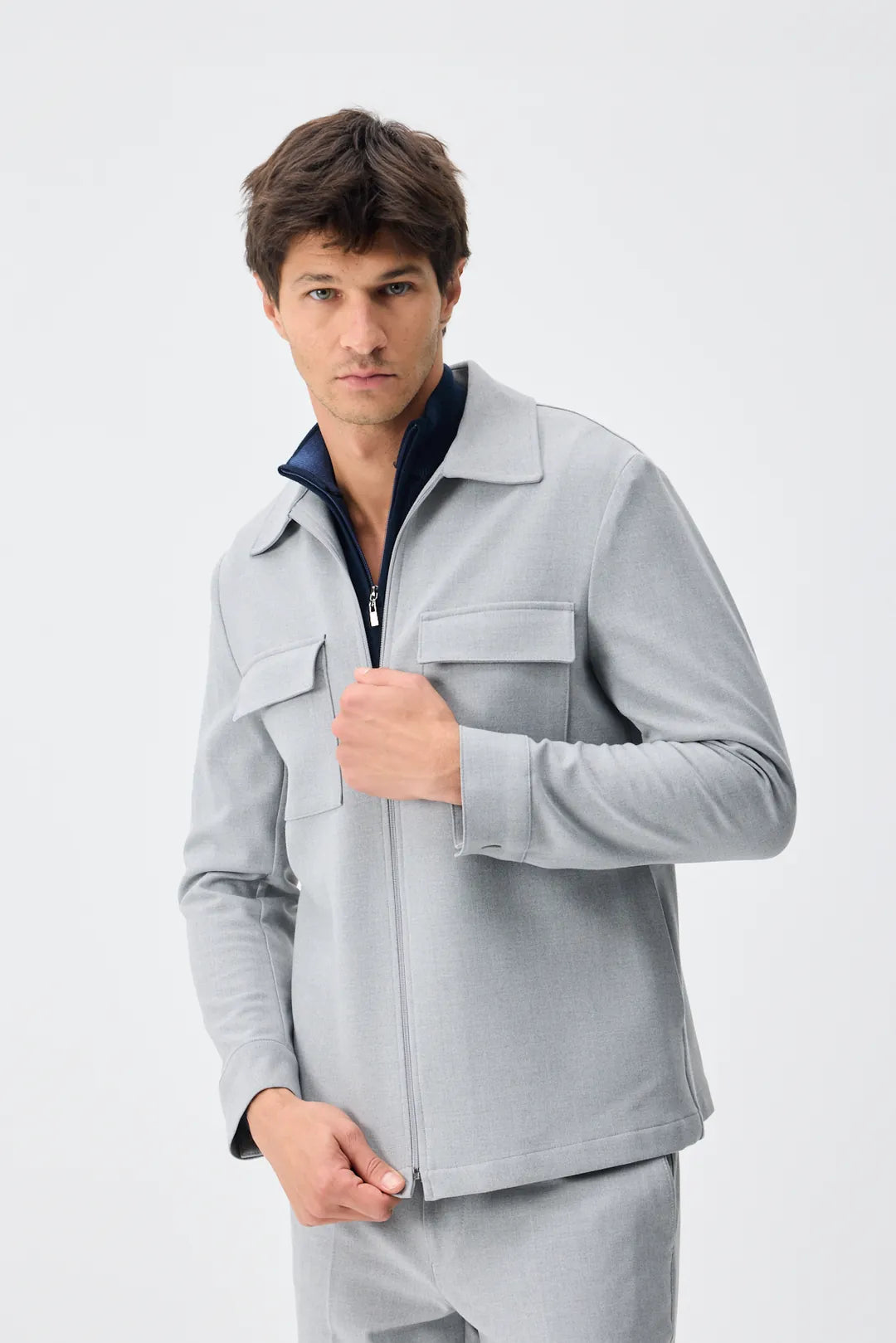 Set Jachetă cu două buzunare și pantaloni - Light Grey