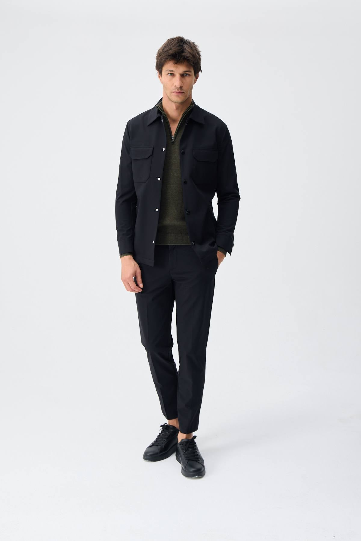 Jachetă EH negru cu două buzunare