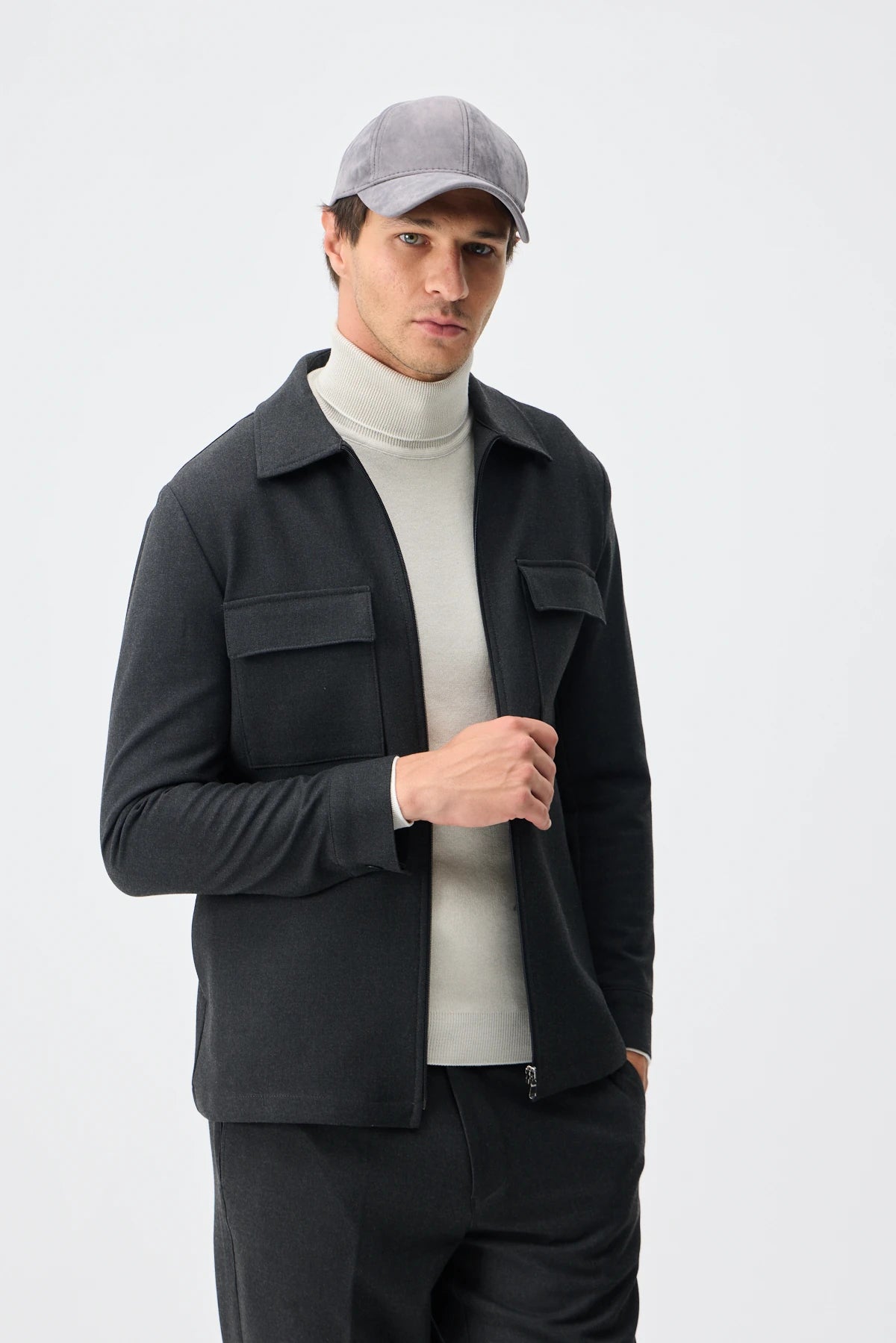 Set Jachetă cu două buzunare și pantaloni - Gri Antracit