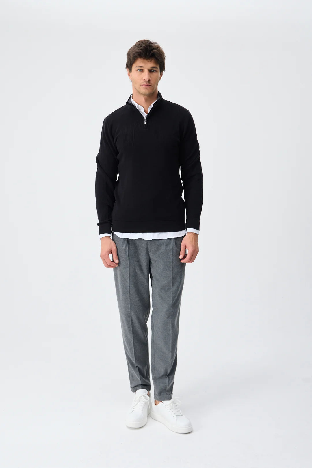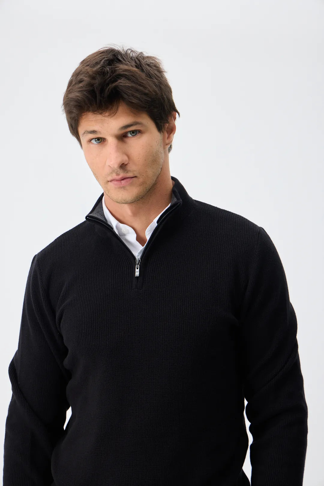 Pulover tricotat fin, cu guler înalt și fermoar la jumătate, gândit pentru eleganță de zi cu zi. Croiala lejeră și textura naturală oferă respirabilitate și confort pe tot parcursul zilei. Se poartă la fel de bine peste o cămașă sau direct pe piele și este alegerea ideală pentru sezoanele de tranziție.