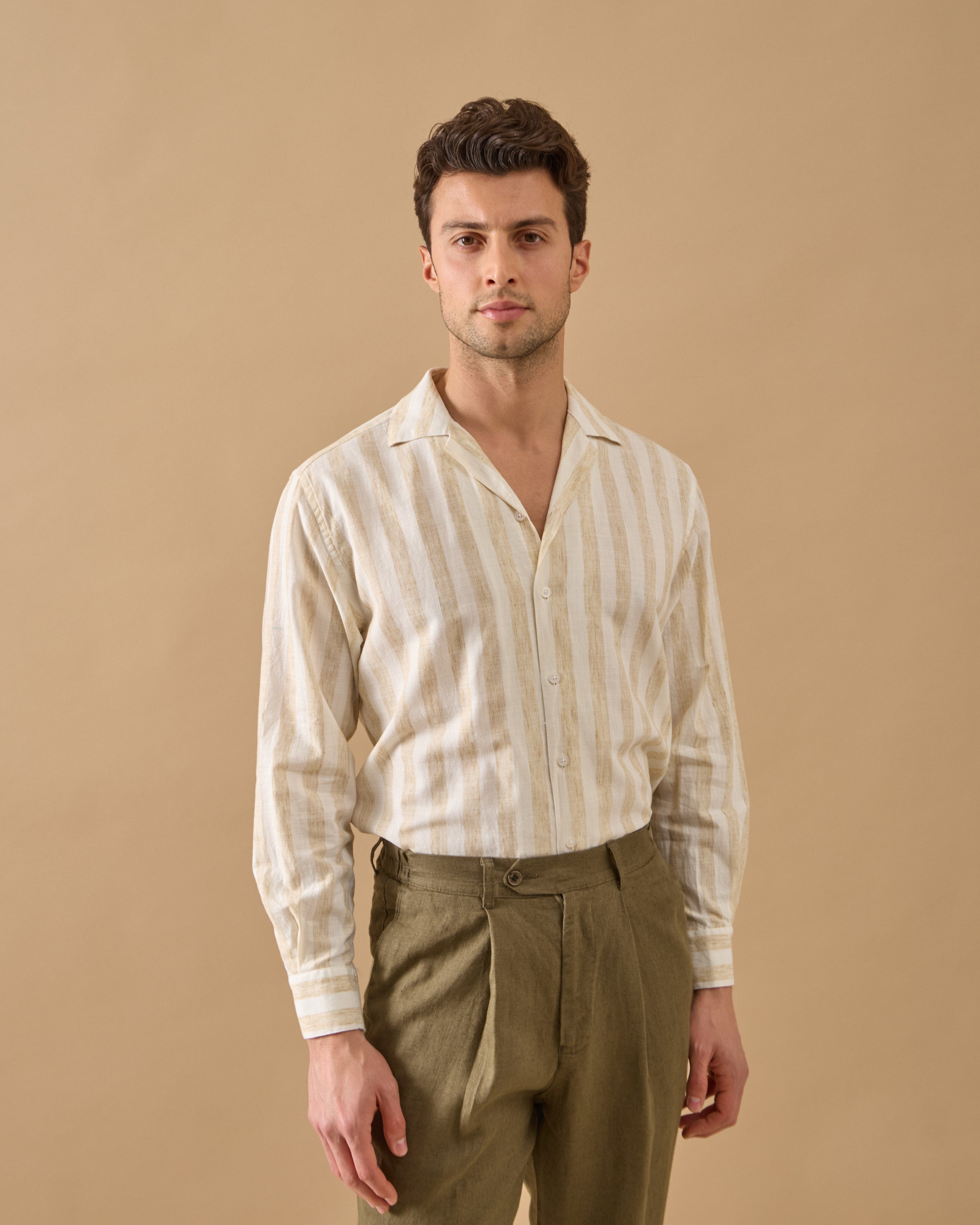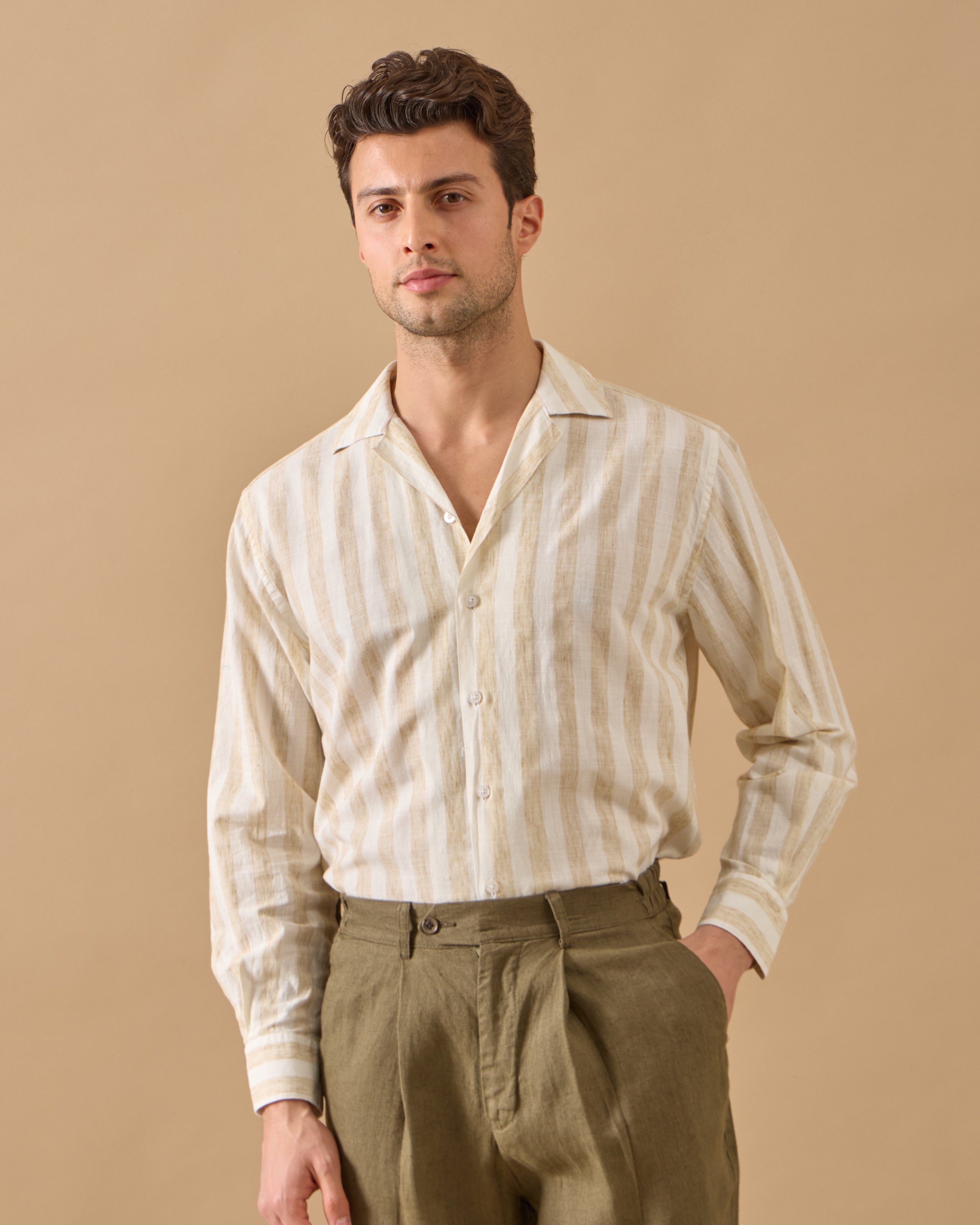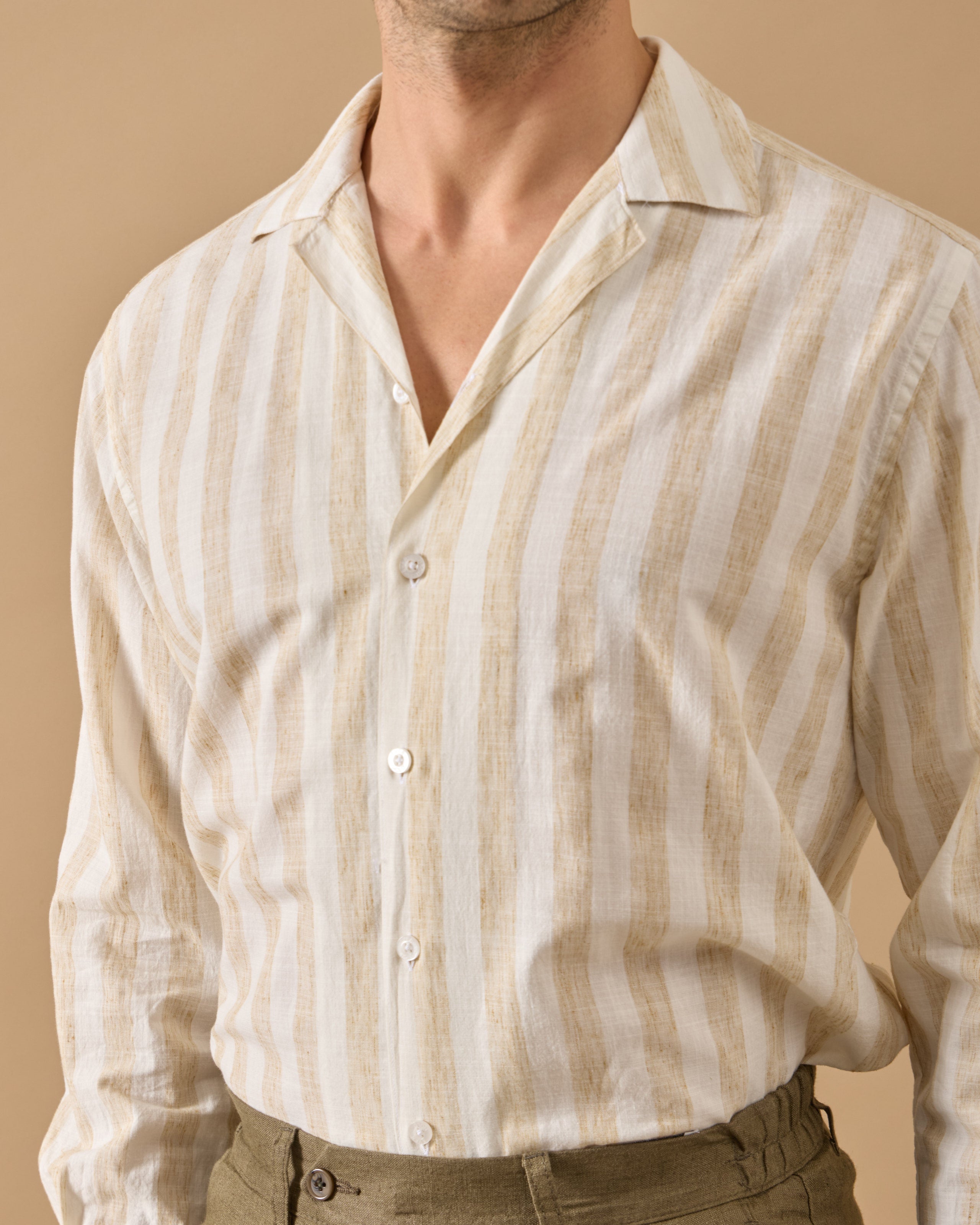 - Cămașă din in cu dungi naturale, lejeră și respirabilă.