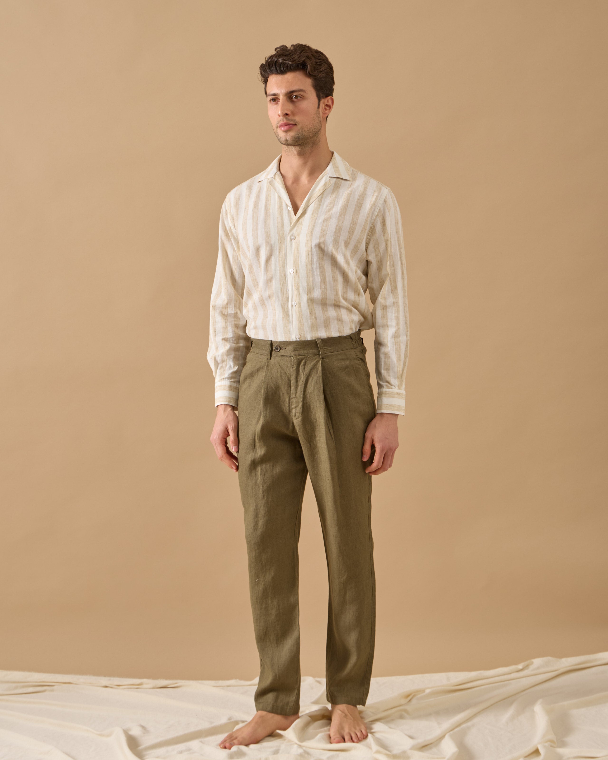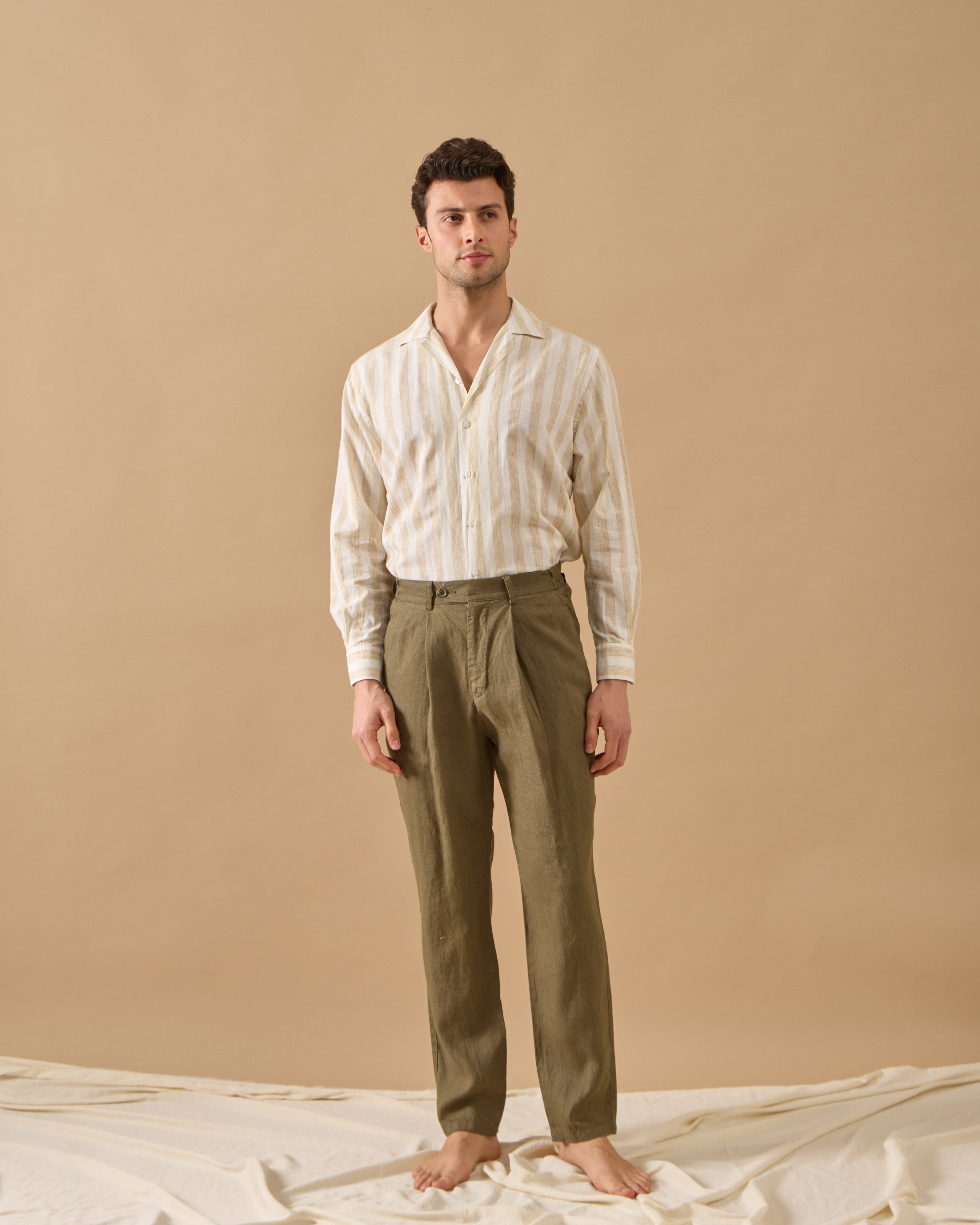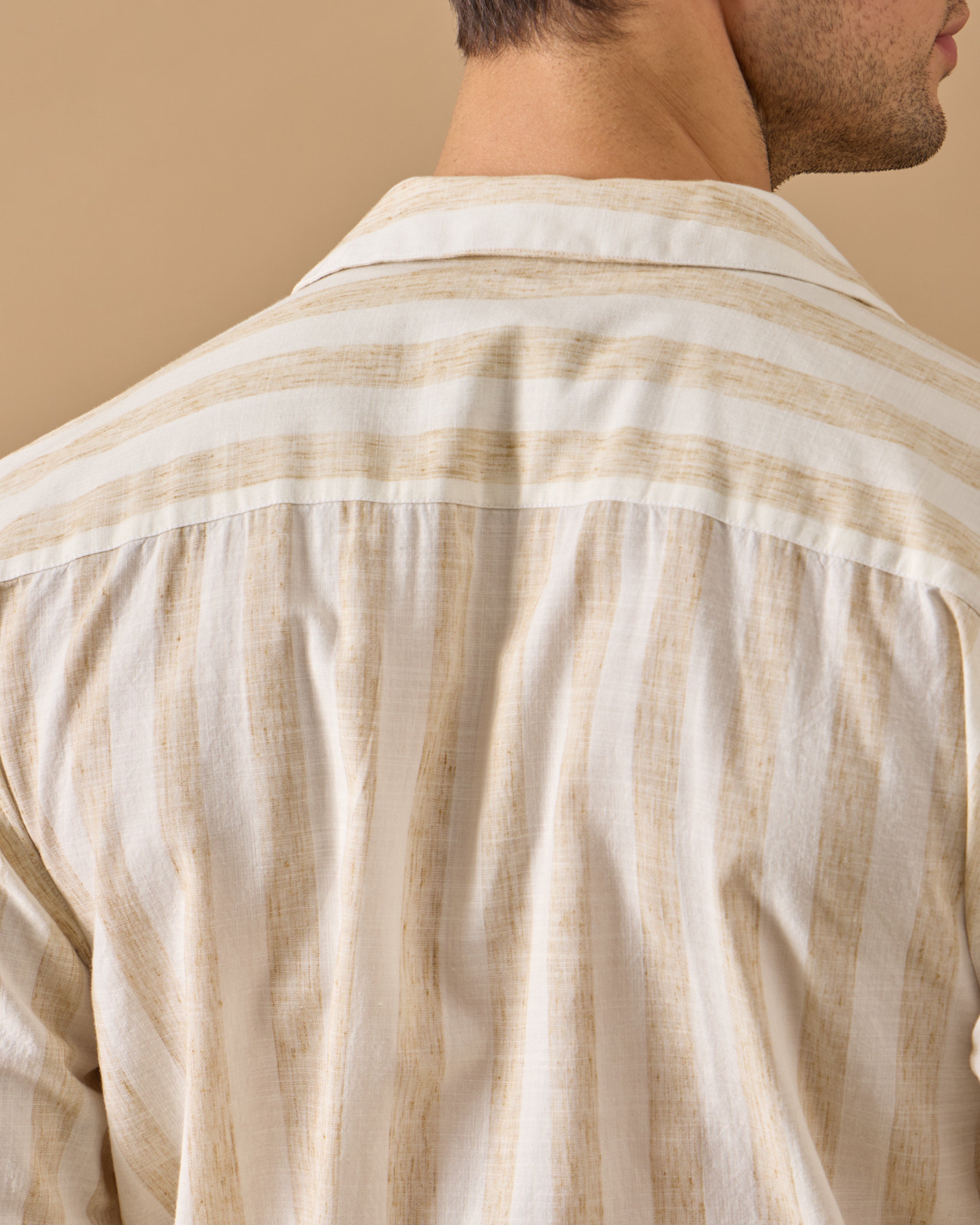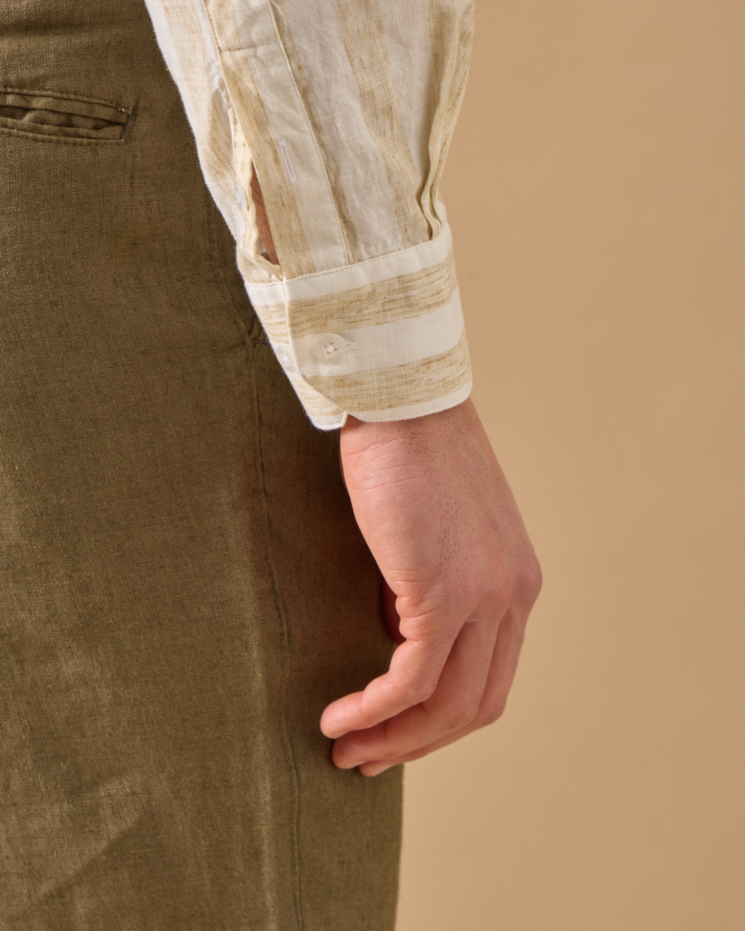 - Cămașă din in cu dungi naturale, lejeră și respirabilă.
