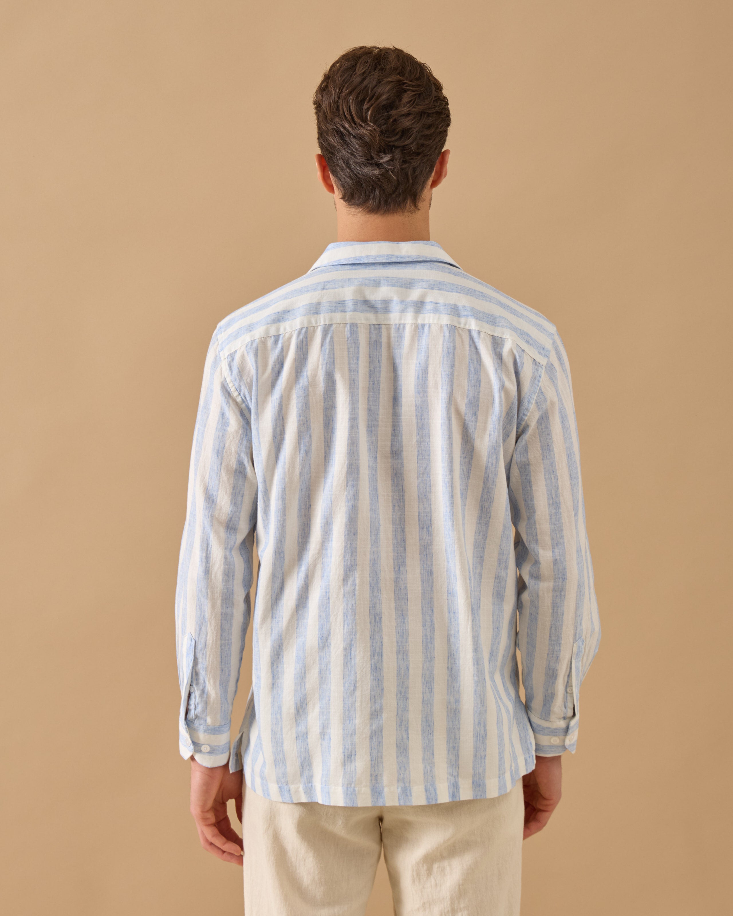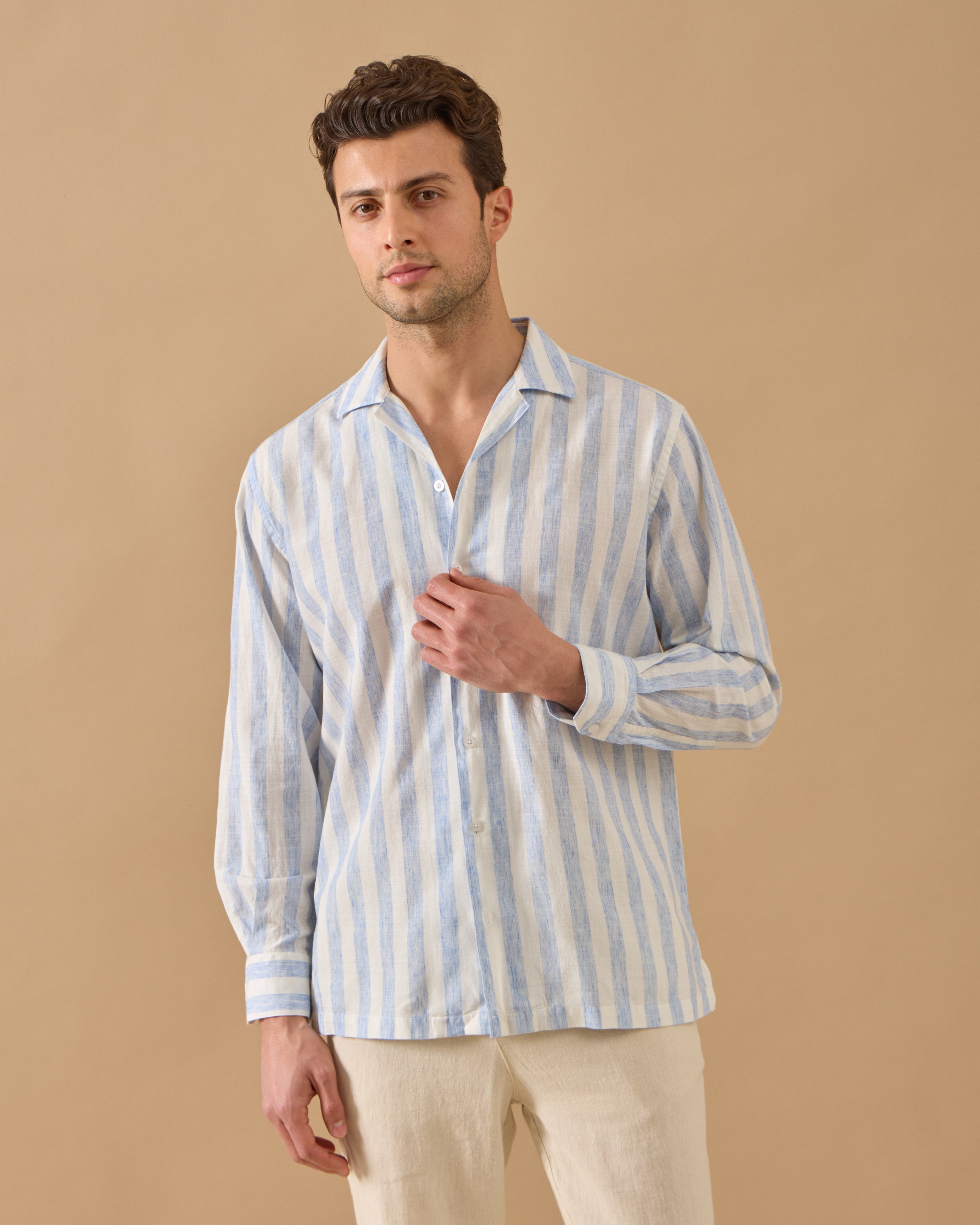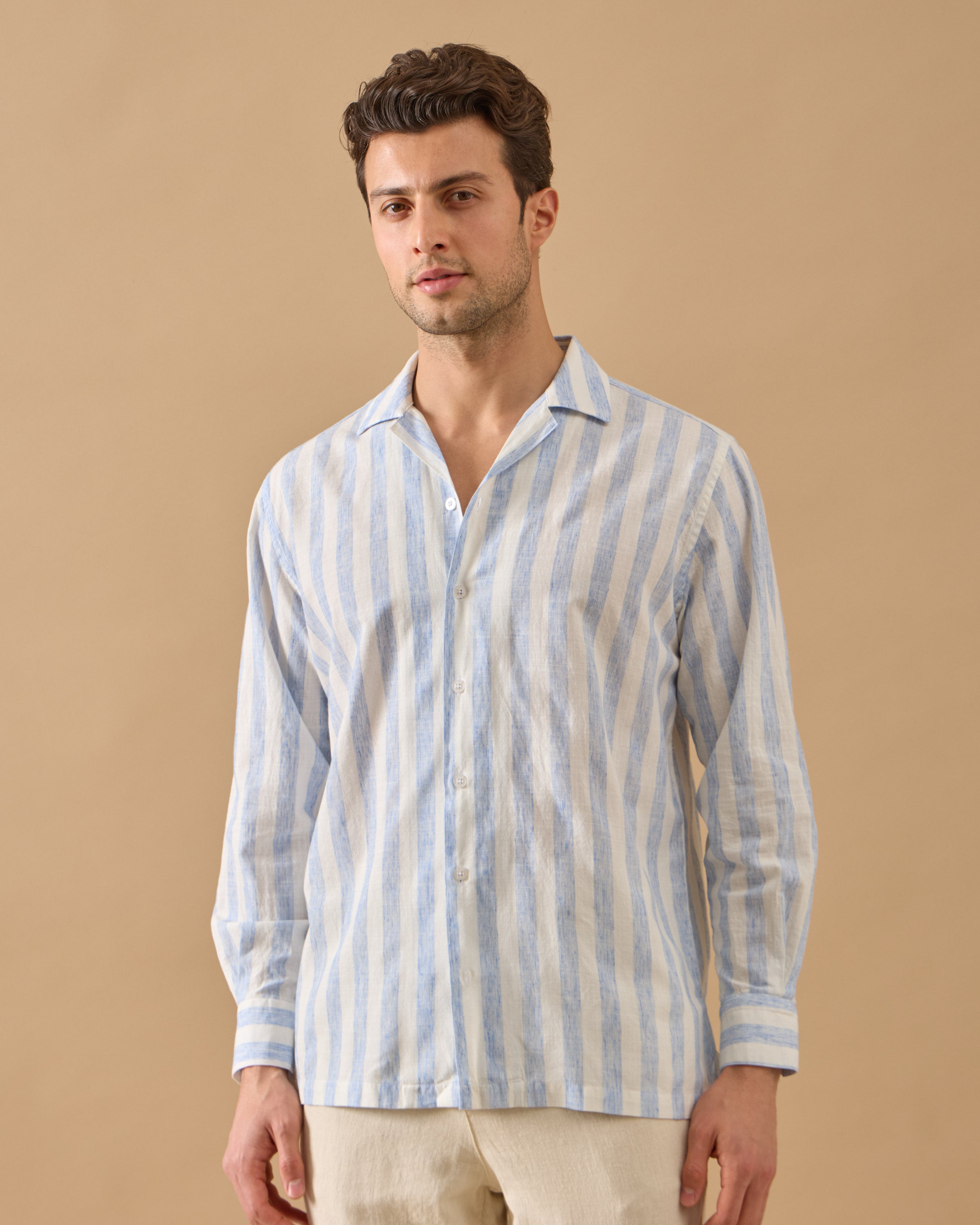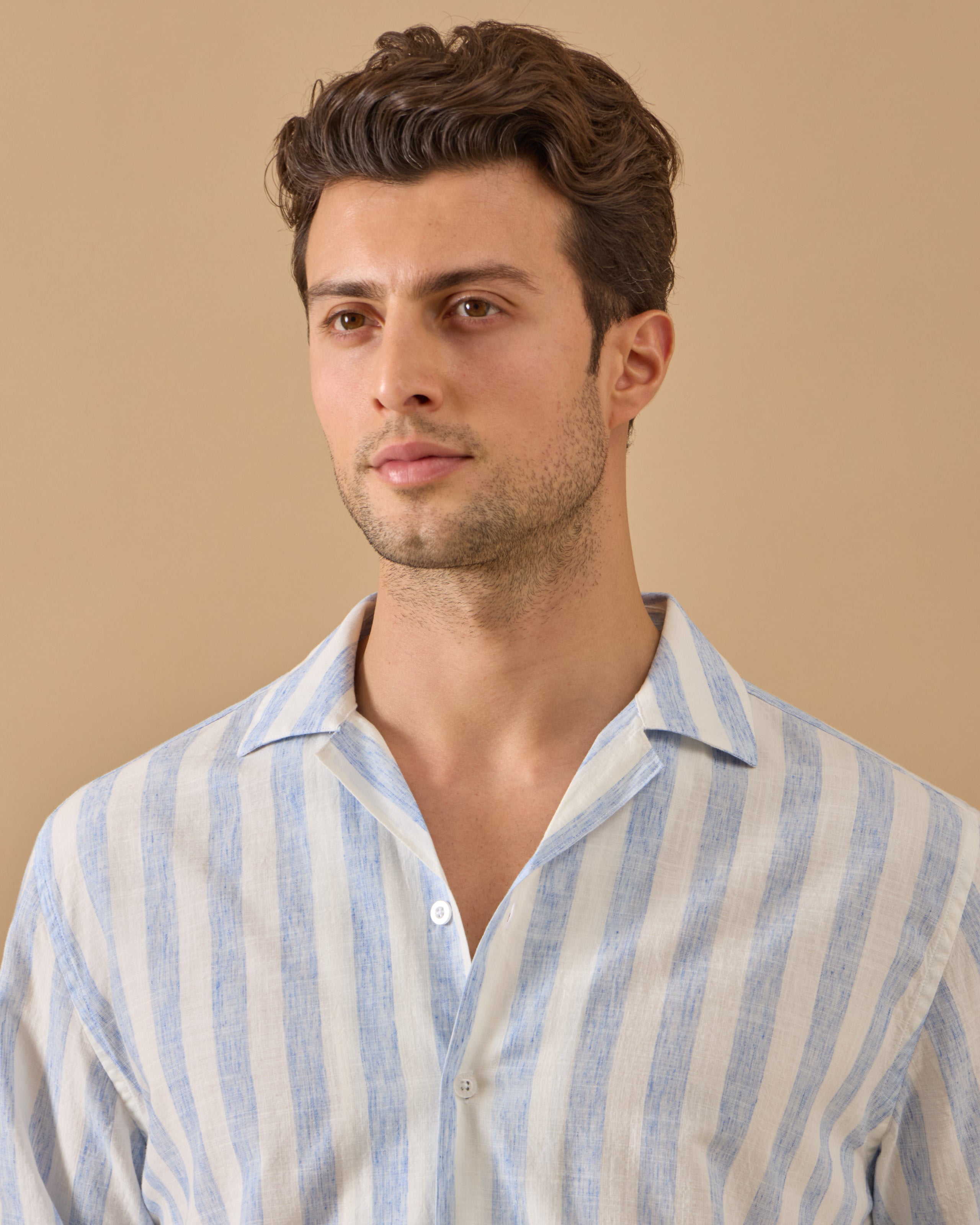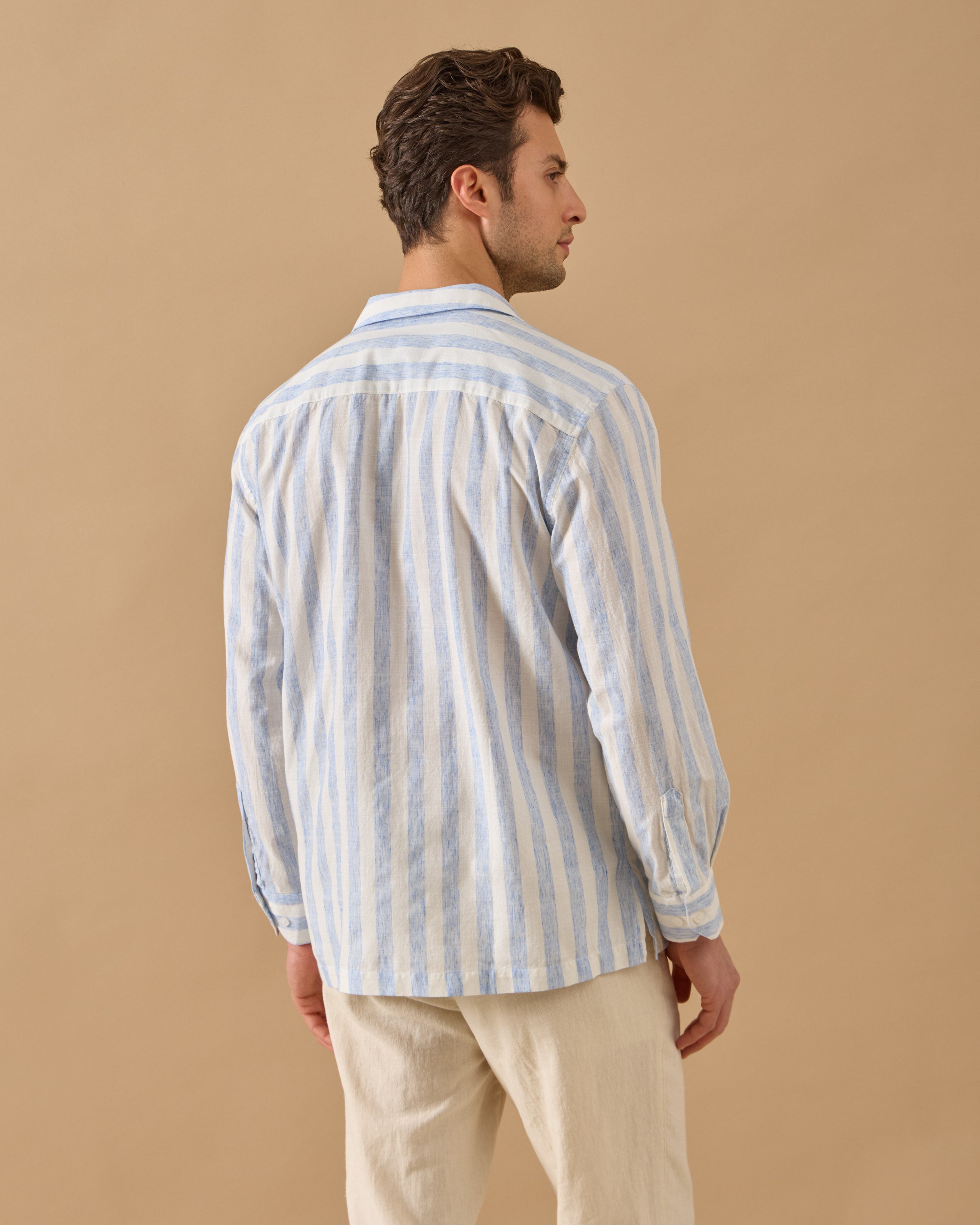 - Cămașă din in cu dungi naturale, lejeră și respirabilă.
