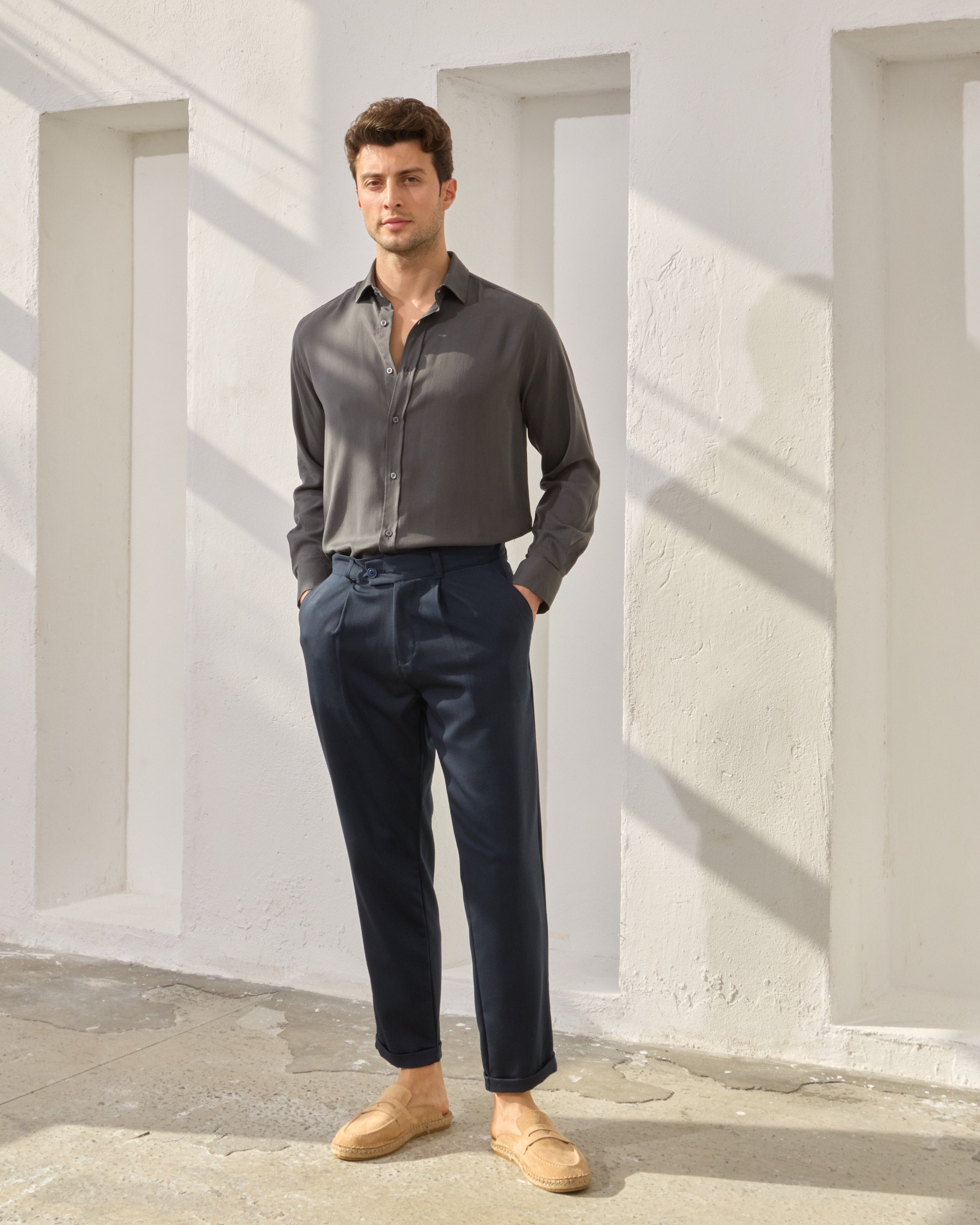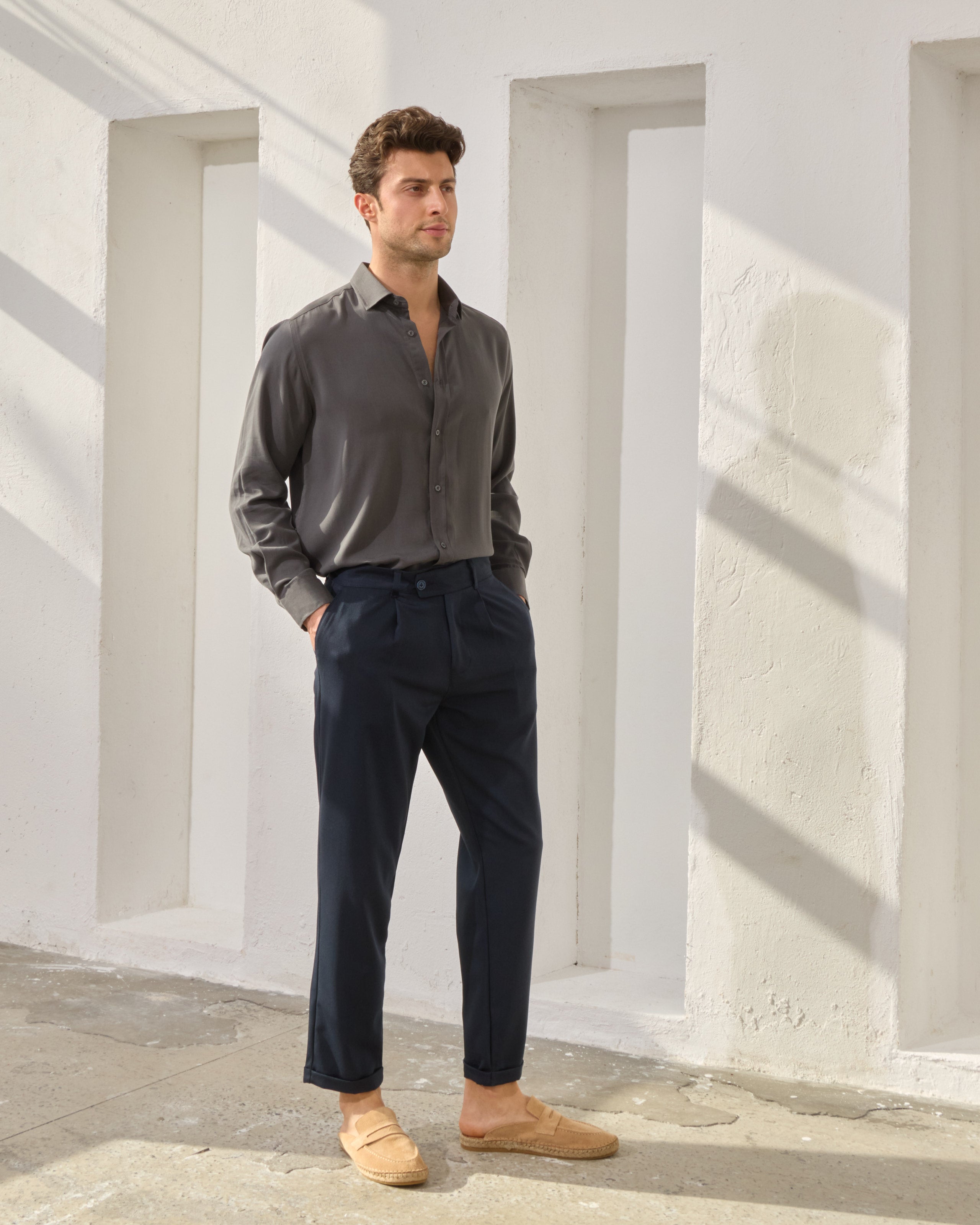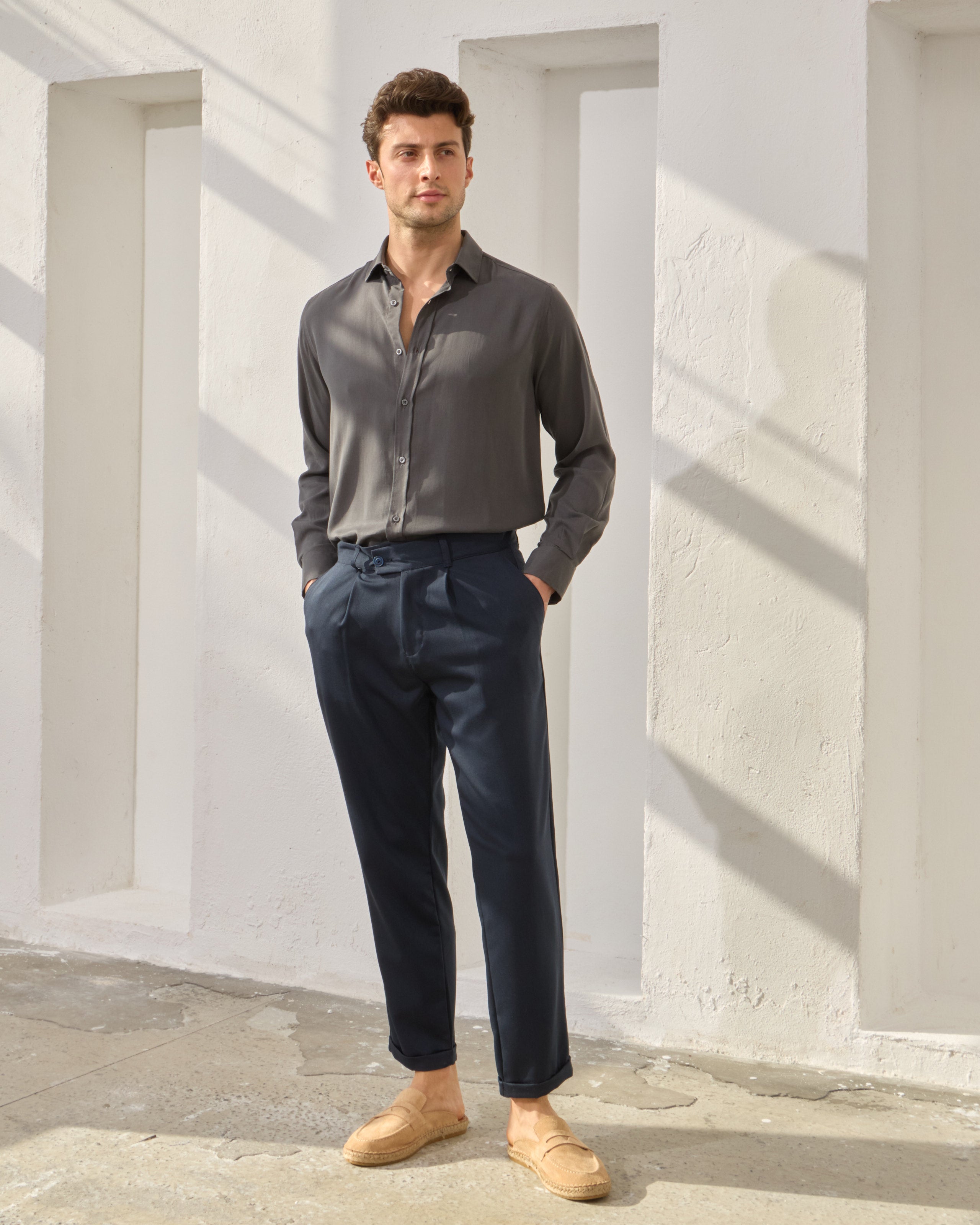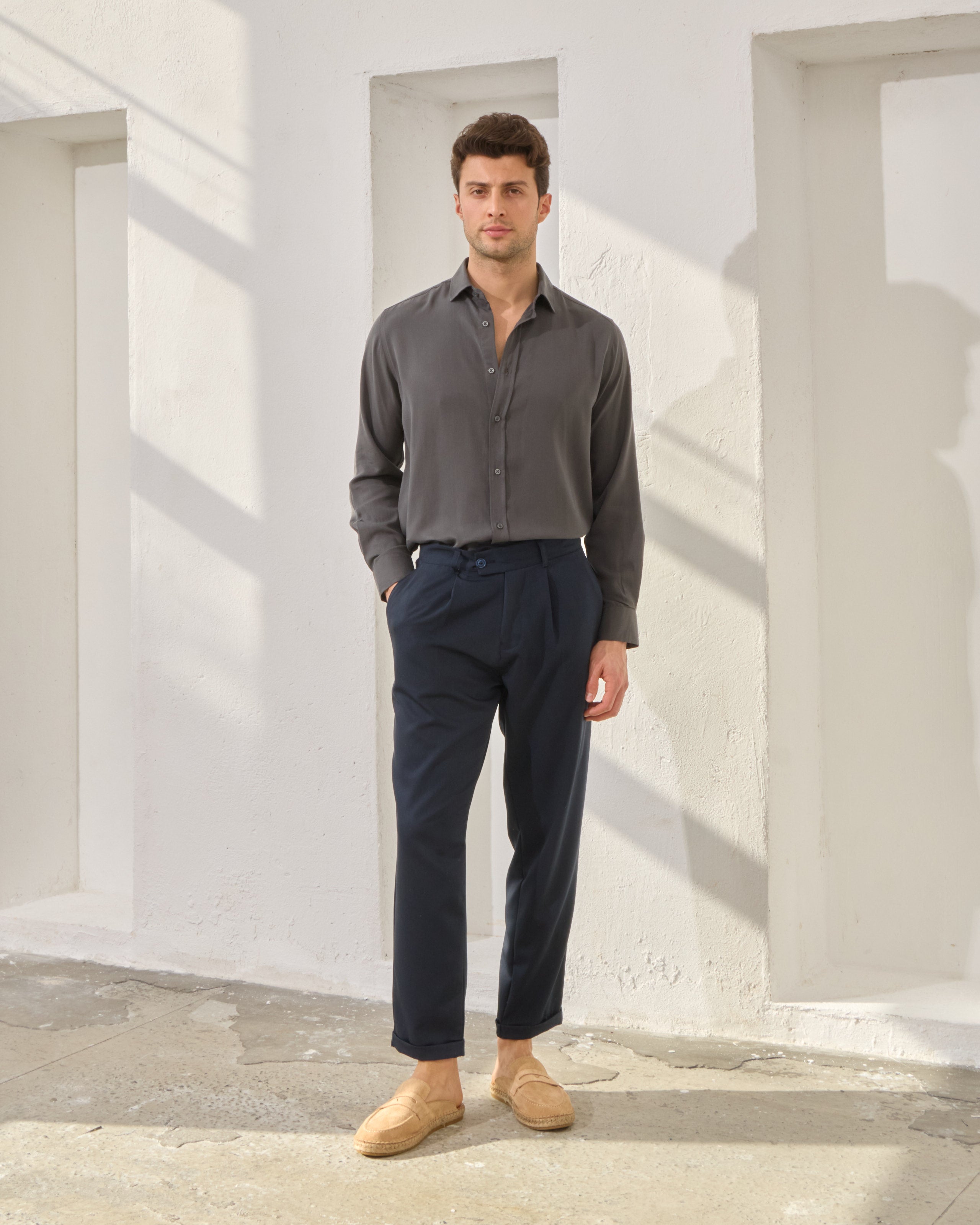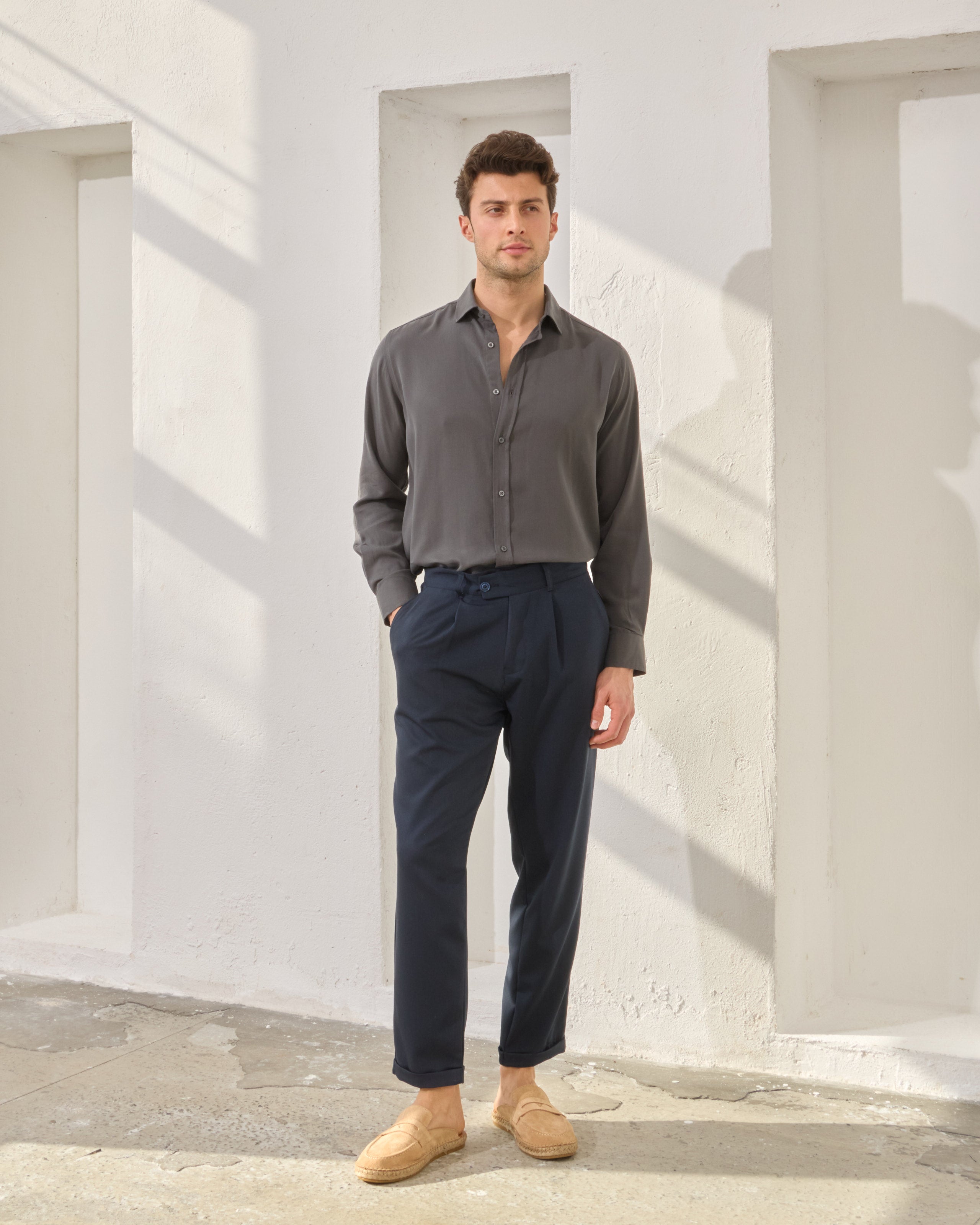 - Cămașă lejeră din viscoză moale, cu textură fină și cădere fluidă.
