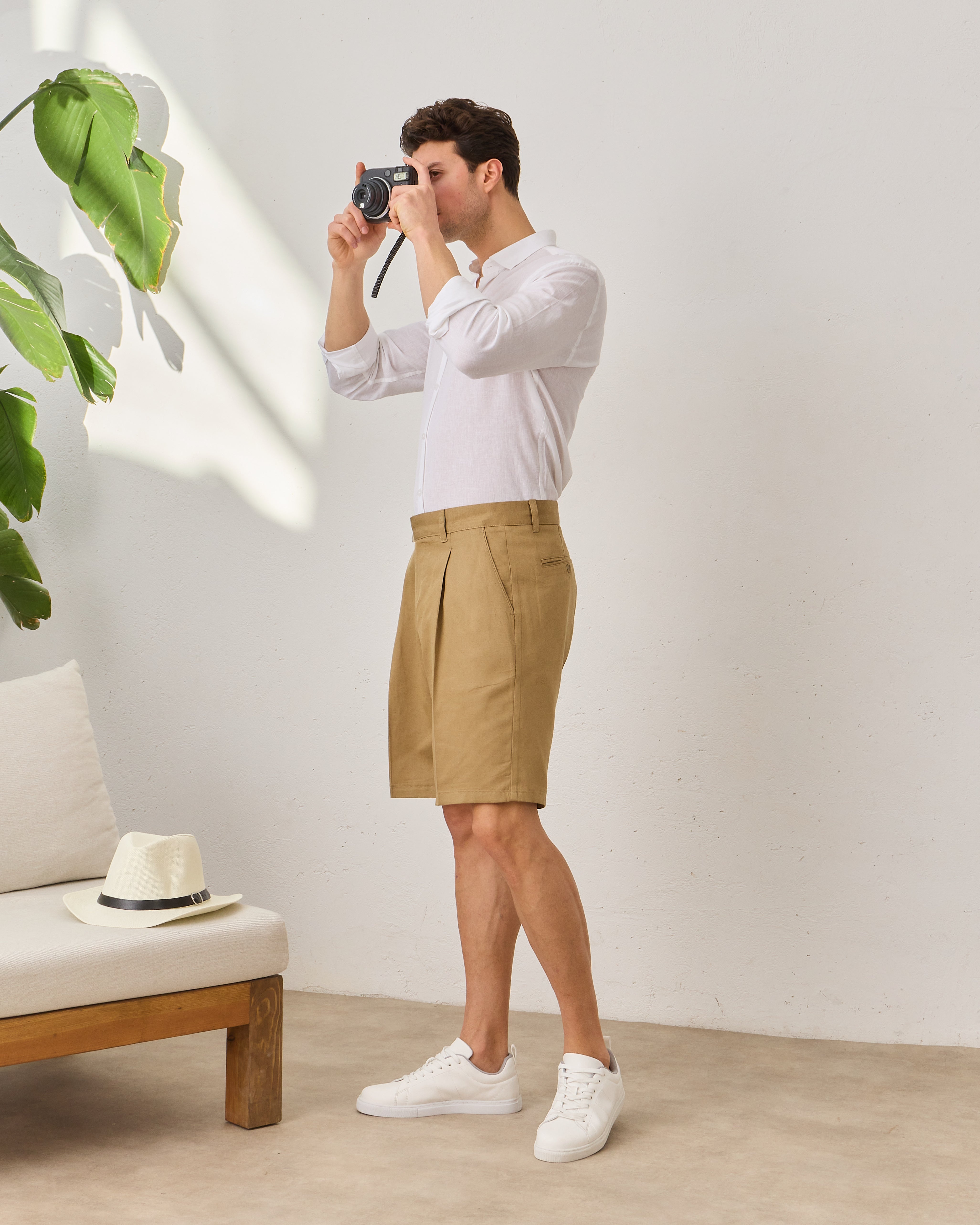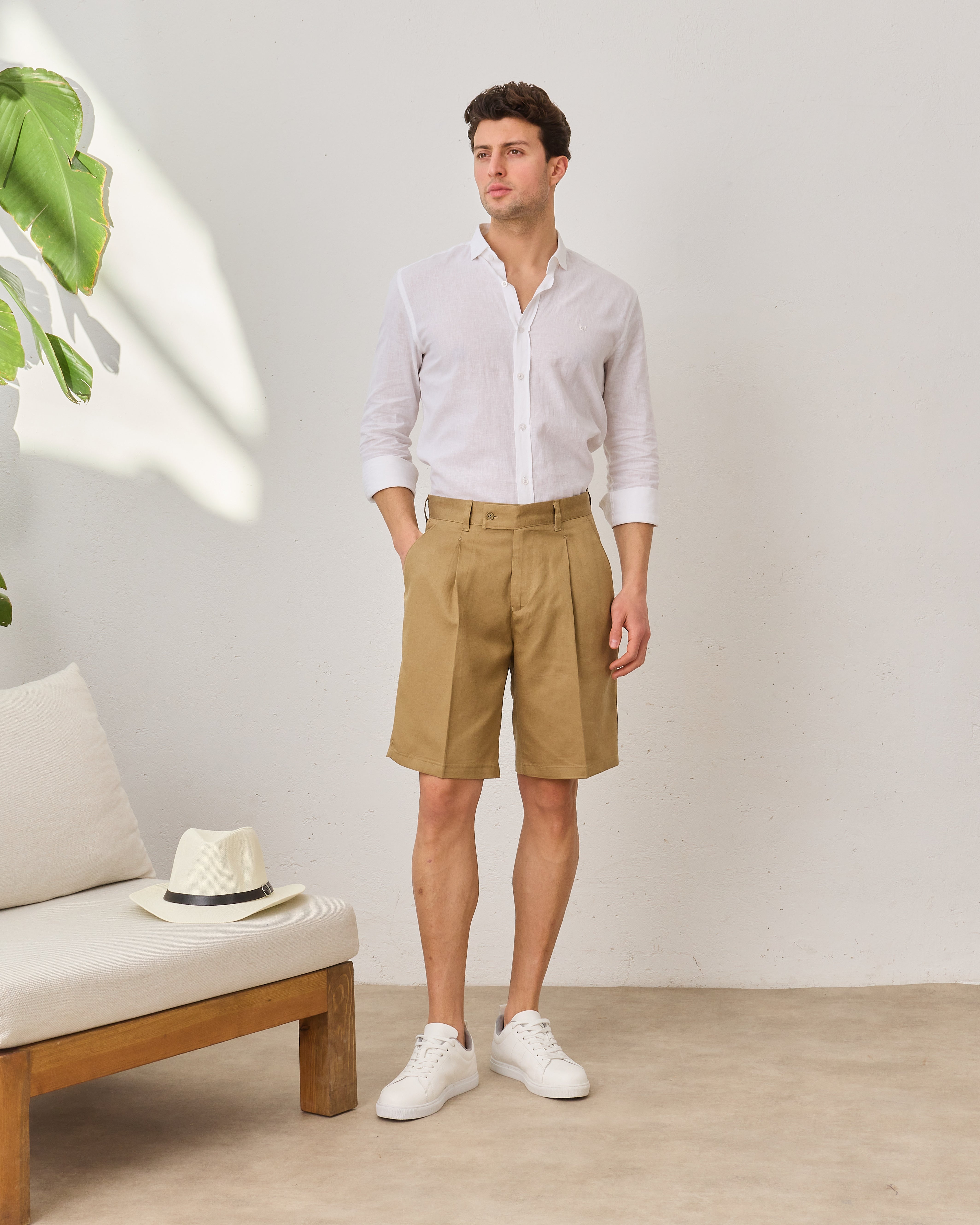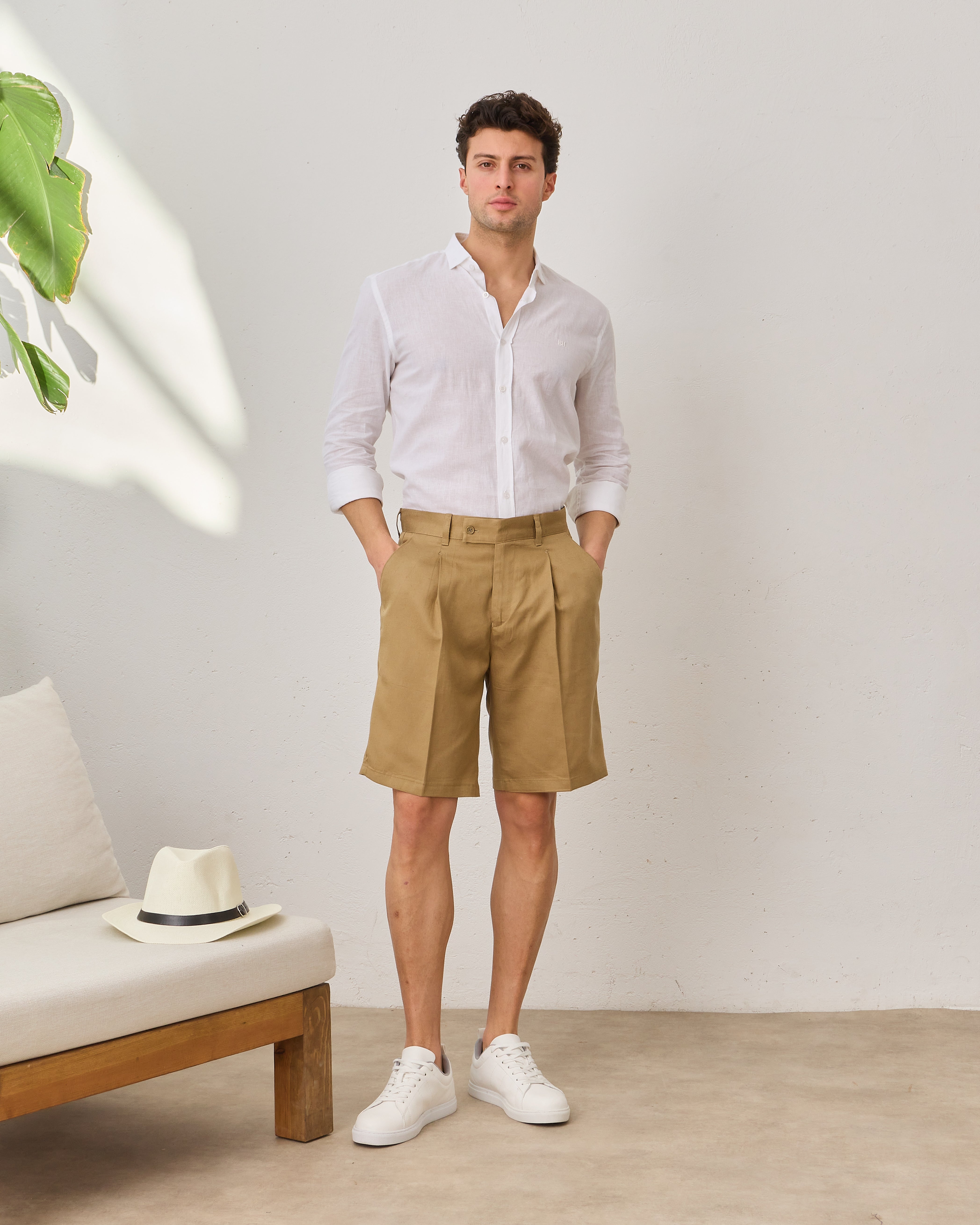 Pantaloni Scurți Everhold, cu Pense, Camel