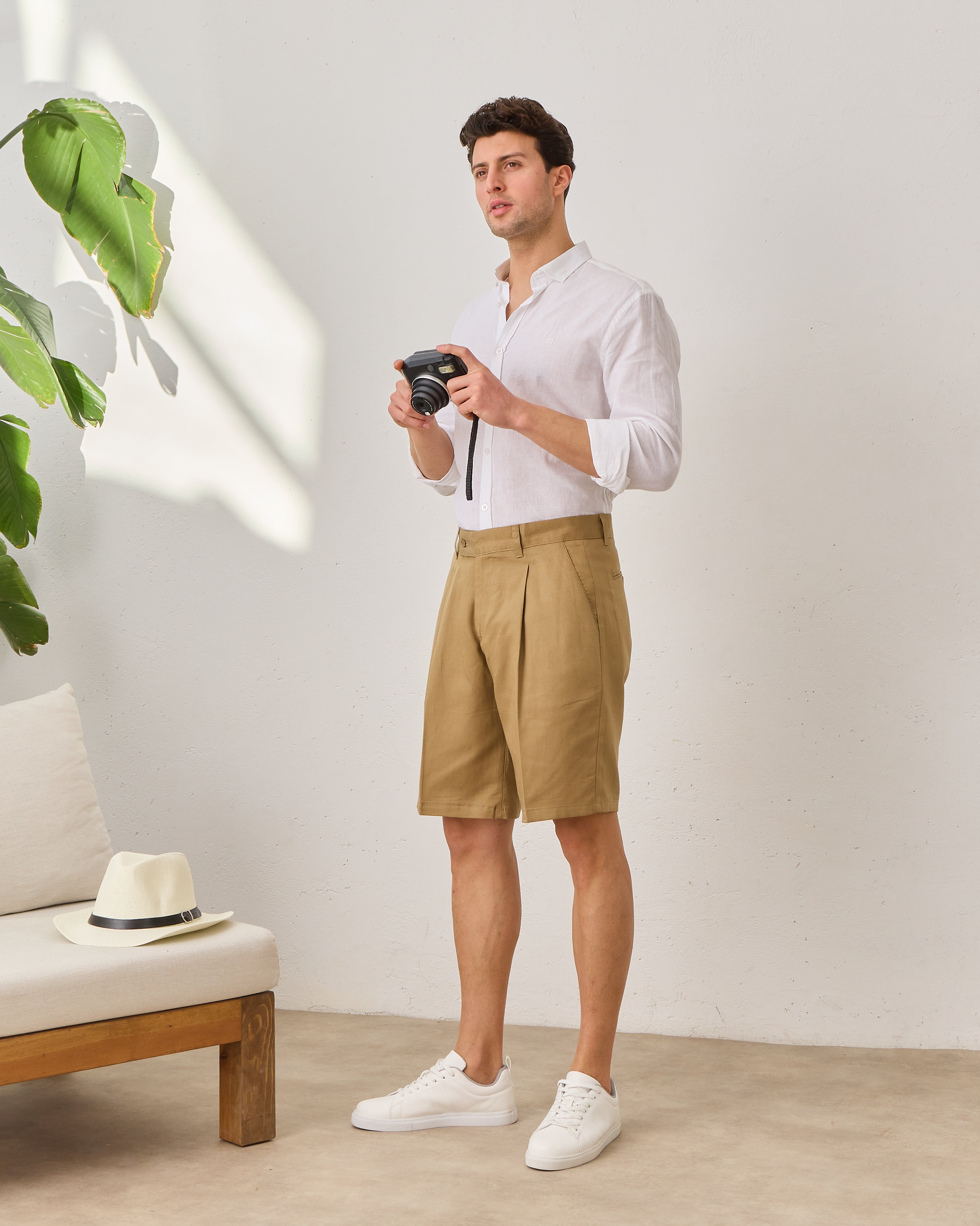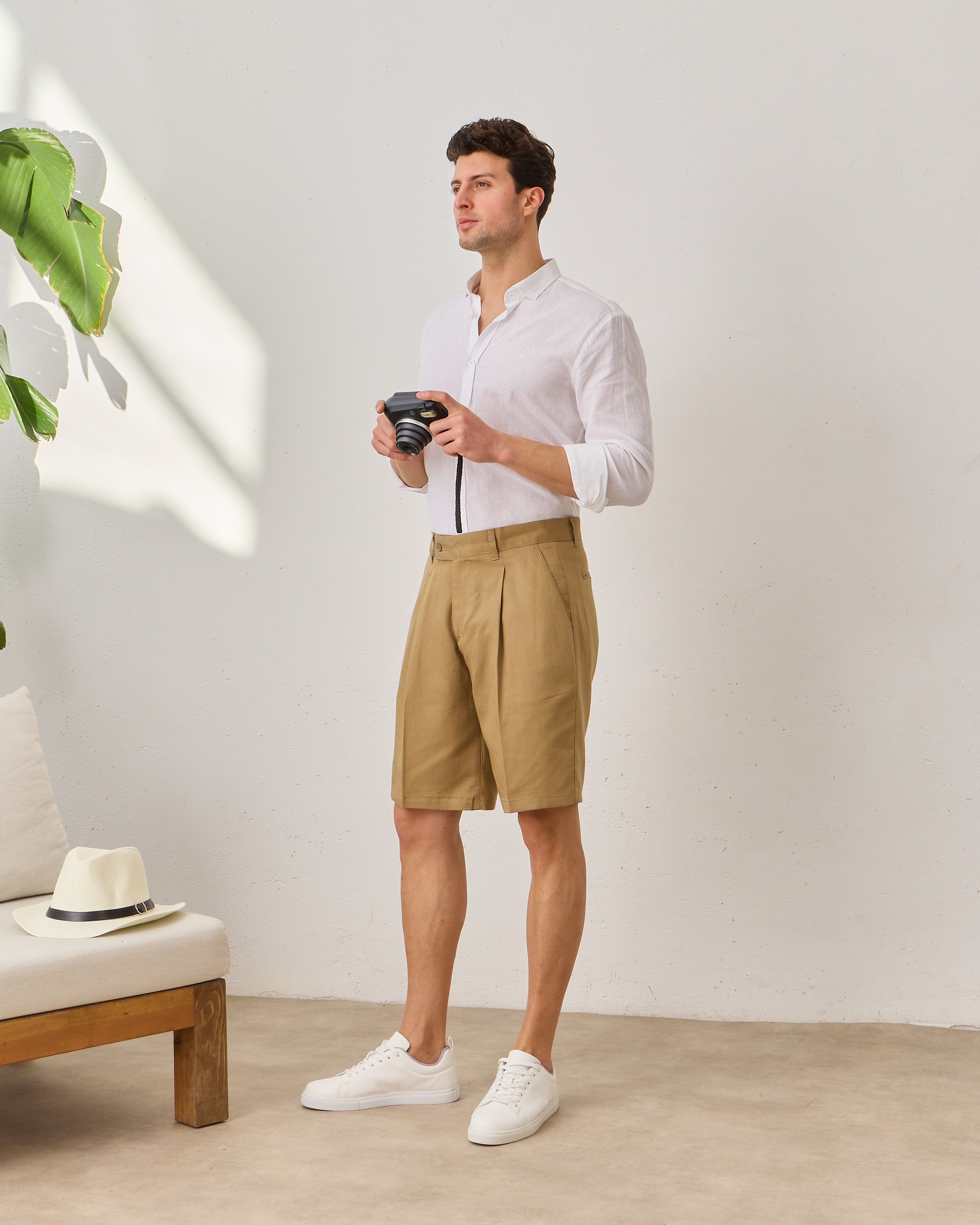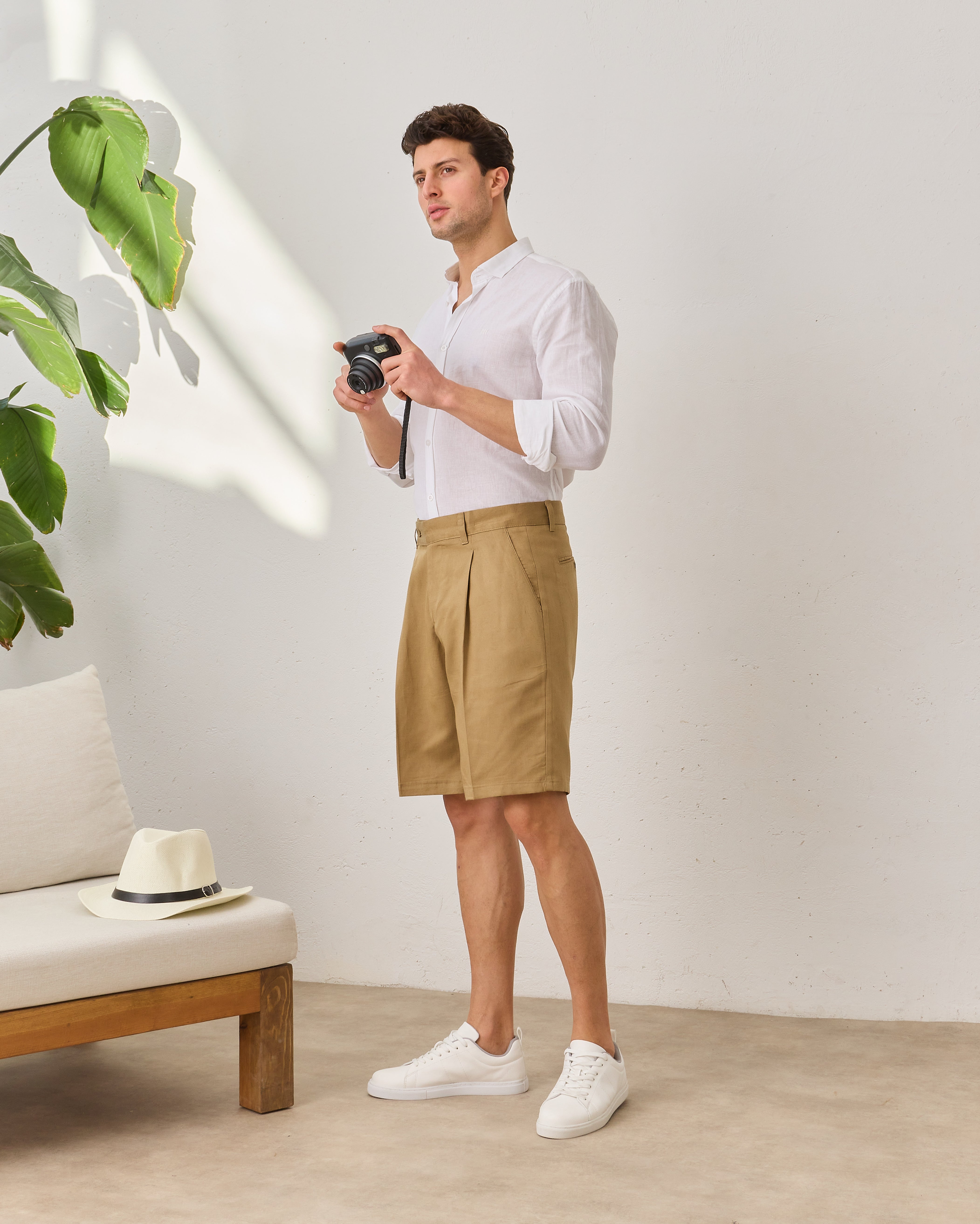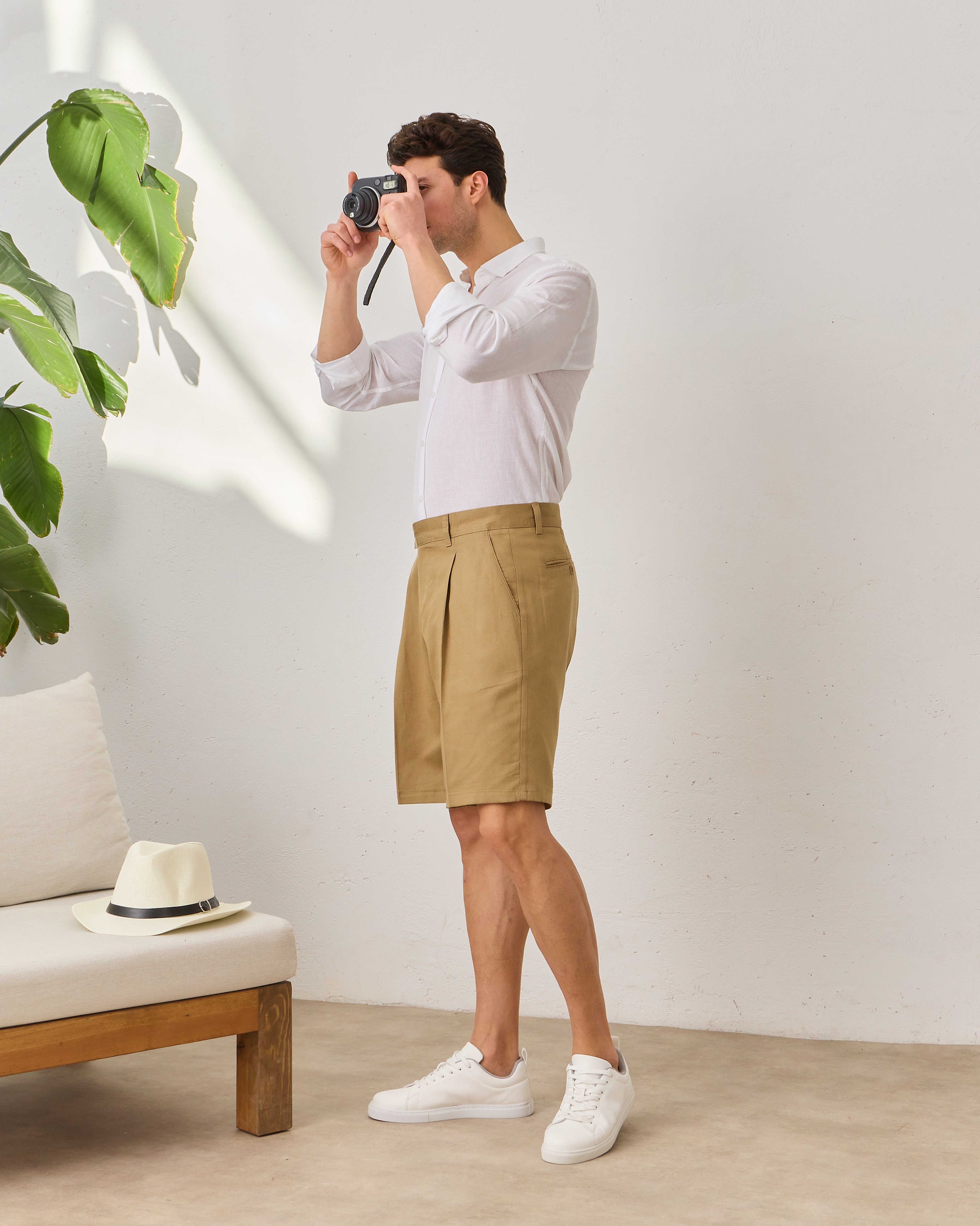 Pantaloni Scurți Everhold, cu Pense, Camel