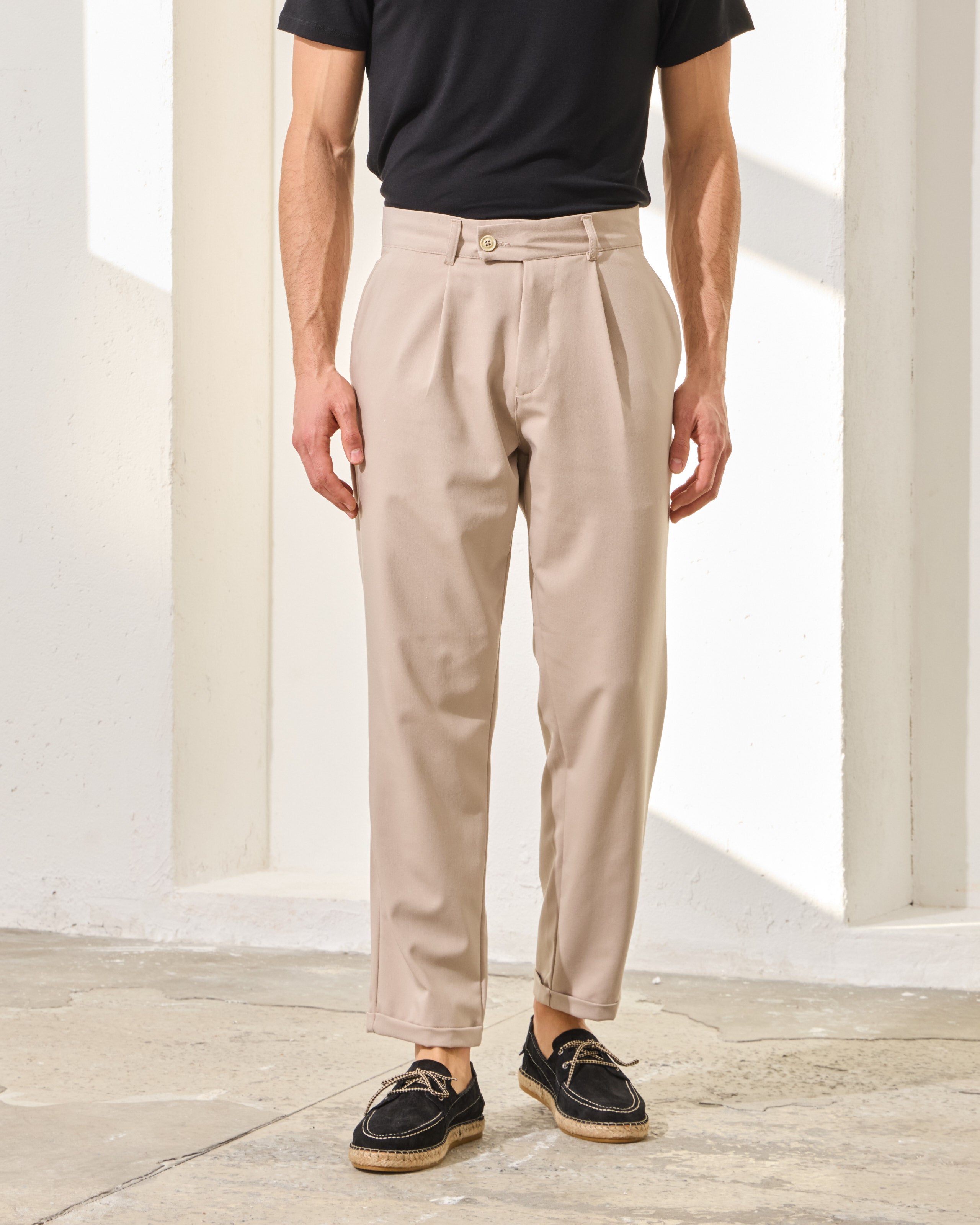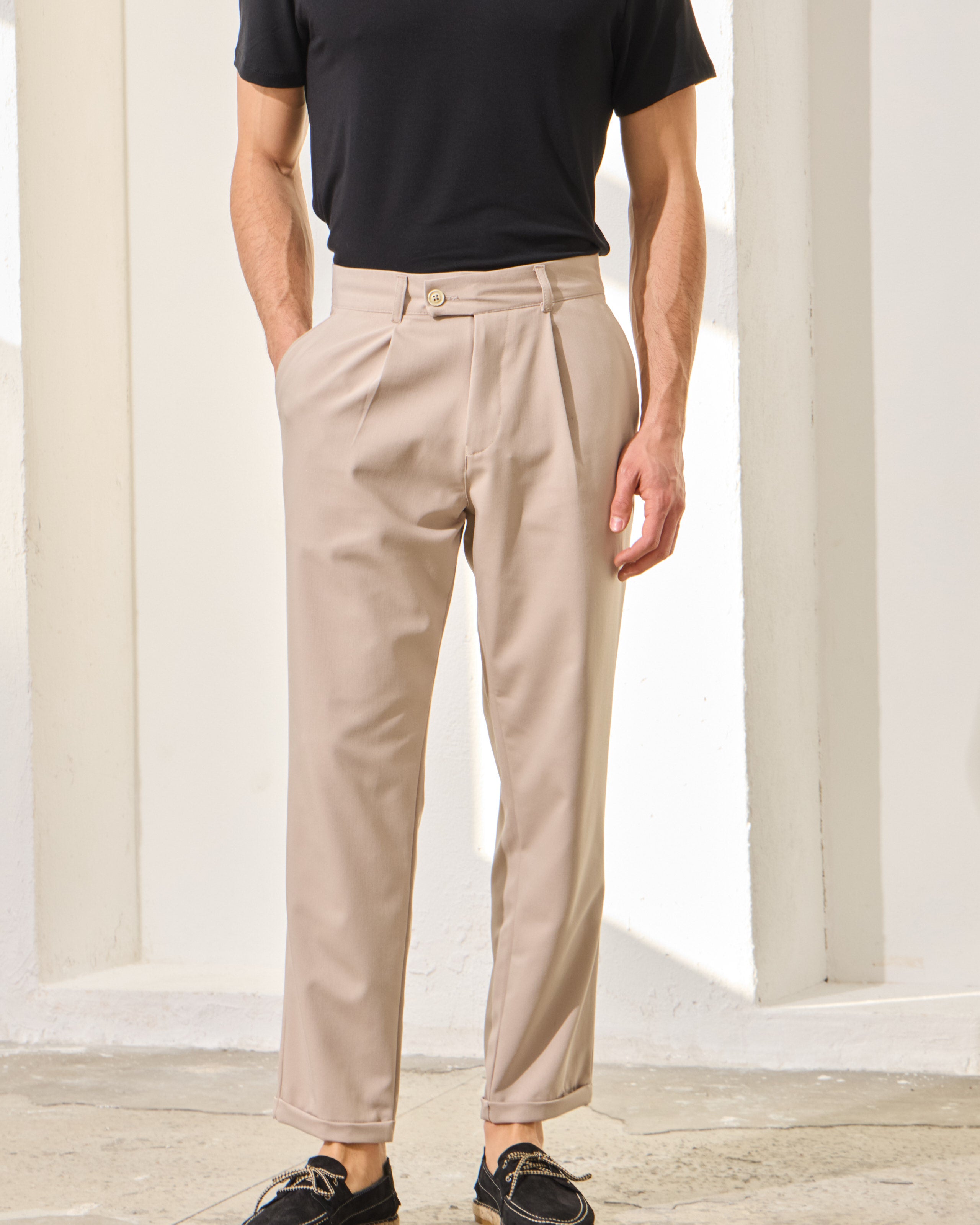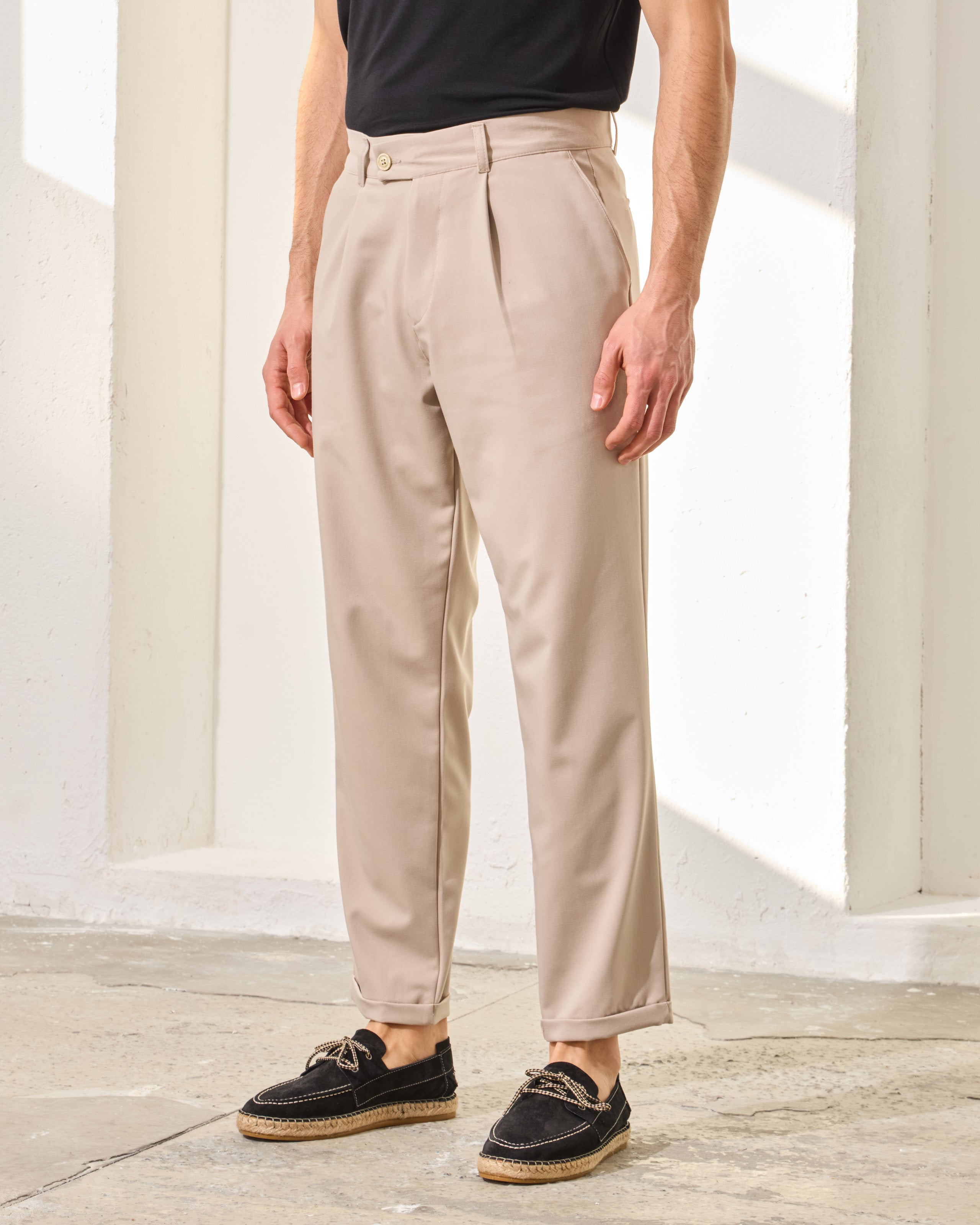 Pantaloni Everhold, Cropped cu Pense, Crem