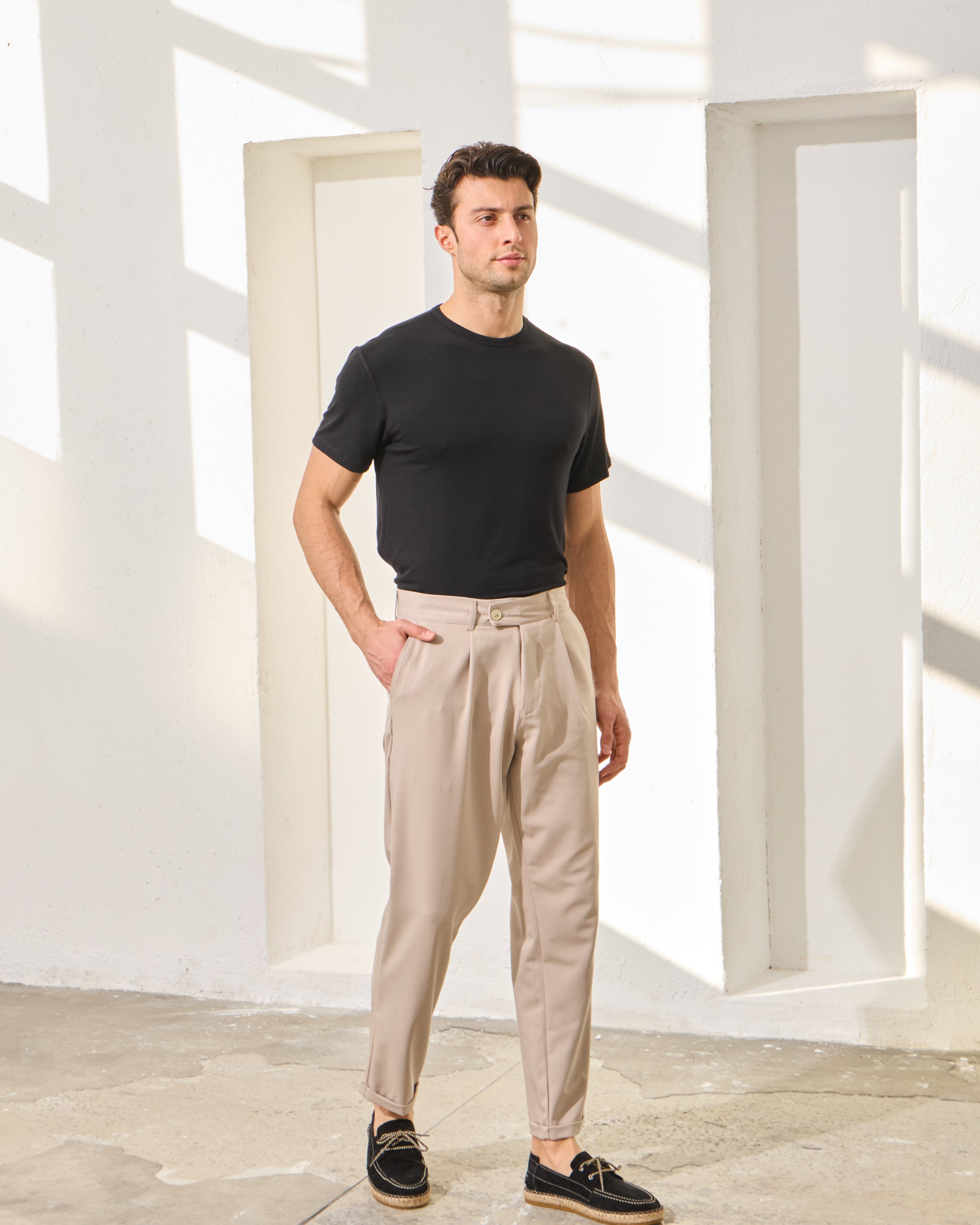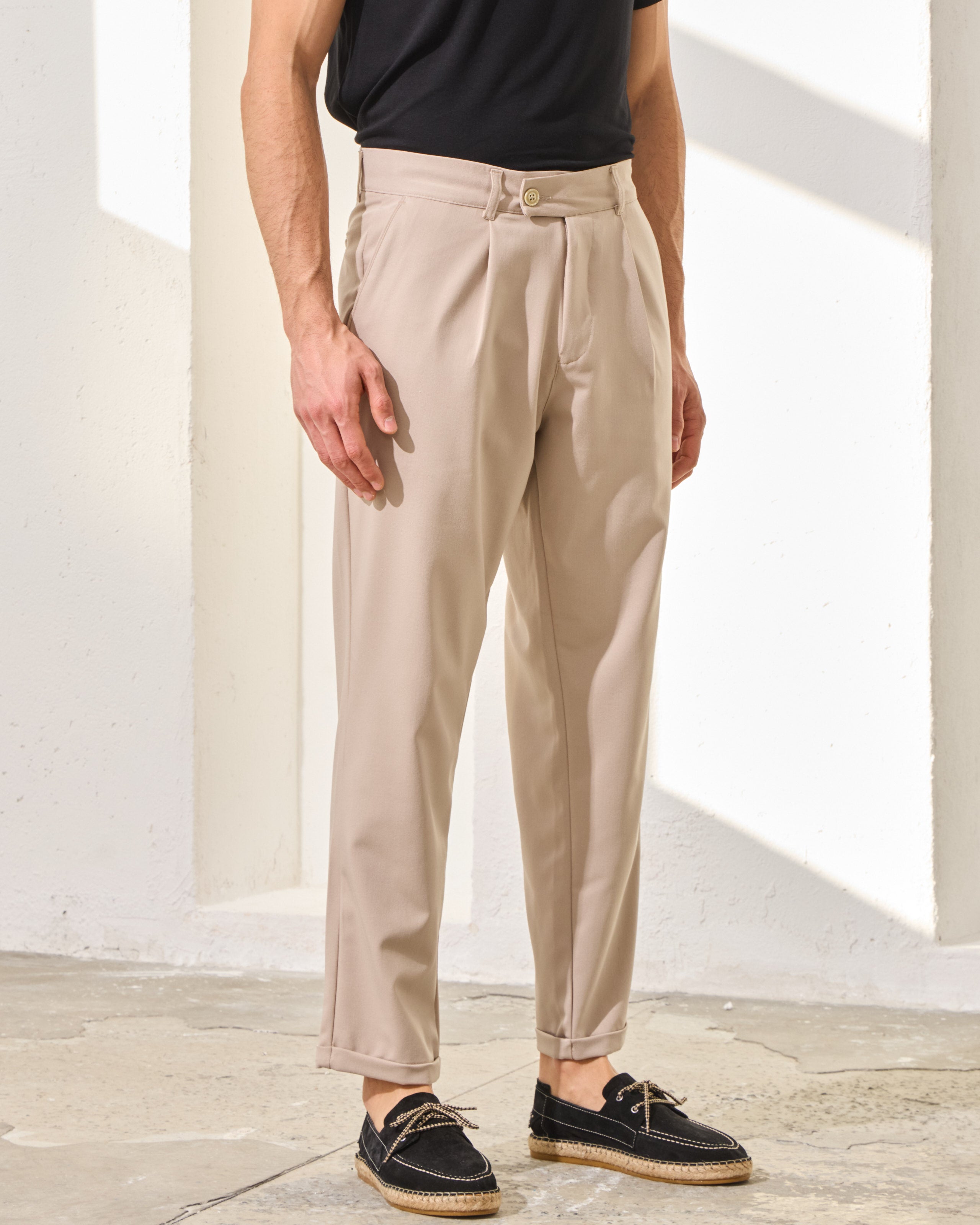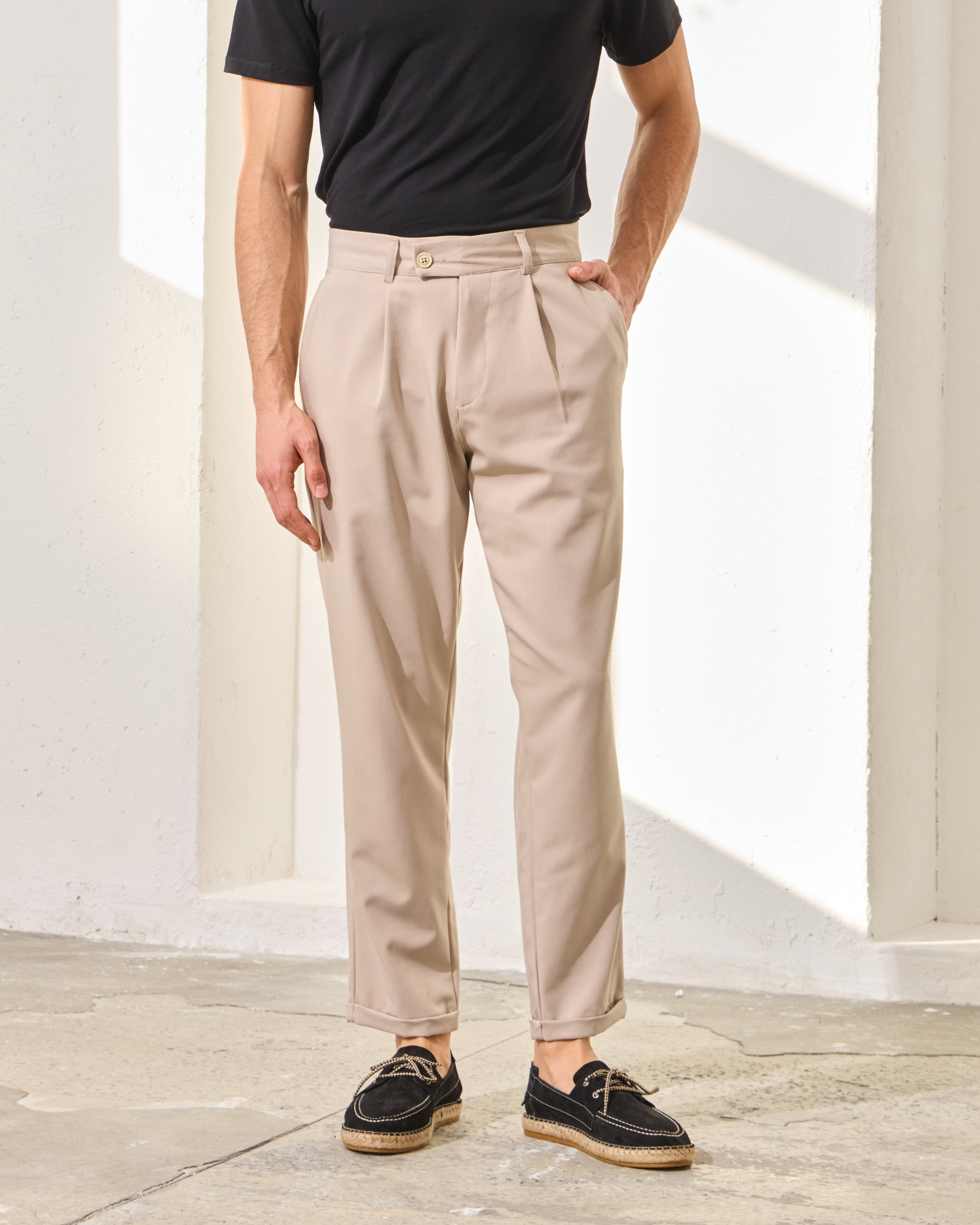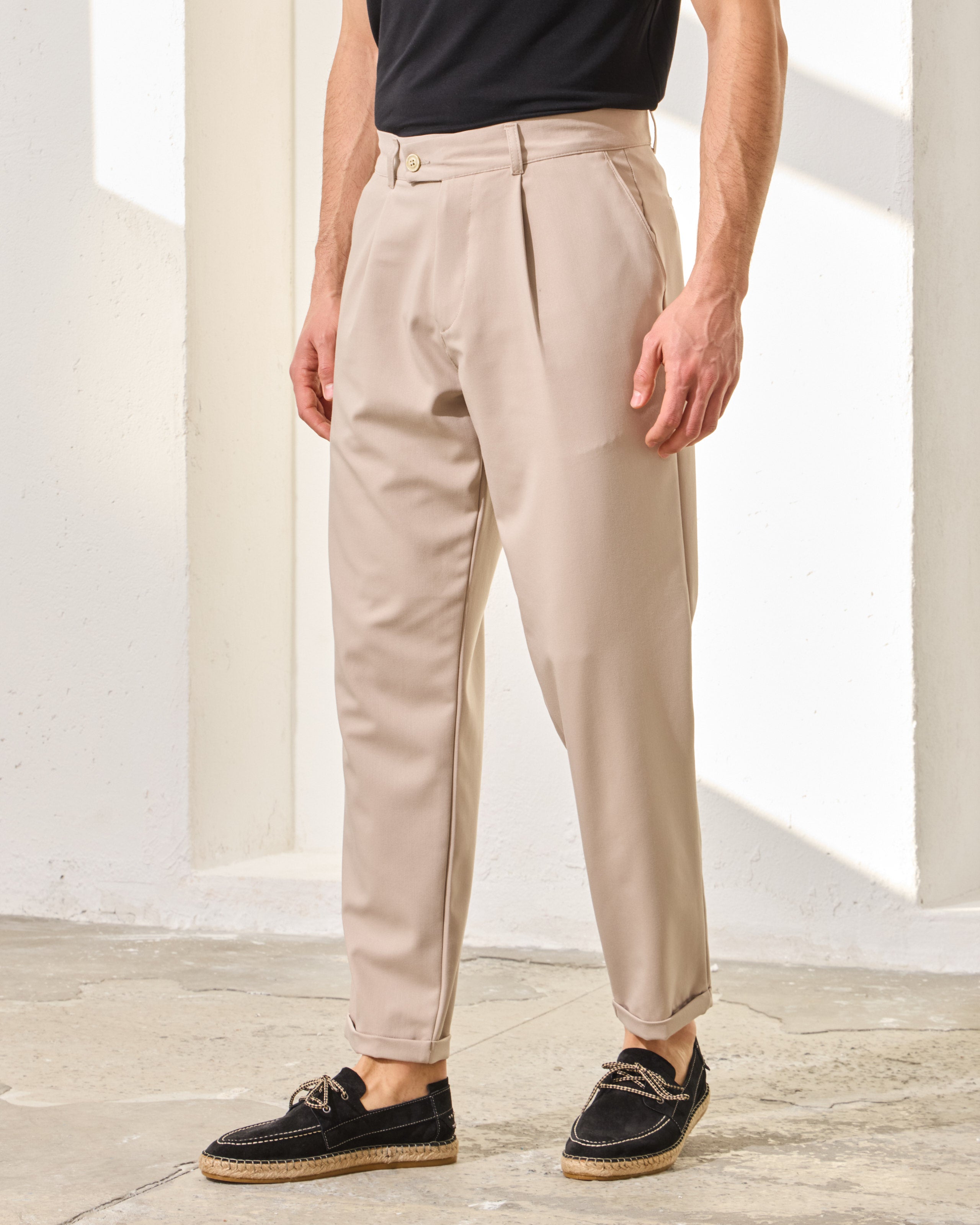 Pantaloni Everhold, Cropped cu Pense, Crem