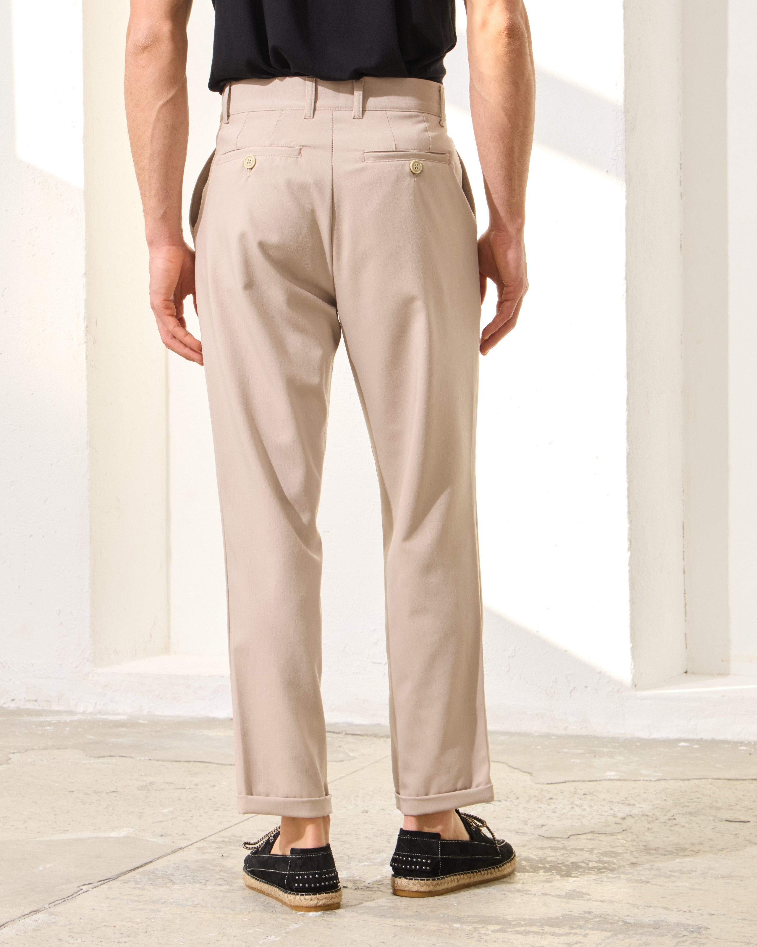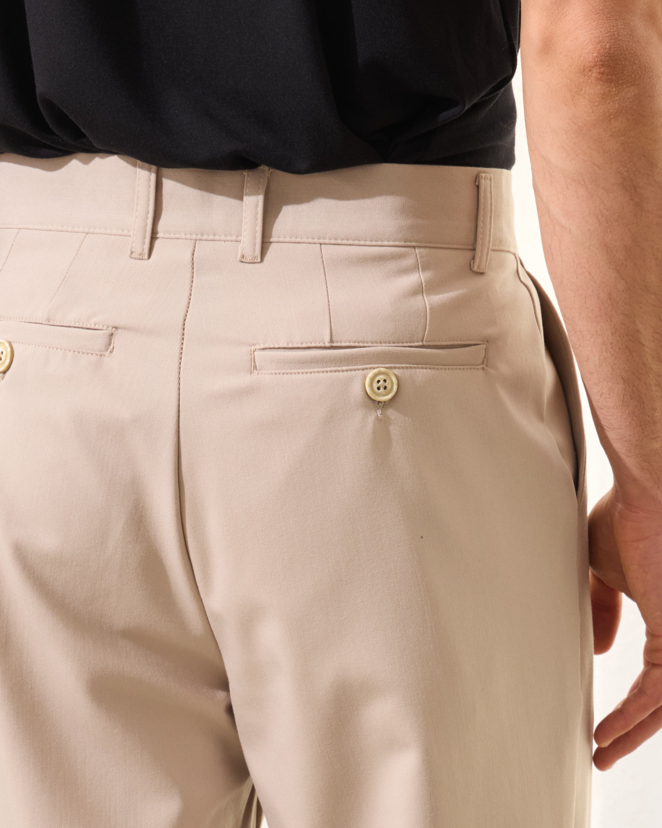 Buzunare laterale oblice și buzunare la spate cu nasturi