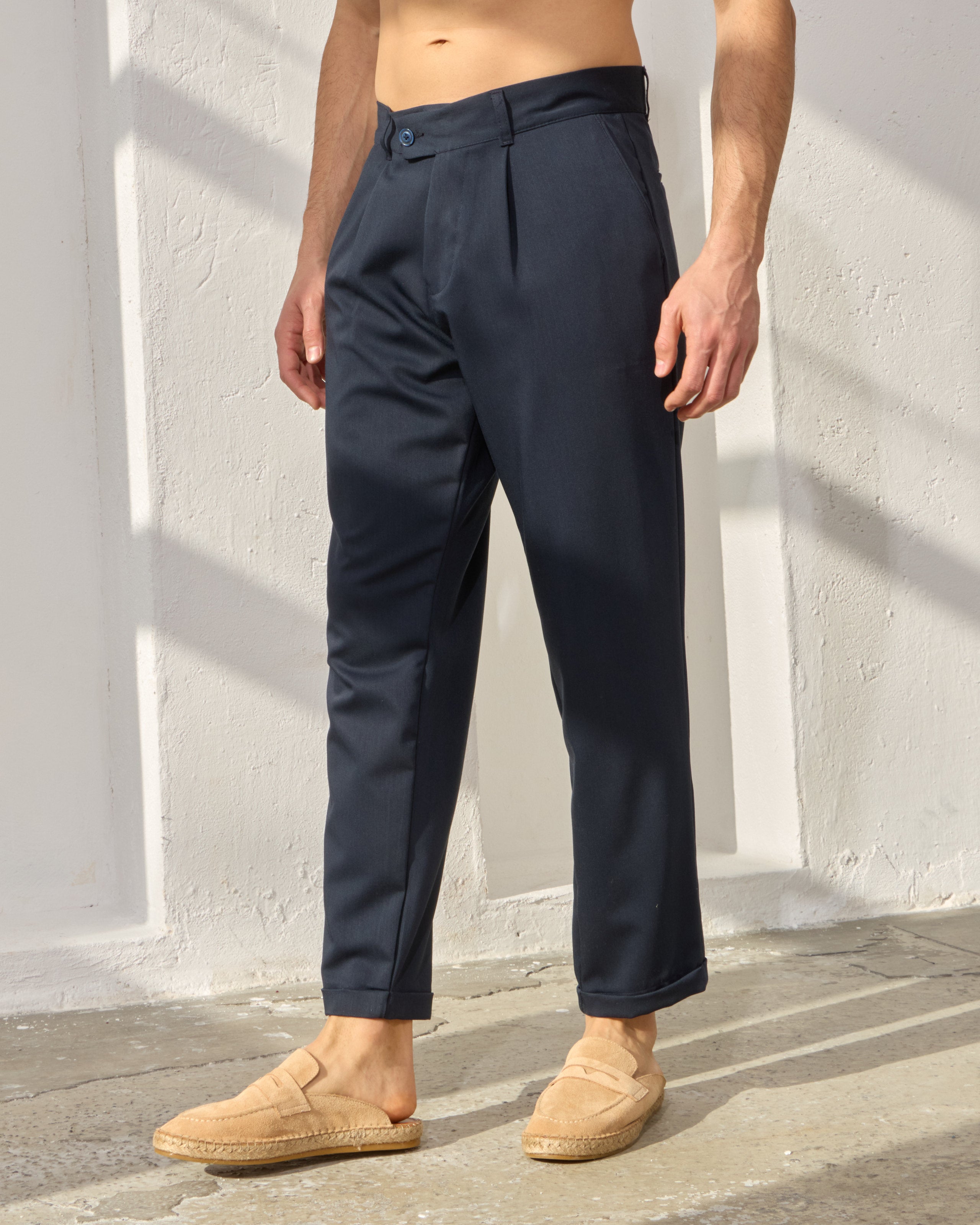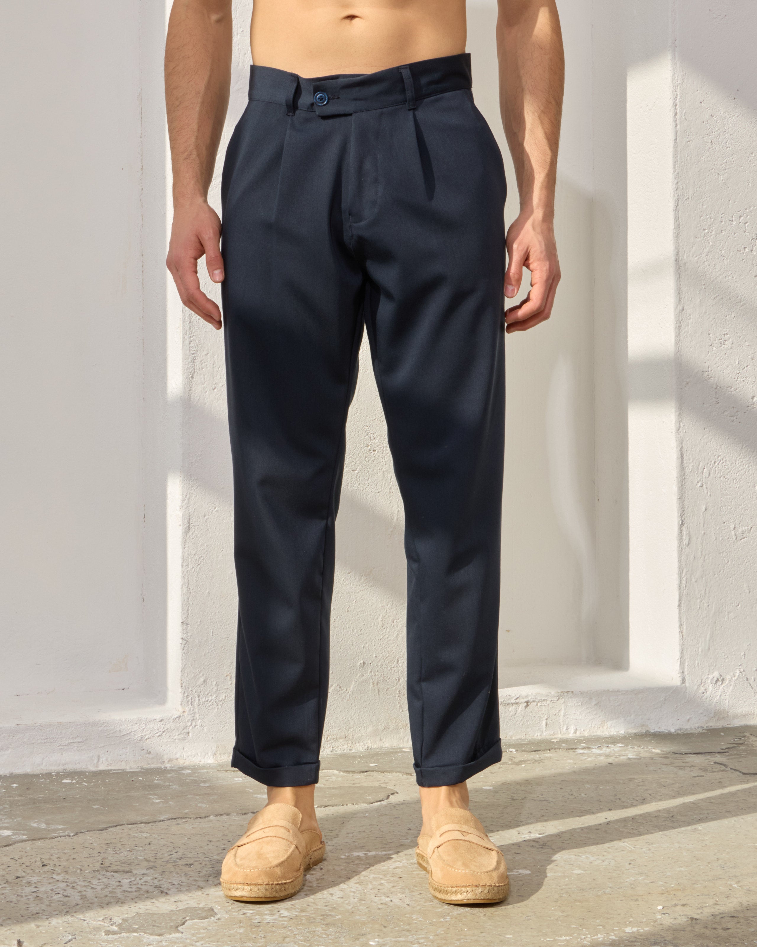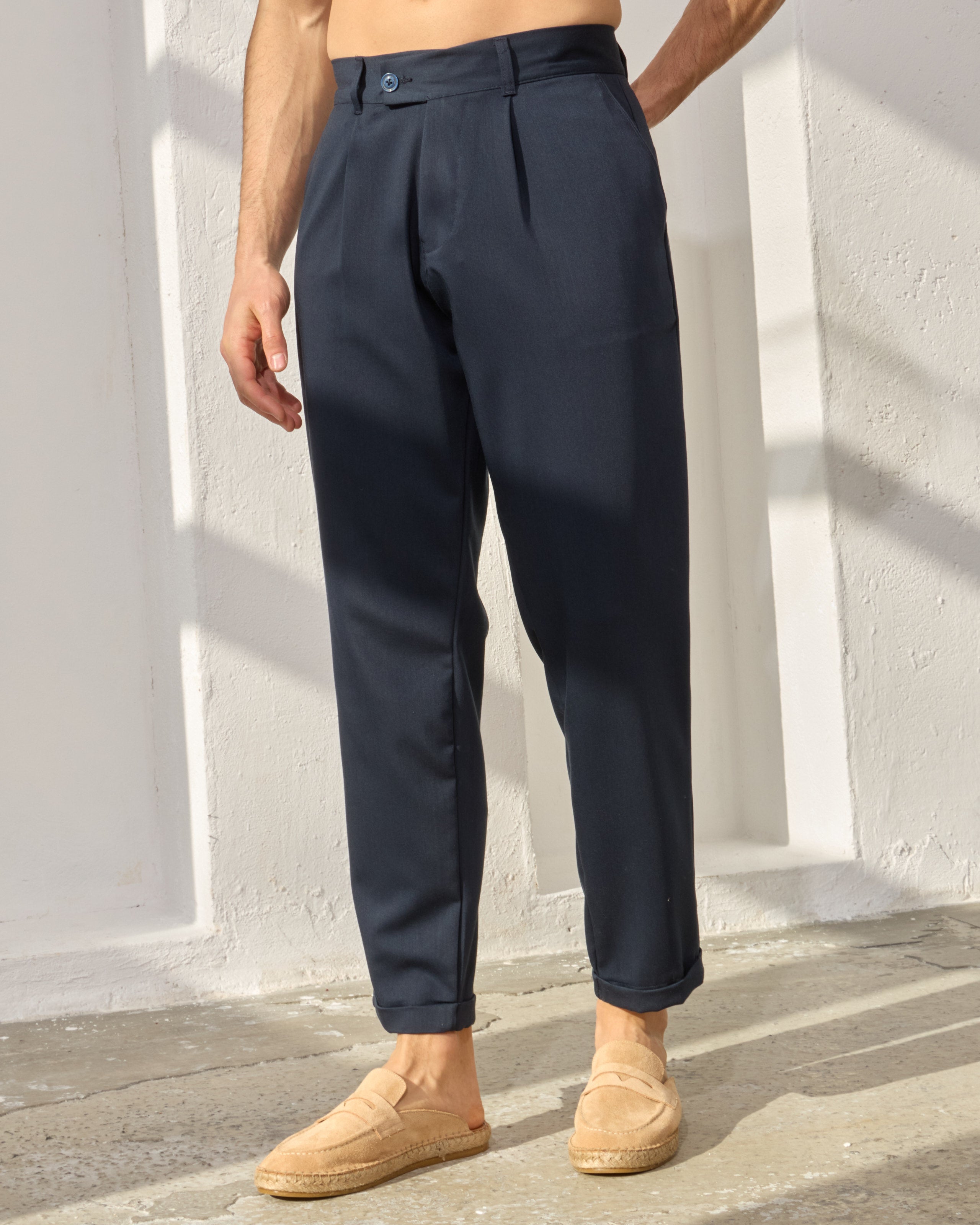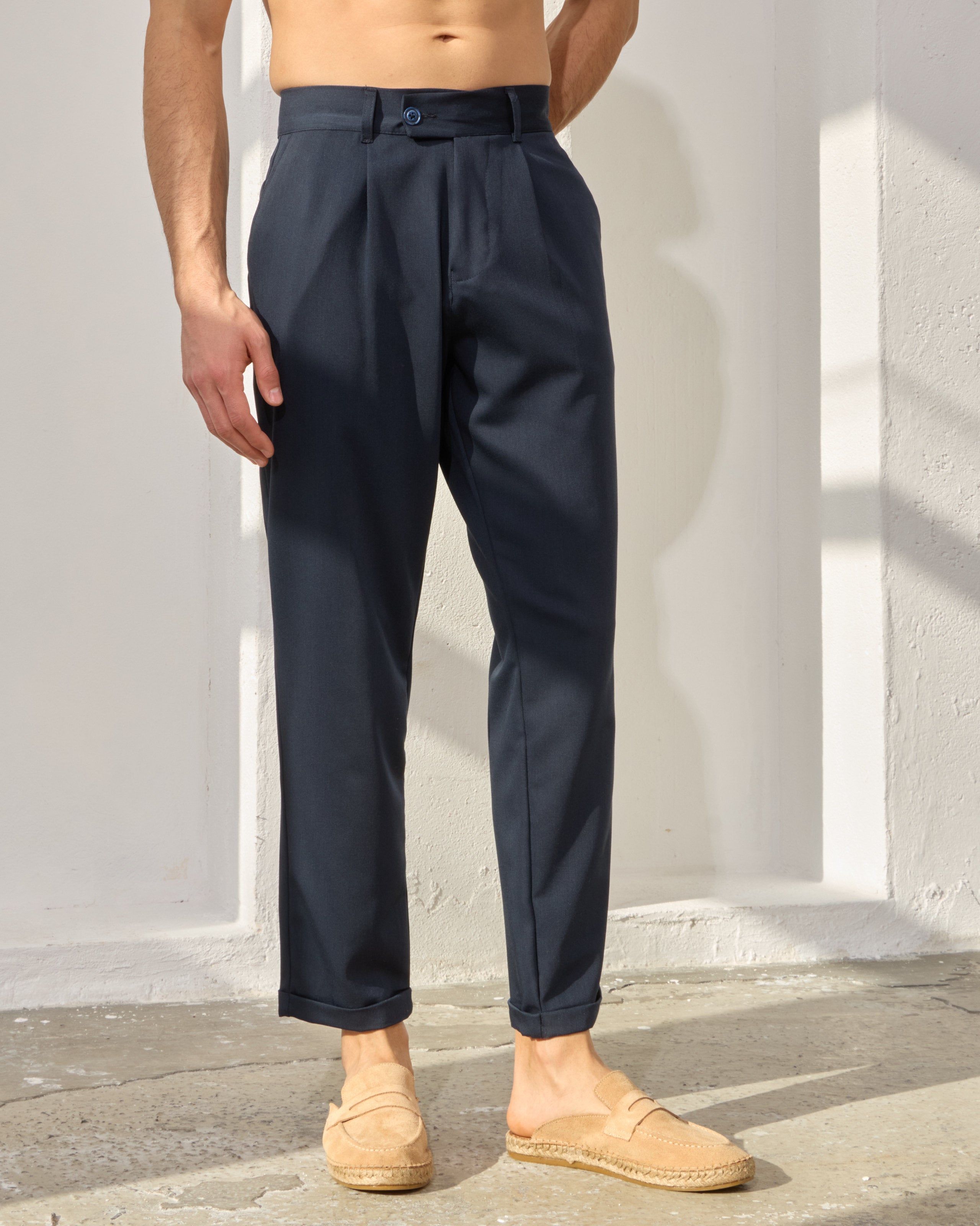 Pantaloni Everhold, Cropped cu Pense, Navy