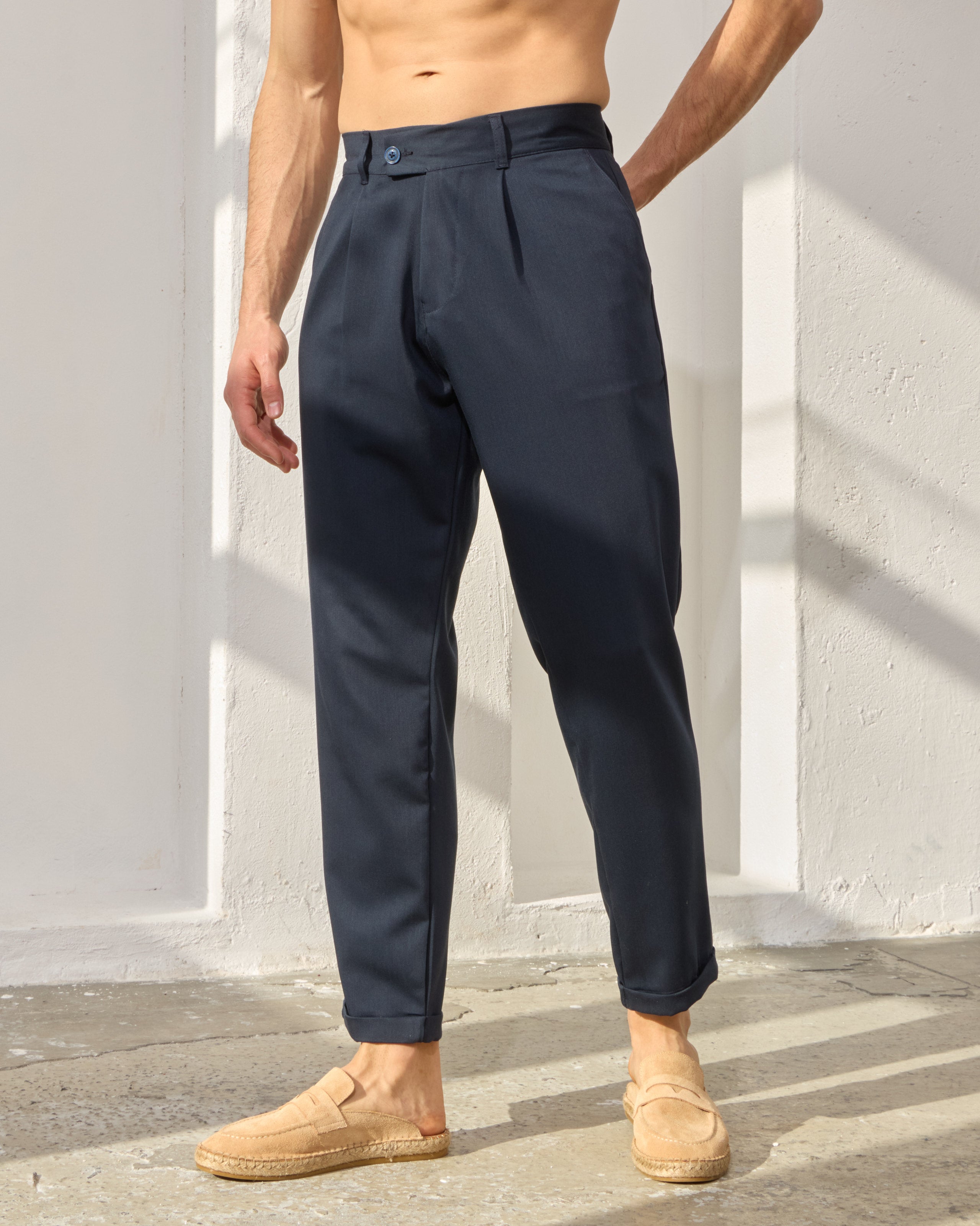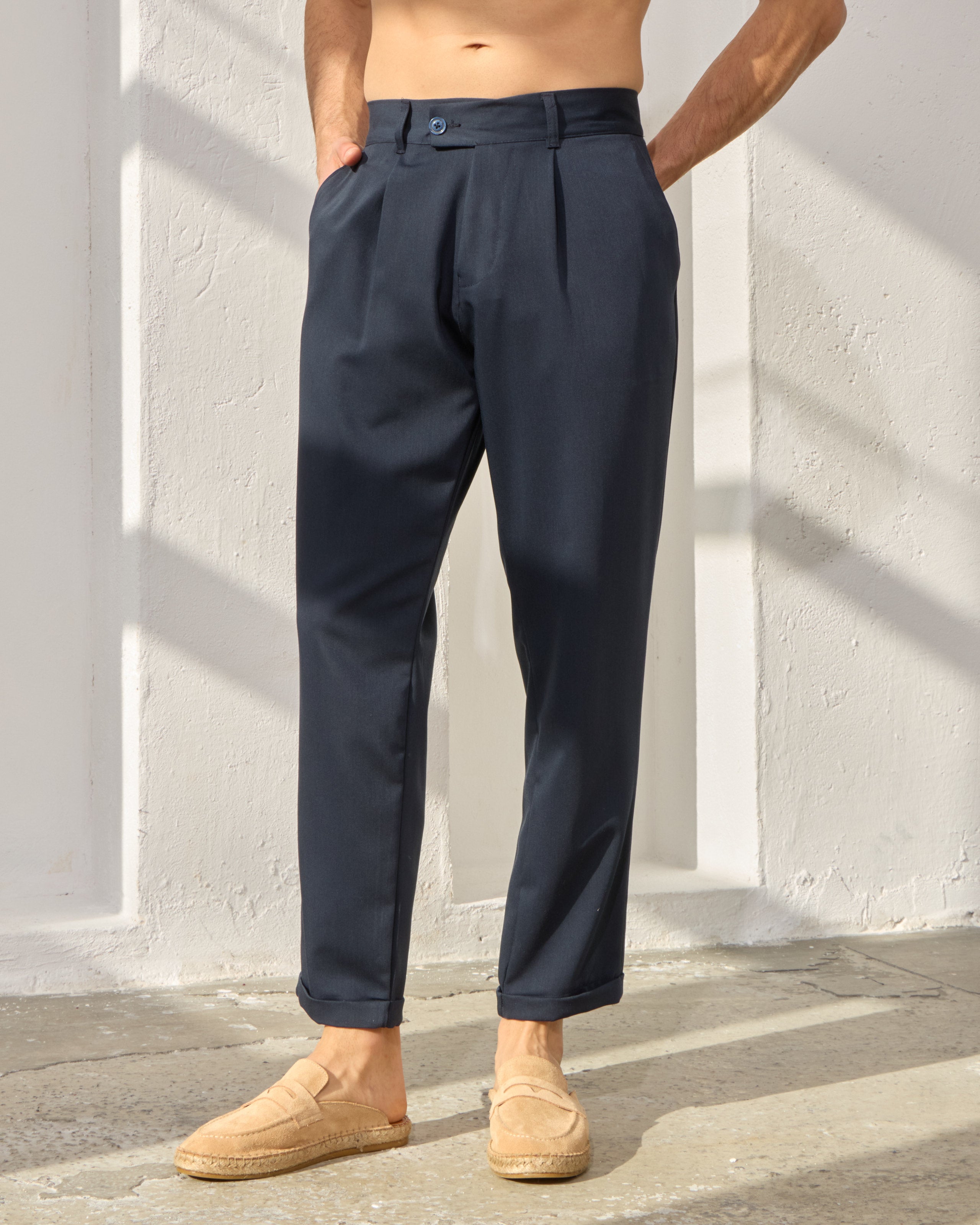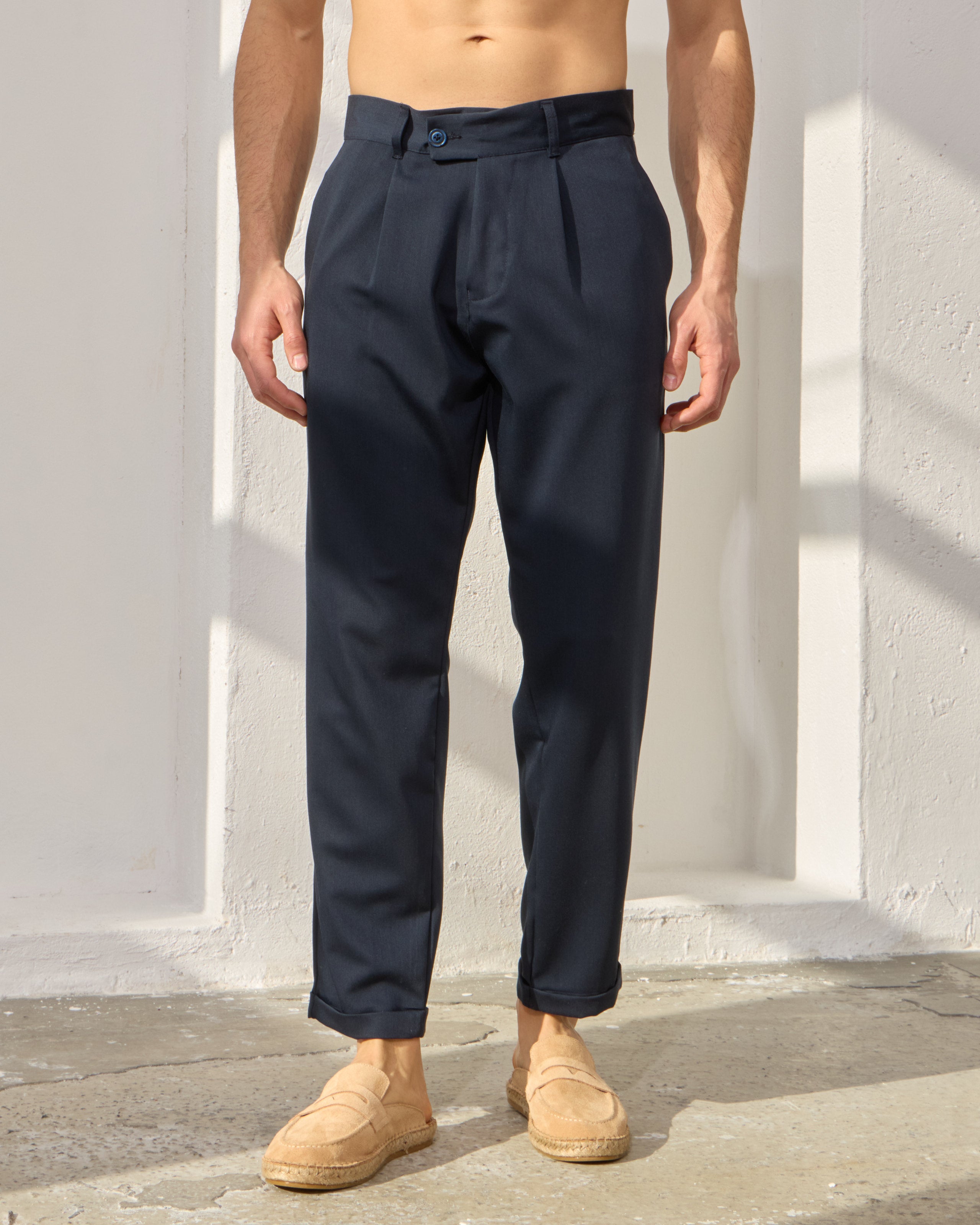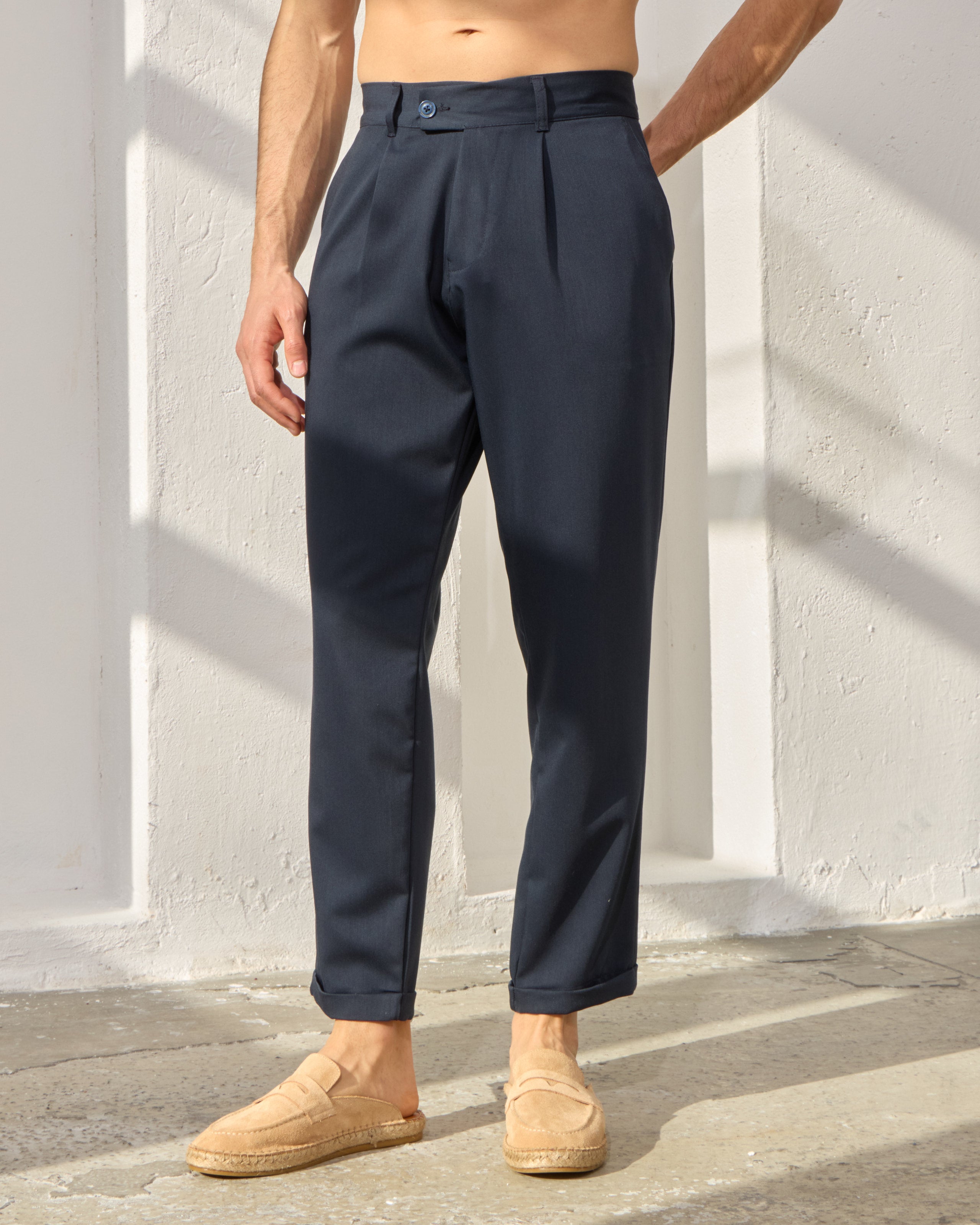 Pantaloni Everhold, Cropped cu Pense, Navy
