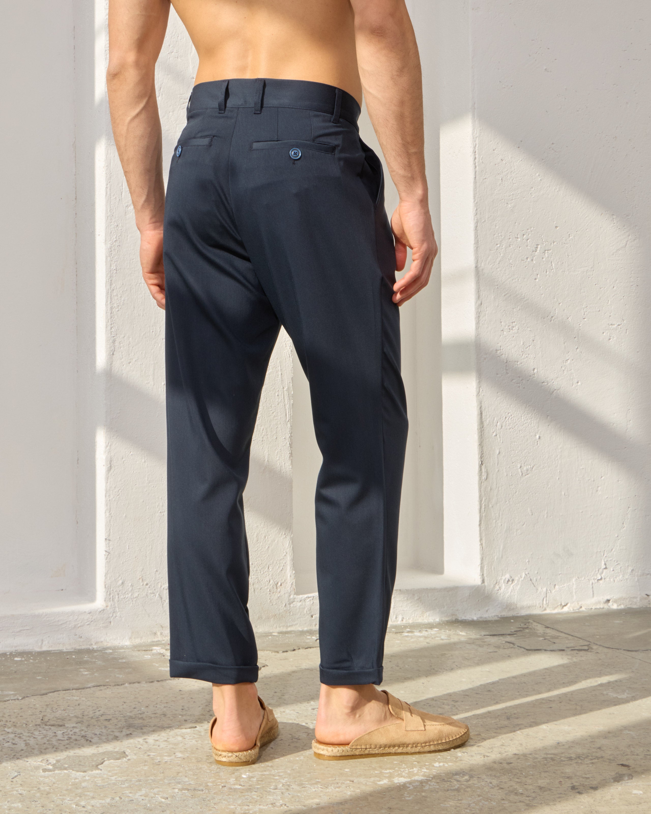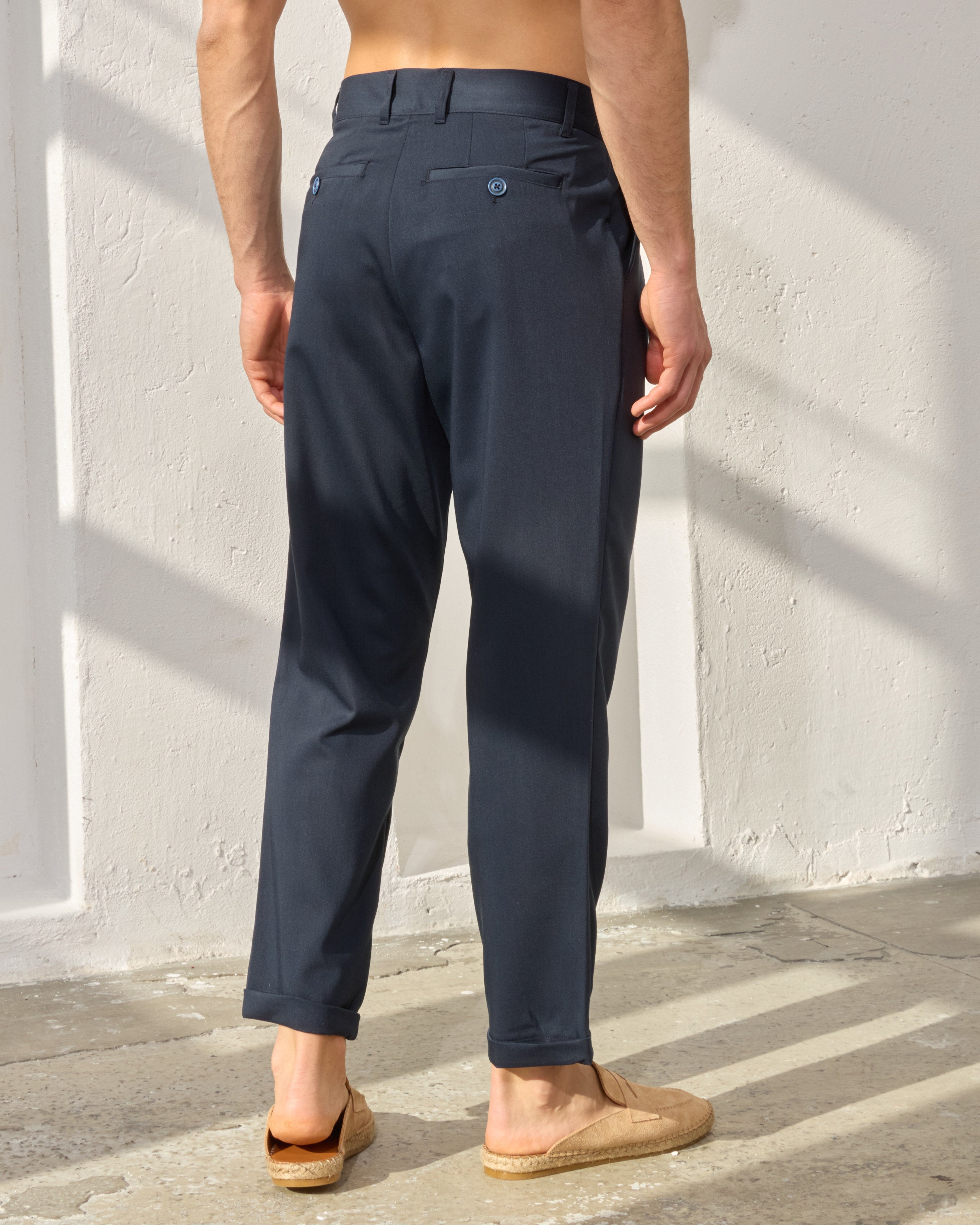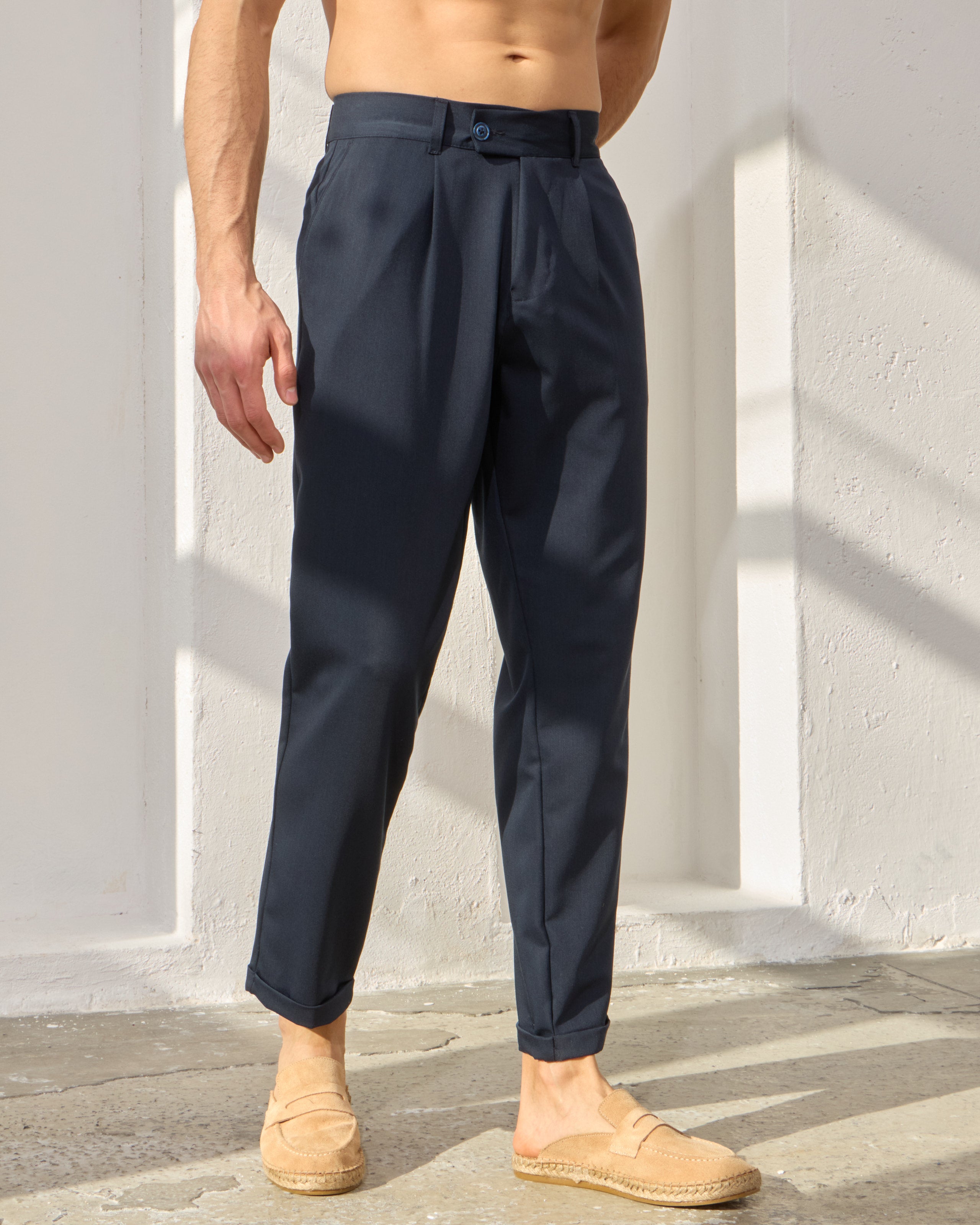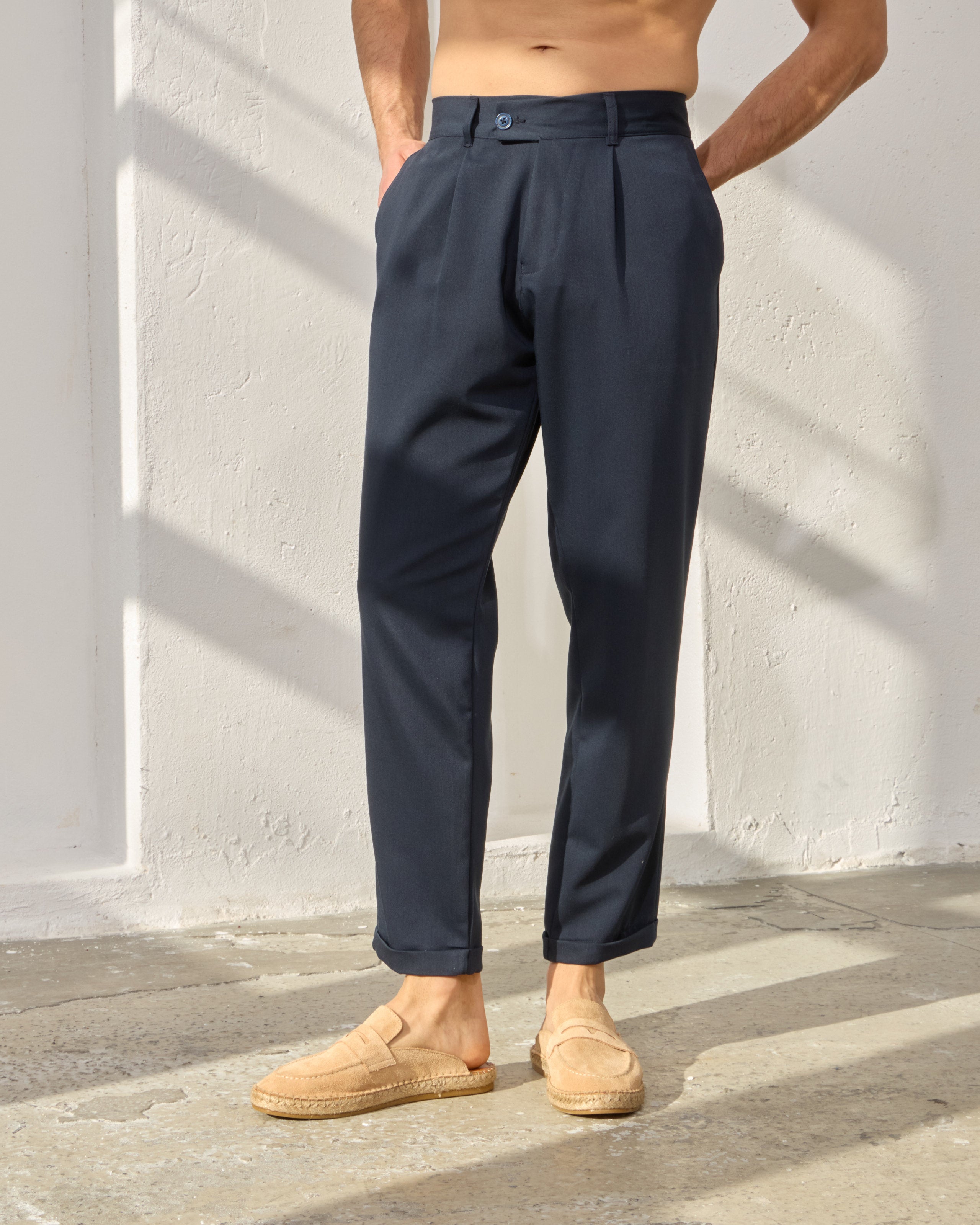 Pantaloni Everhold, Cropped cu Pense, Navy
