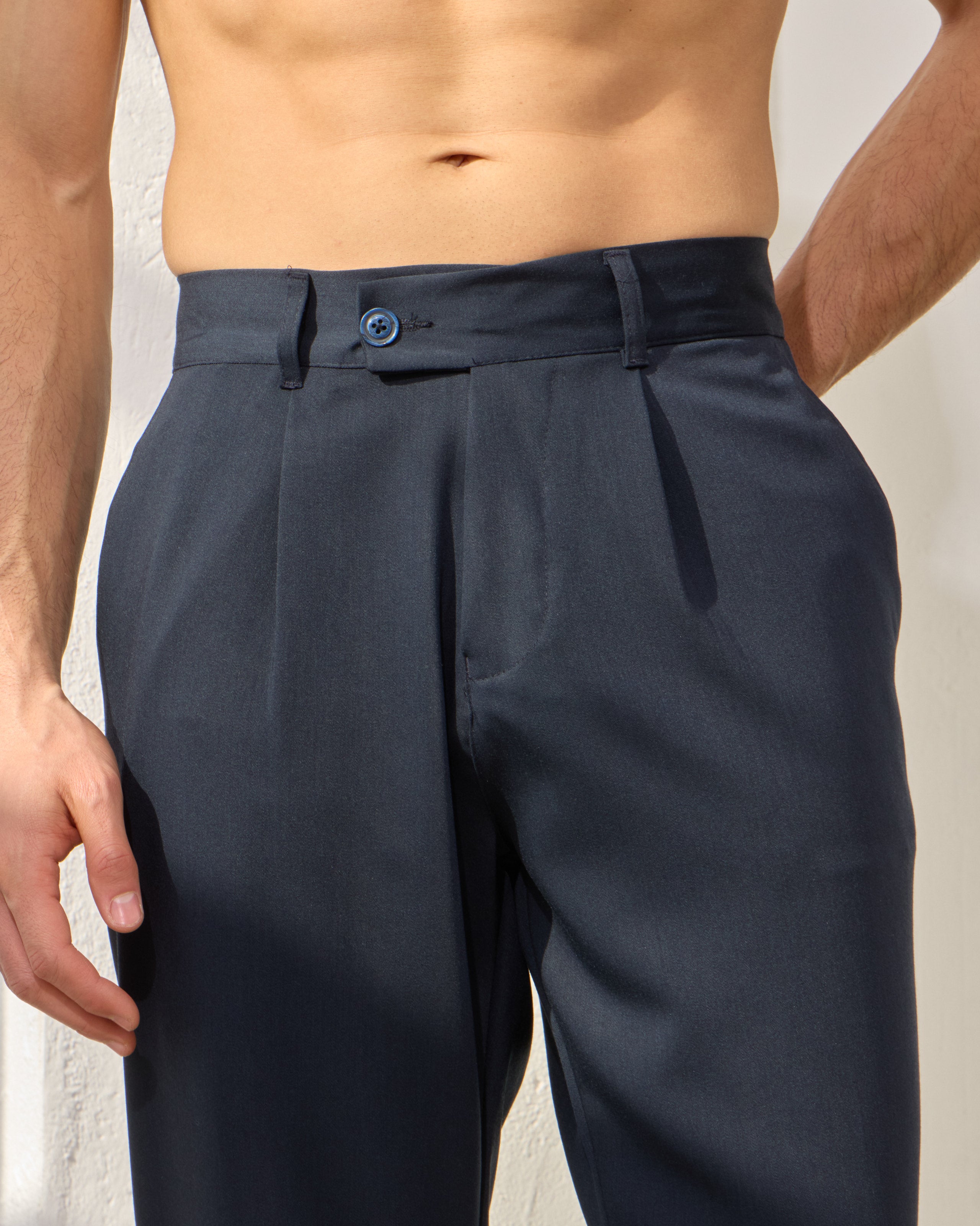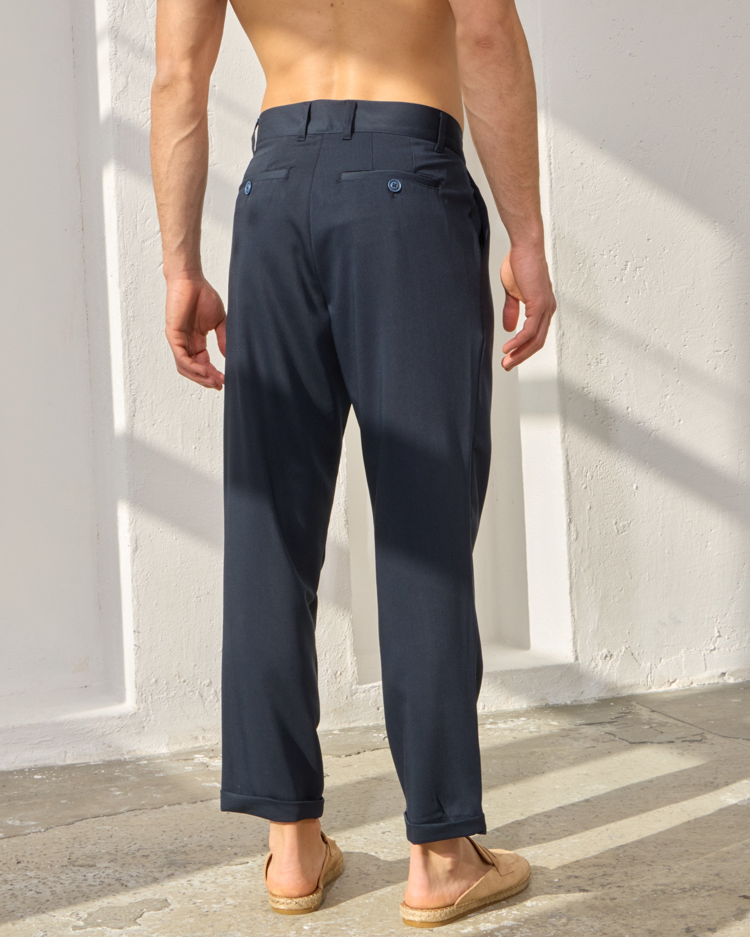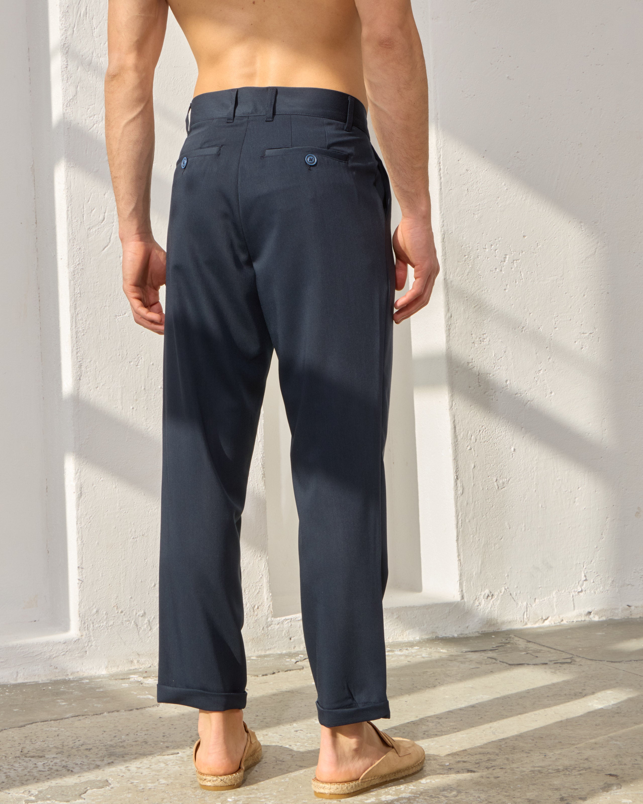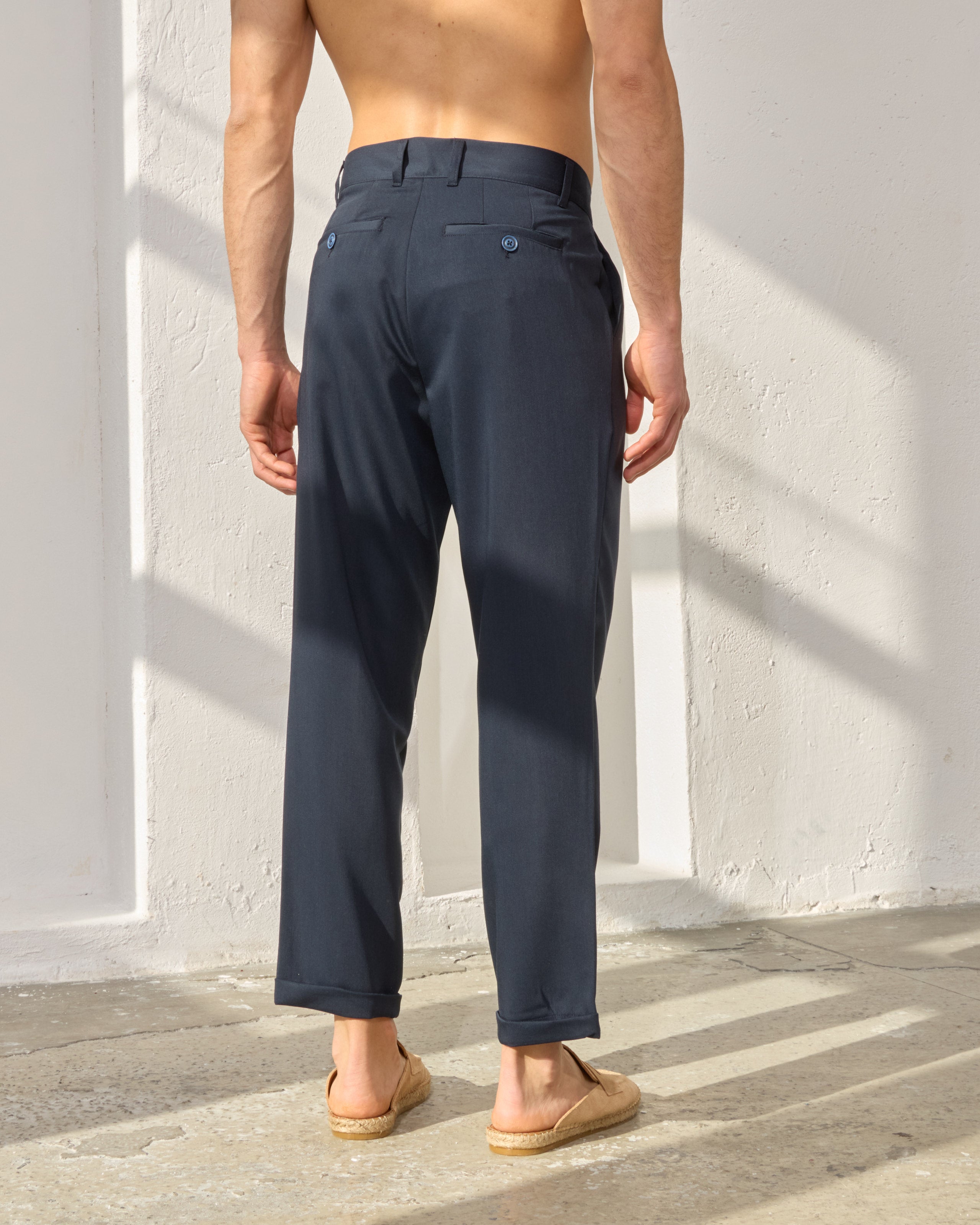 Pantaloni Everhold, Cropped cu Pense, Navy