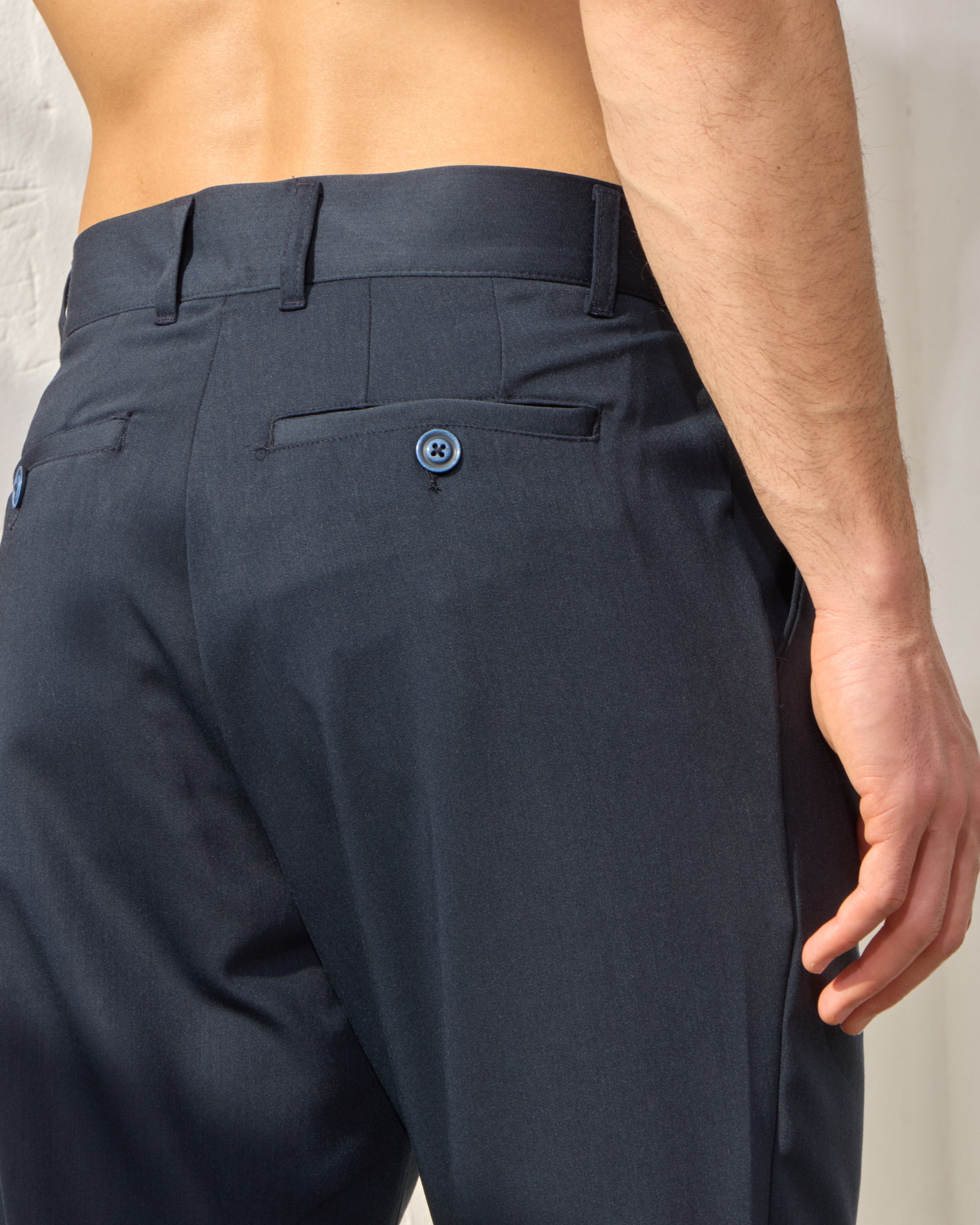 Buzunare laterale oblice și buzunare la spate cu nasturi
