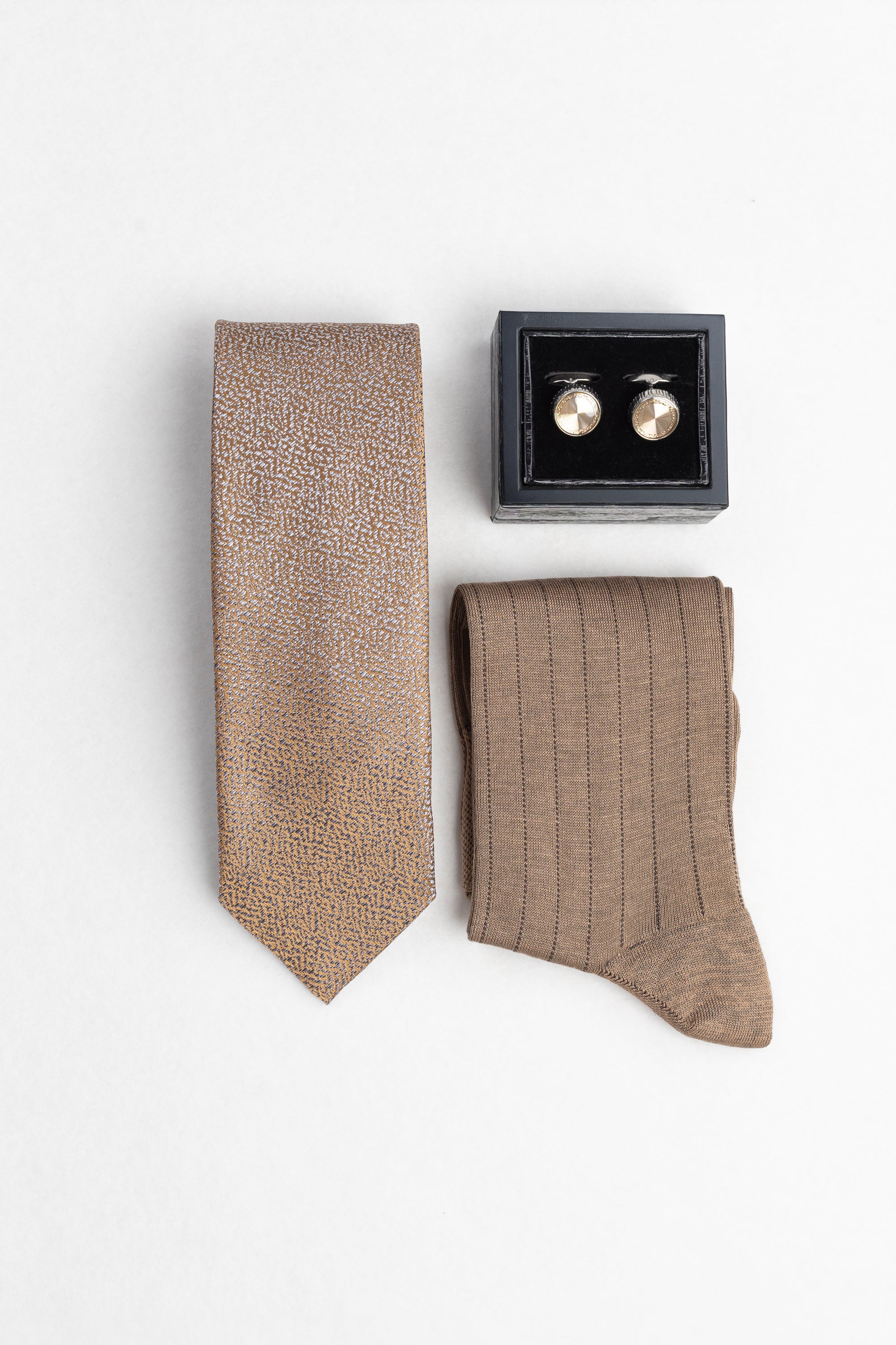 Set Cadou Accesorii (Butoni, Șosete, Cravată) Bej